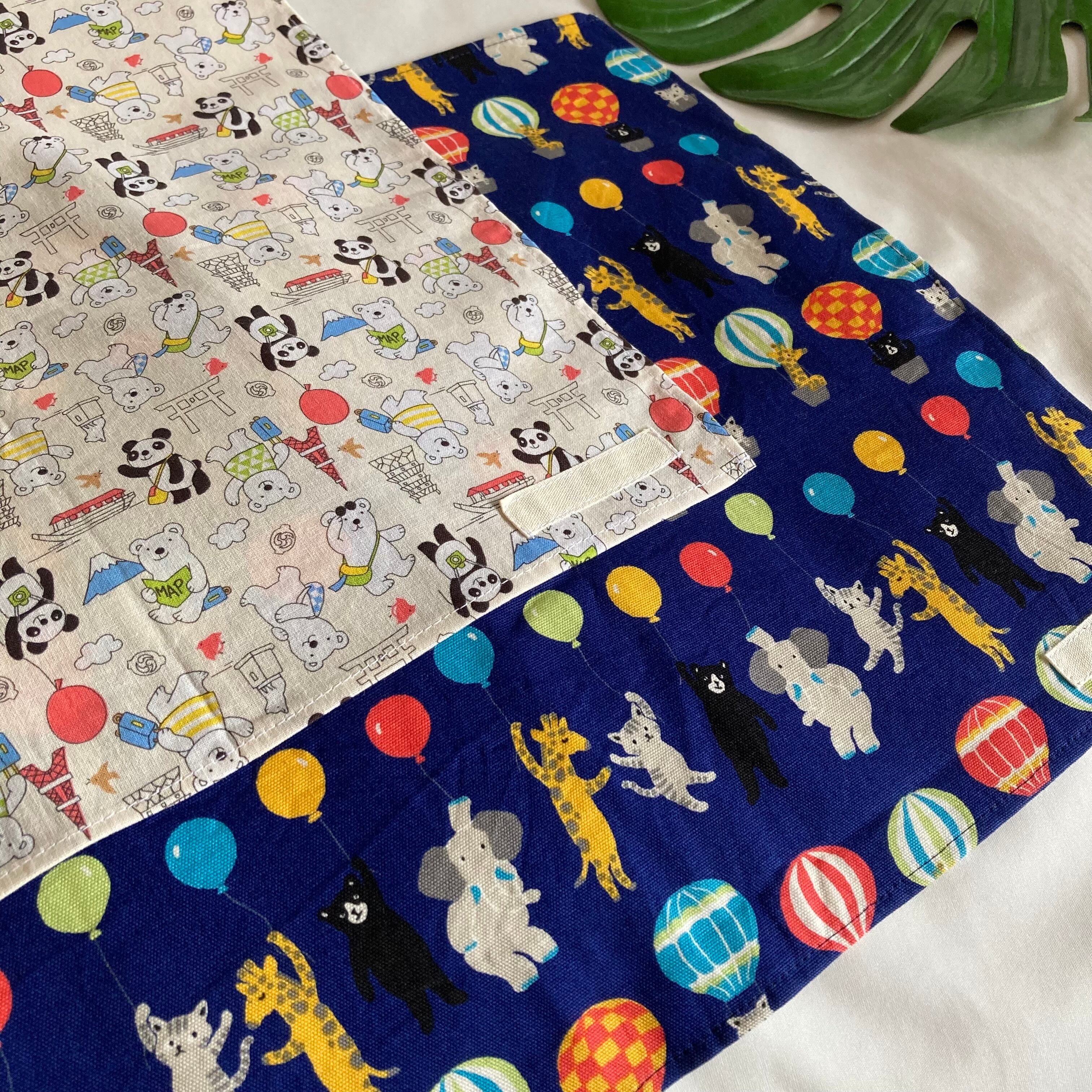 ランチョンマット×2枚セット(45×35cm)★白くまパンダ旅行気球アニマル★給食ナフキンお弁当ランチクロス入園入学