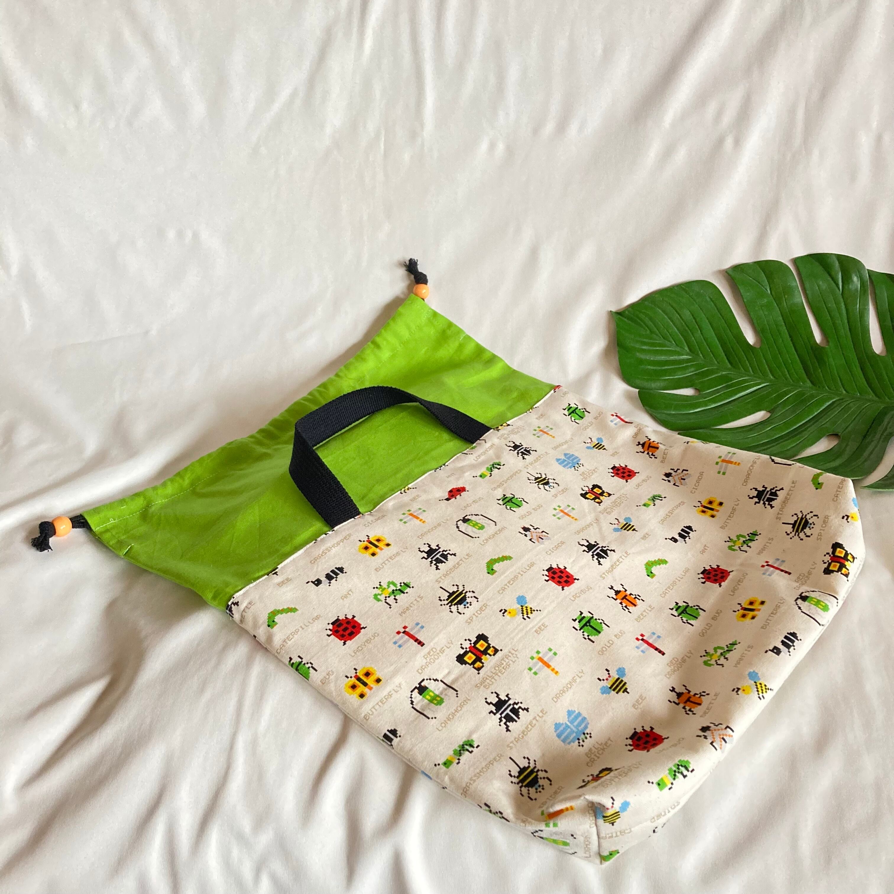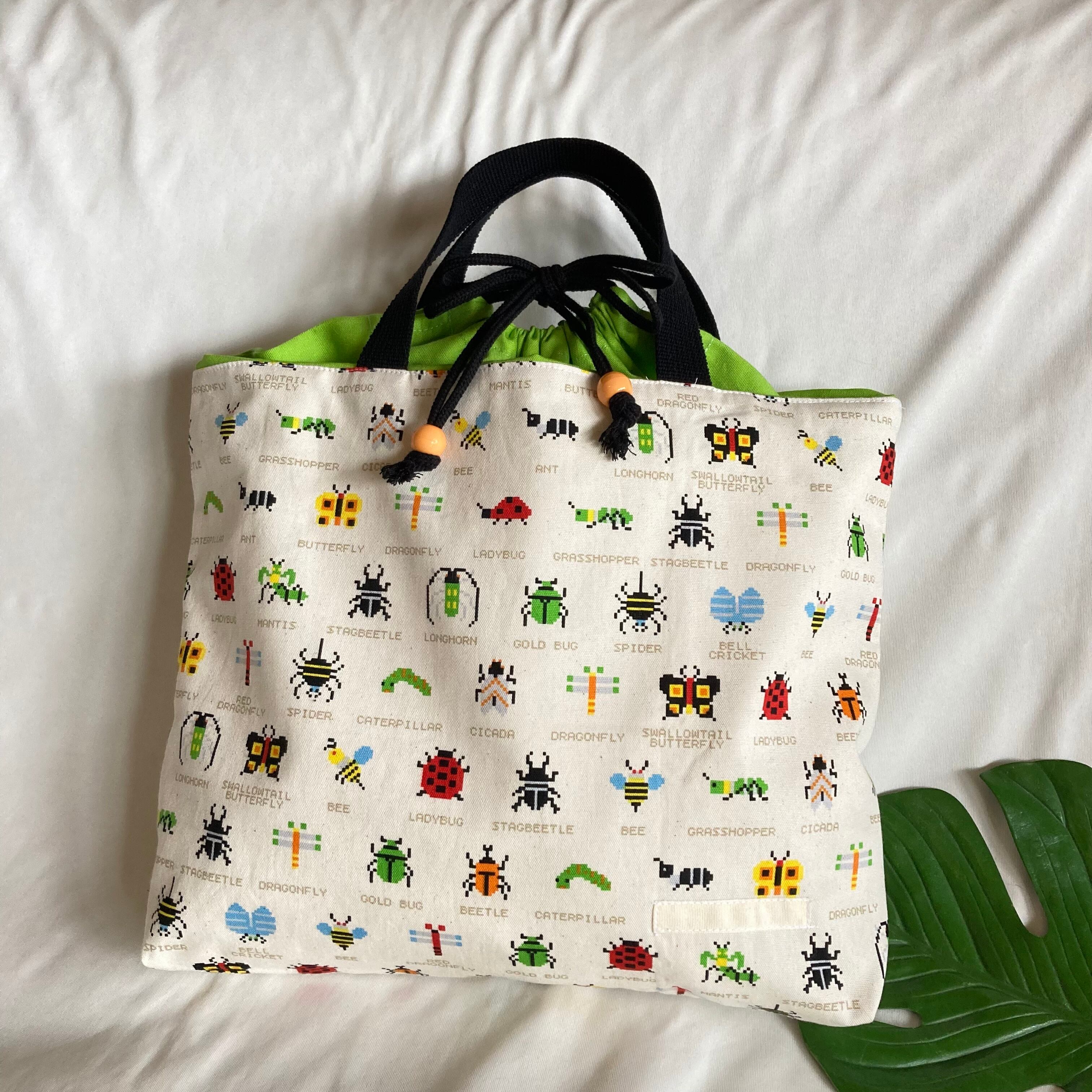 【オーダーOK】入園入学体操着お着替え袋内袋持ち手つき巾着★29ブロック昆虫W白系縫い付けお名前キルティングマチレースかぶと虫クワガタてんとう虫トンボ蝶々クモハチ