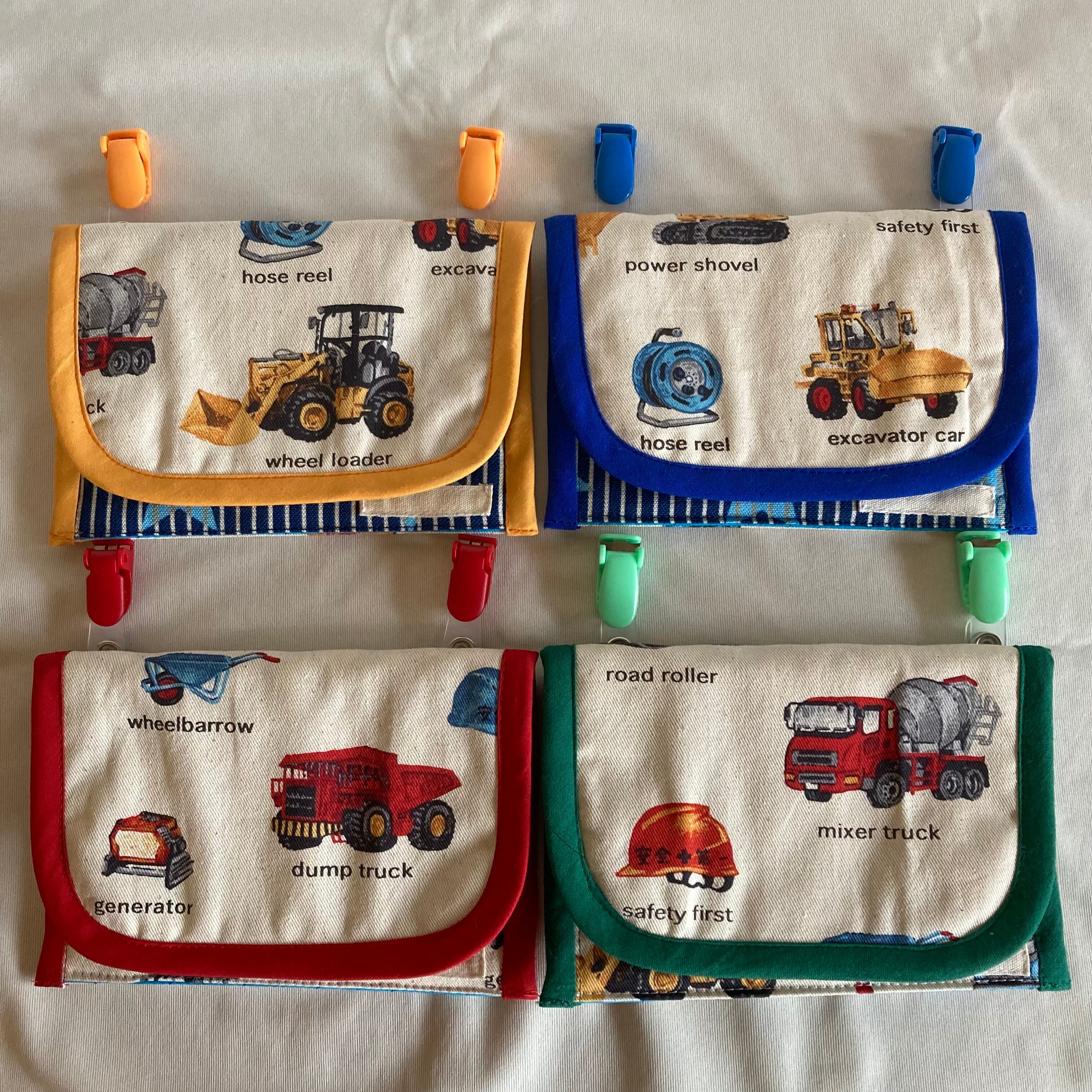 【オーダーOK】裏キルティング移動ポケット★働く車工事車両ヘルメット安全第一★マスクケース入園入学ハンカチティッシュマルチポケット★縫い付けお名前小学校ダンプカーミキサー車ショベルカー
