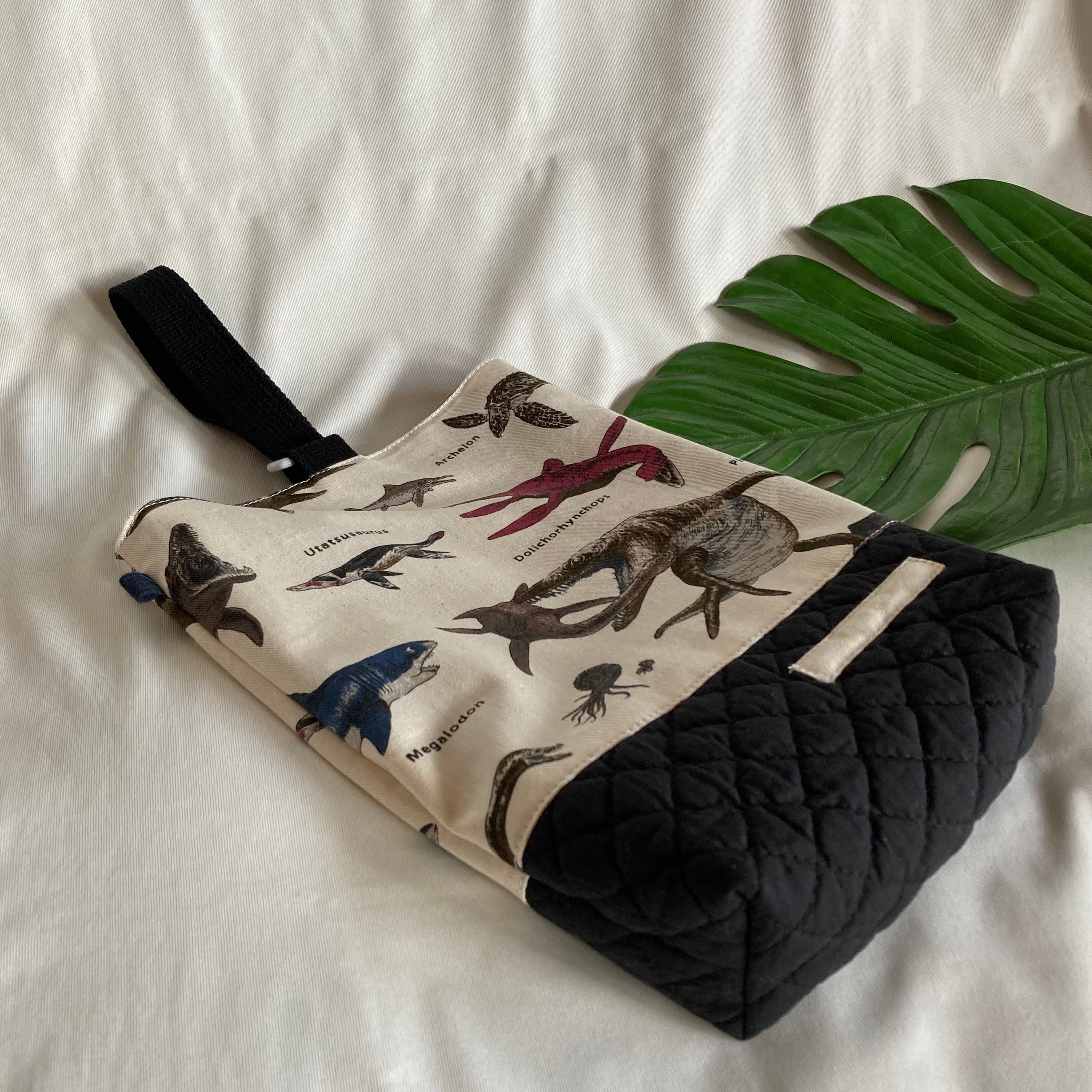 【オーダーOK】入園入学セット01海竜古代生物恐竜深海W★手提げ上履き給食お着替え巾着ランチョンマット移動ポケットモササウルスプレシオサウルス給食袋ナップサック★縫い付けお名前小学校マチキルティング