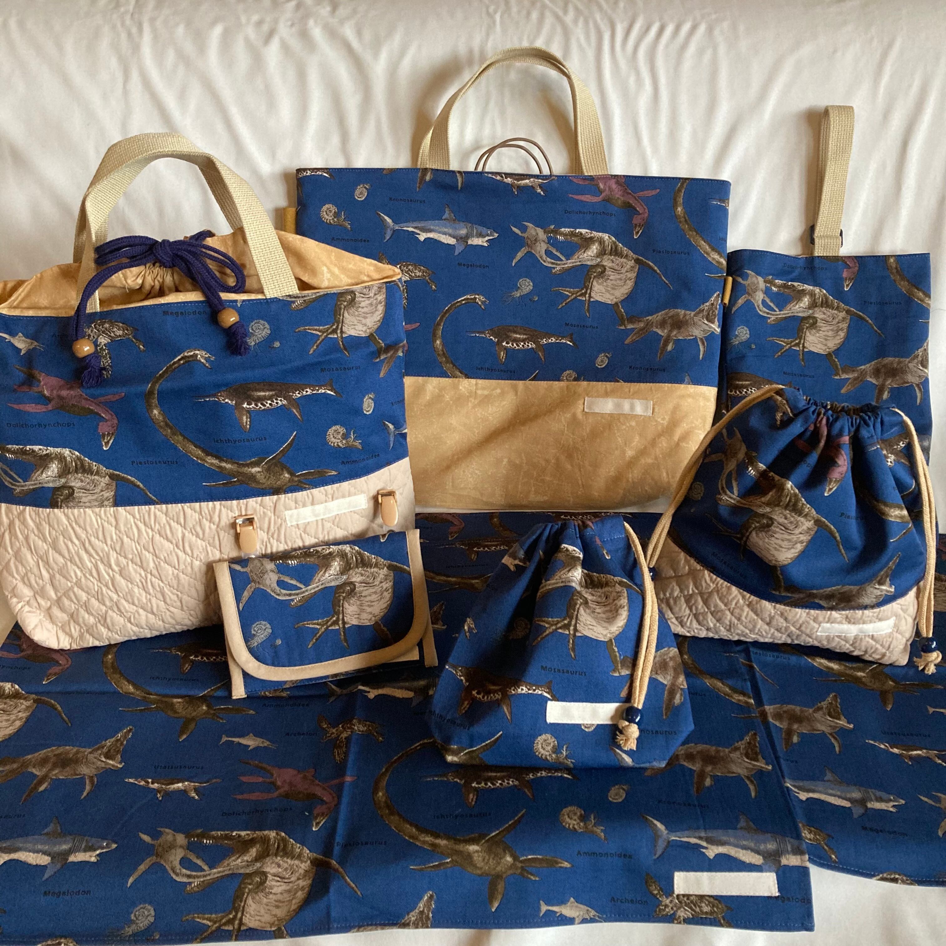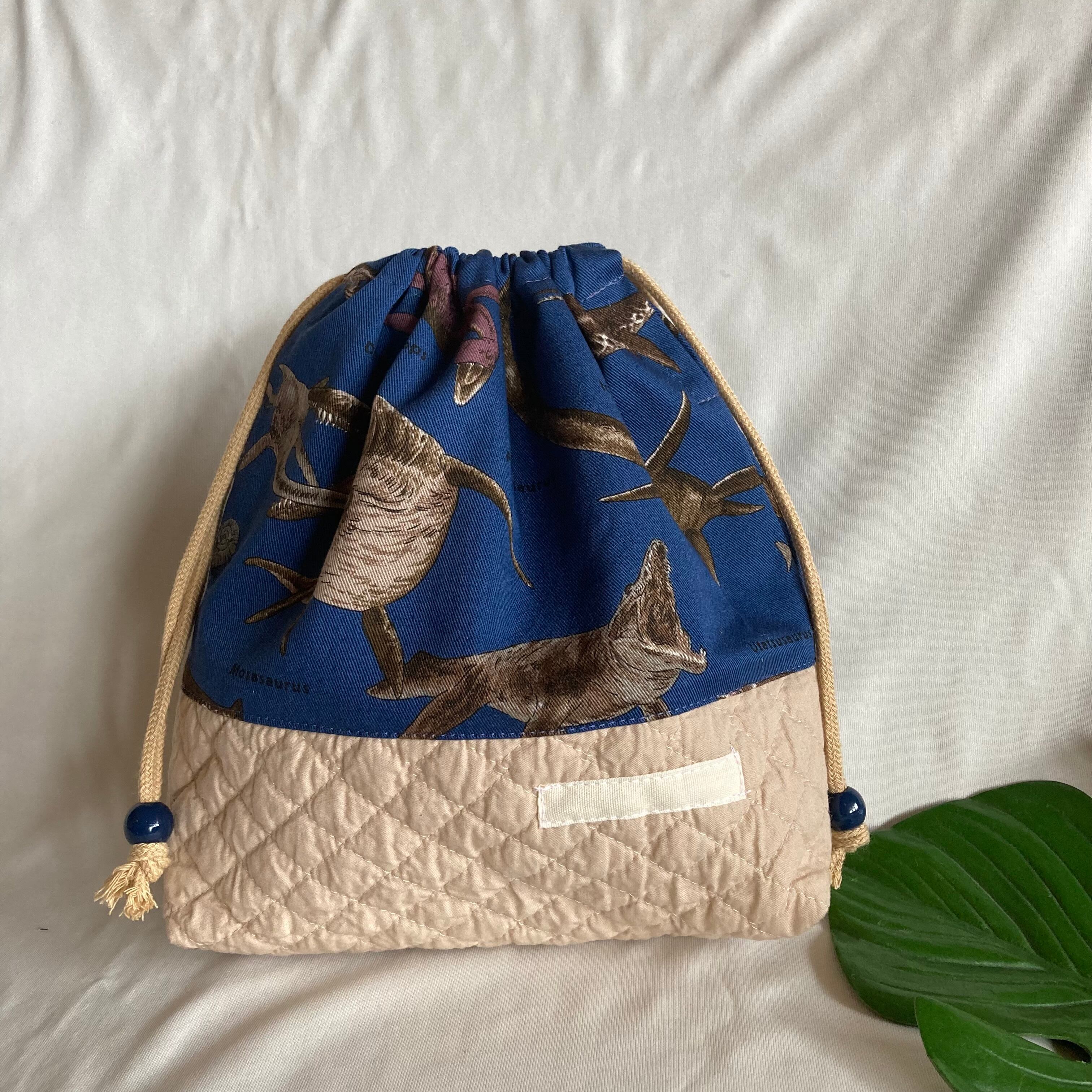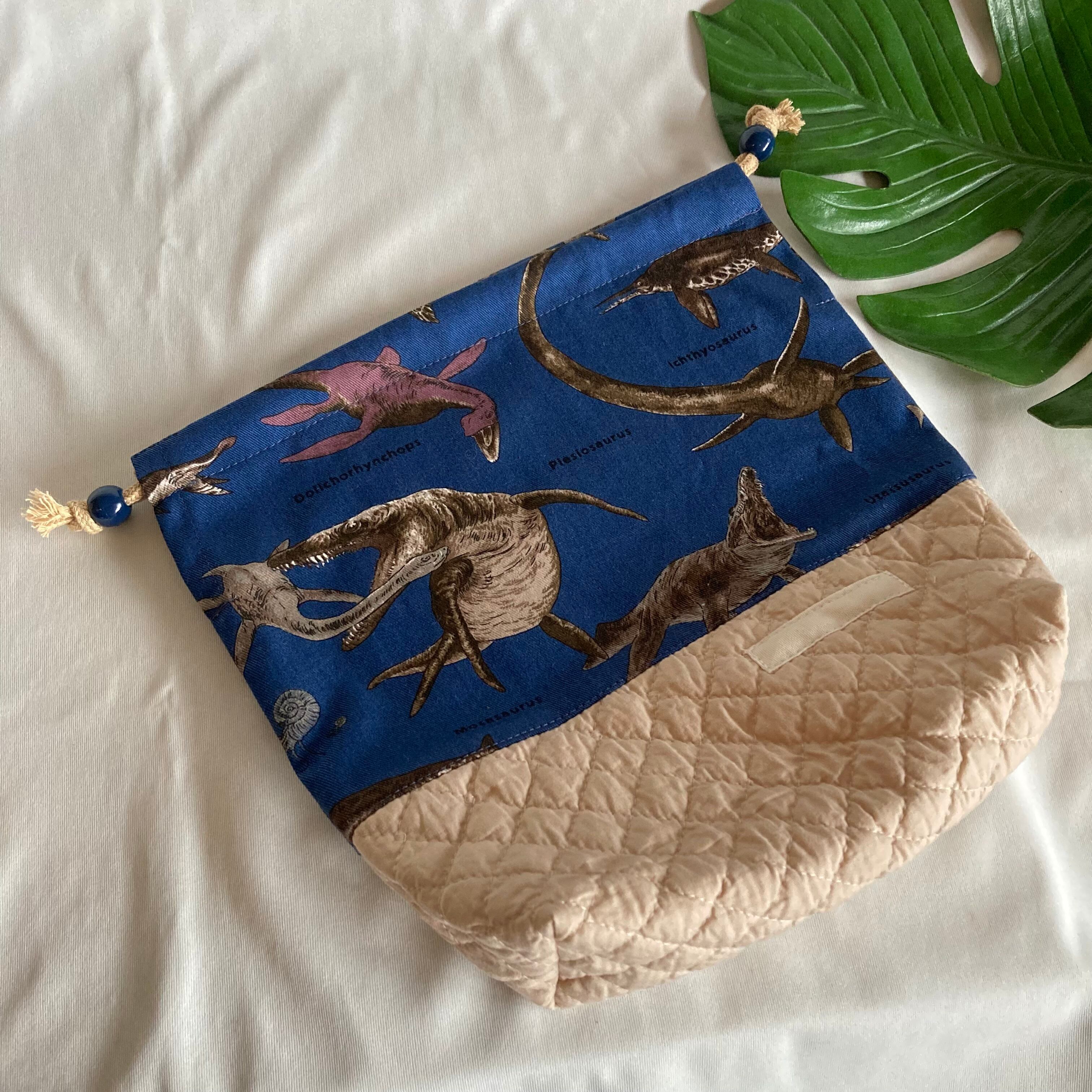 【オーダーOK】入園入学ランチバッグお弁当入れ巾着★01海竜古代生物恐竜深海モササウルスプレシオサウルスアーケロンお名前スペース縫い付けマチ付きキルティング