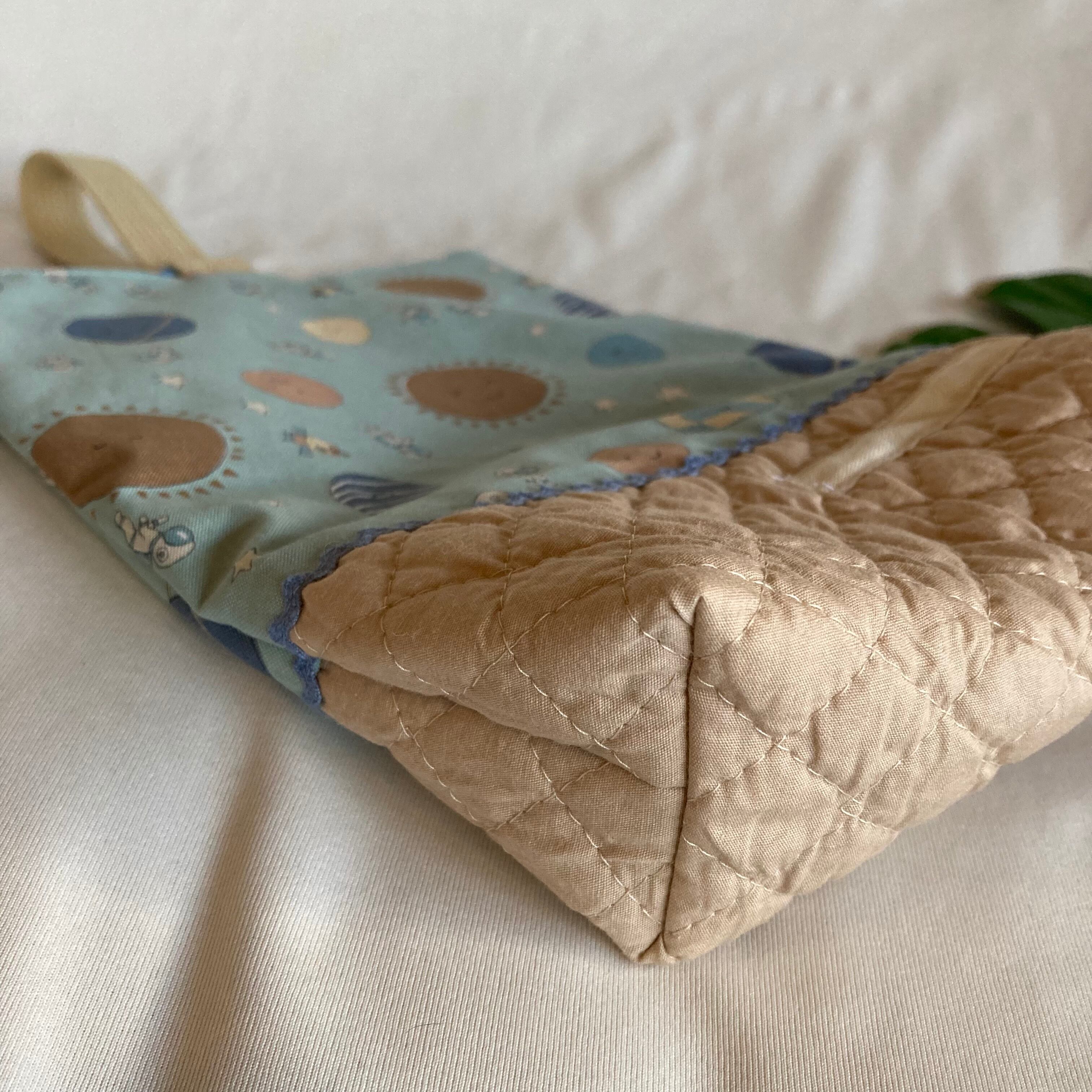 【オーダーOK】入園入学シューズケース上履き袋リバーシブル★48ほっこり宇宙飛行士にっこり惑星くすみニュアンス★縫い付けお名前小学校マチストライプDカン持ち手宇宙飛行士キルティングくすみニュアンス