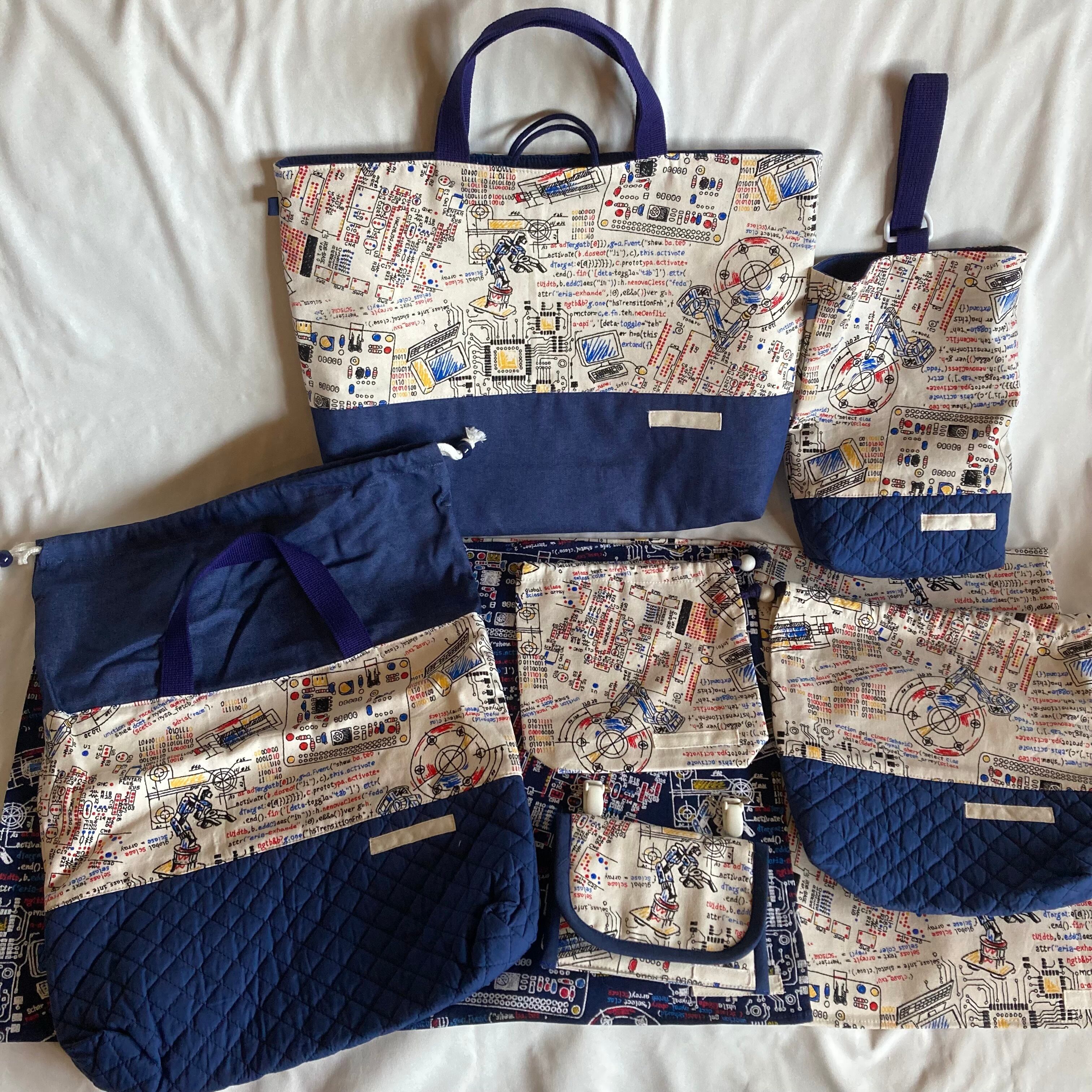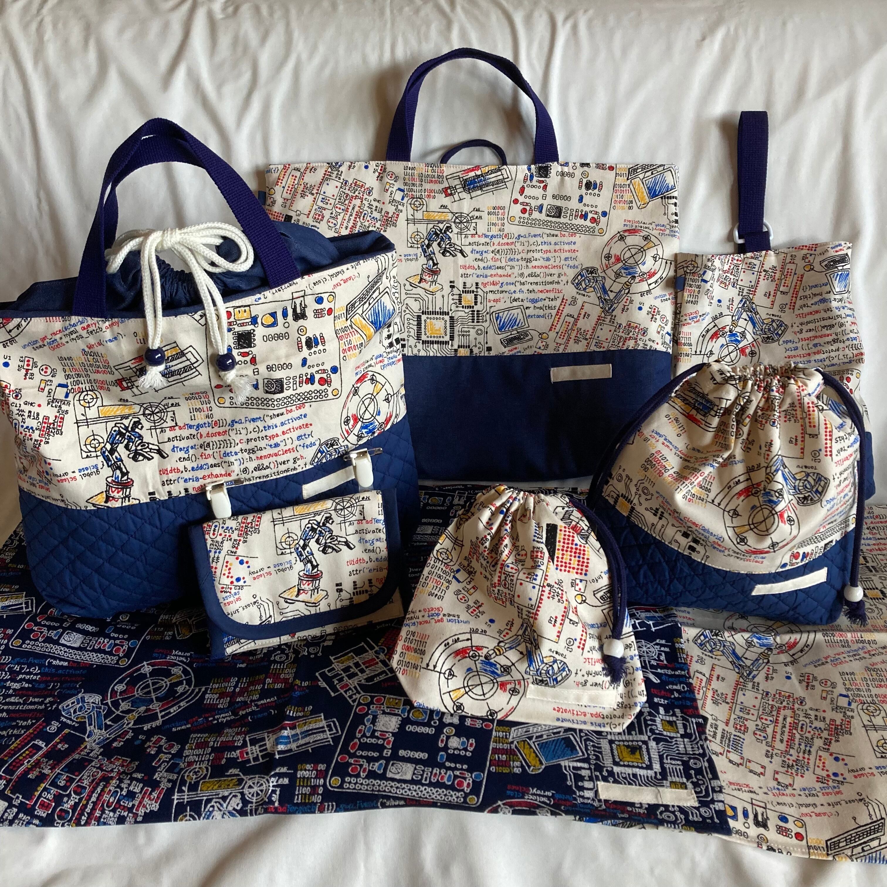 【オーダーOK】入園入学セット52理数系実験科学物理数学★手提げ上履き給食お着替え巾着ランチョンマット移動ポケットナップサック