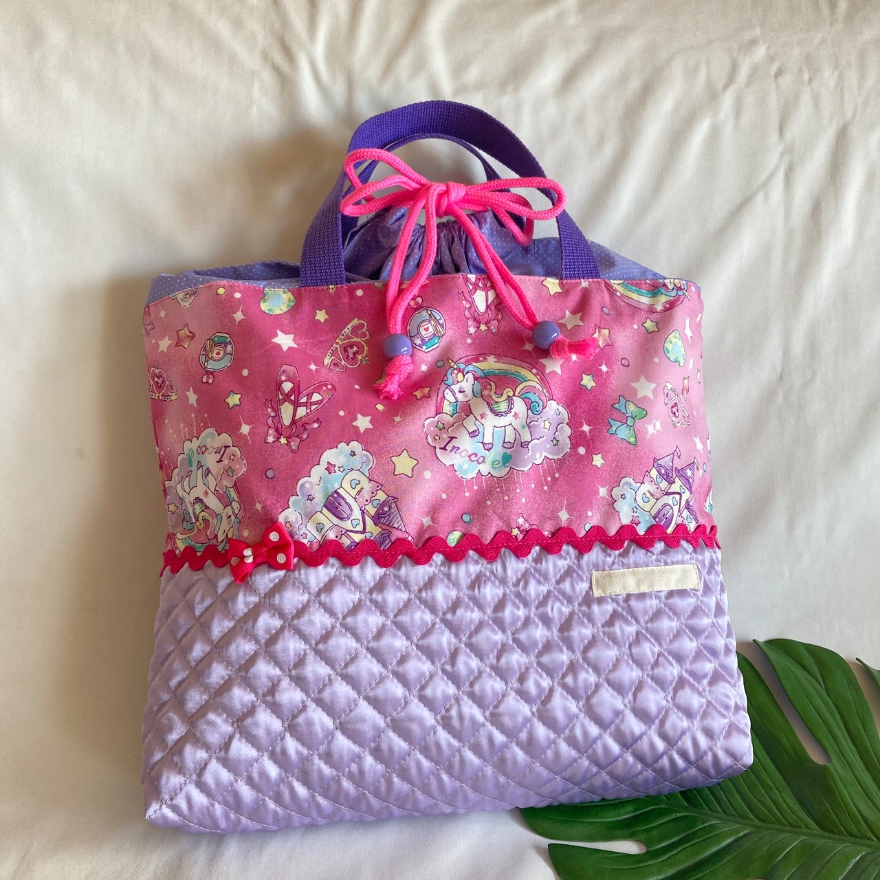 【オーダーOK】入園入学体操着お着替え袋内袋持ち手つき巾着★53いろコレお城のプリンセスユニコーンくすみニュアンスパステル