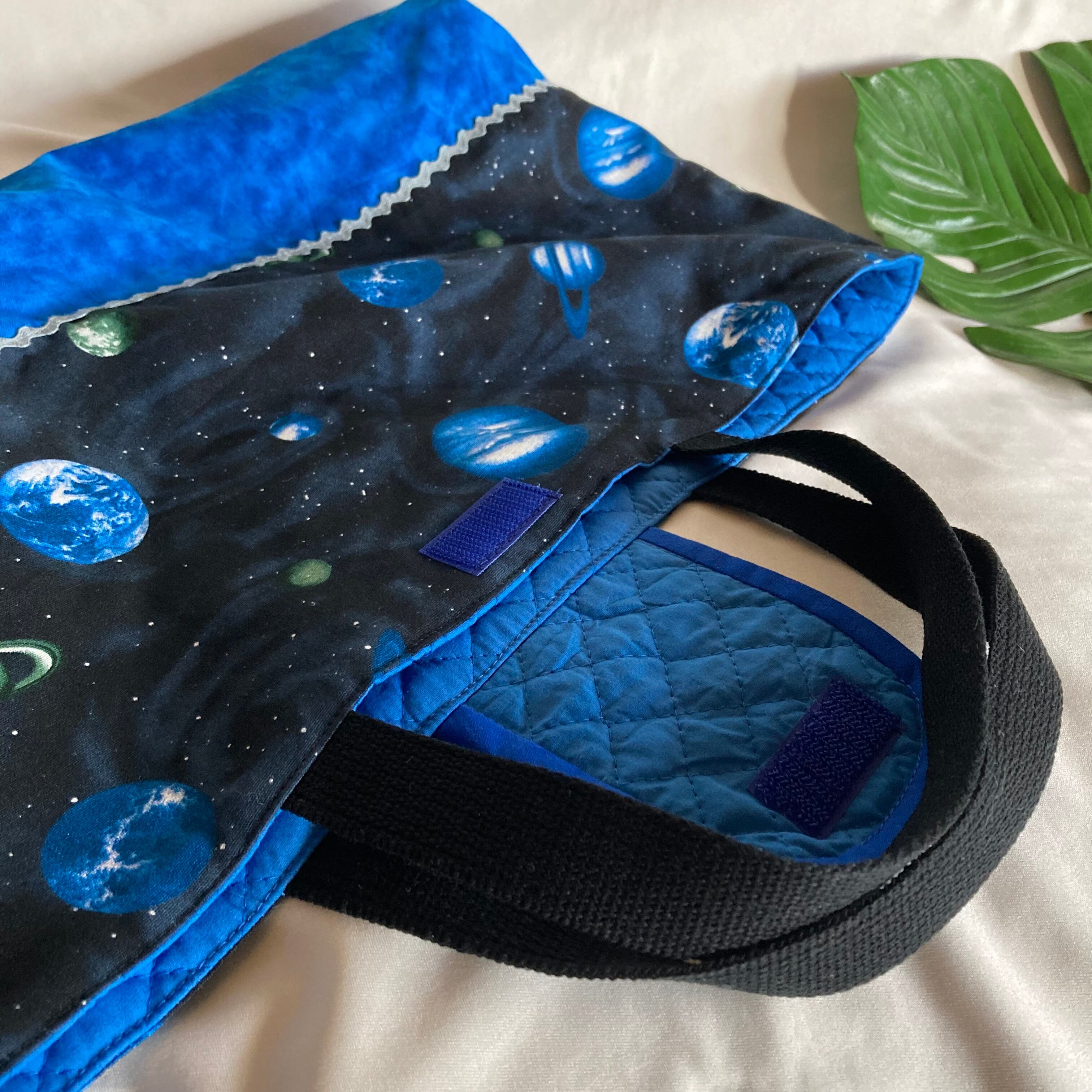 【素材】宇宙PT、むら染めブルー、キルティングブルー、ブレードで飾りました★