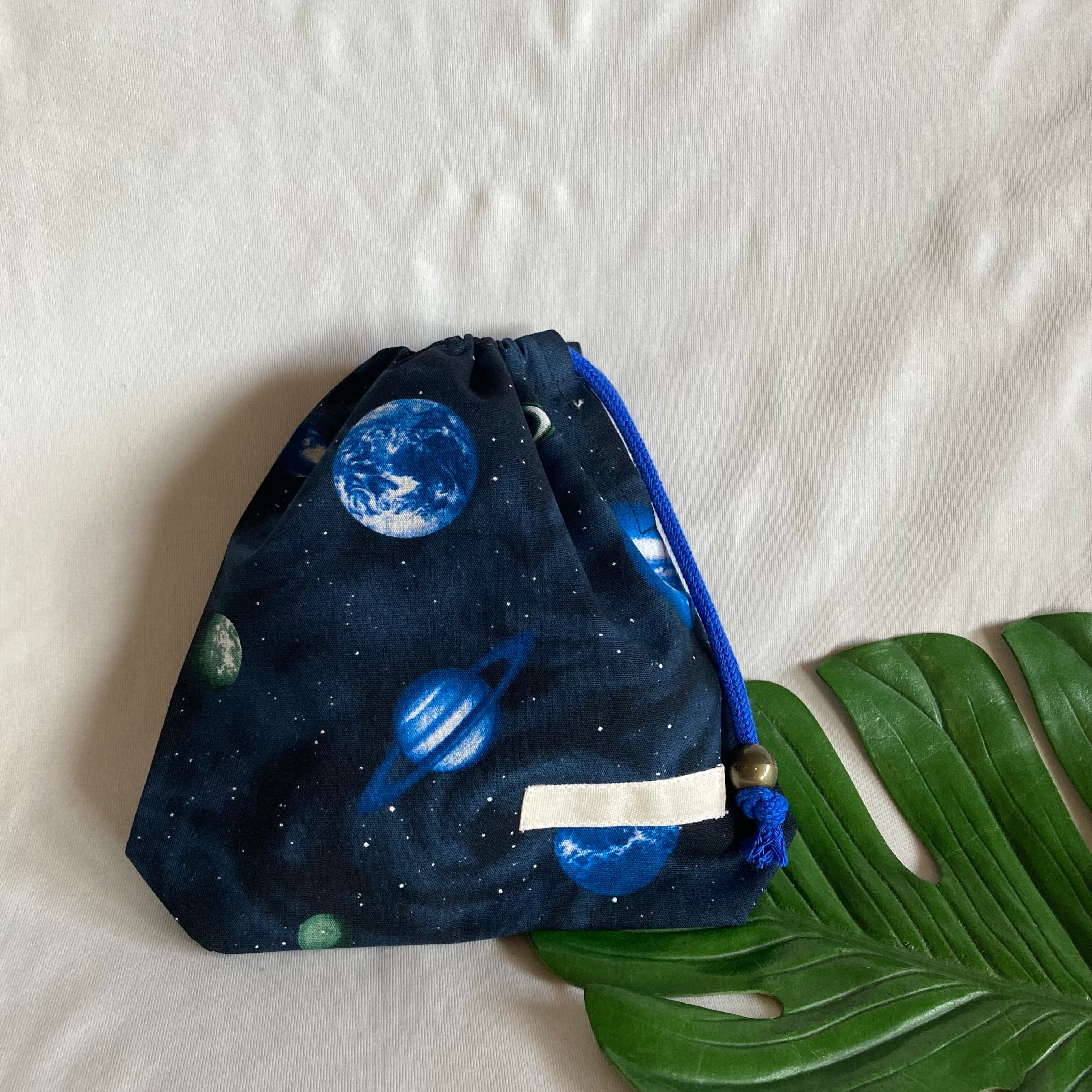 【オーダーOK】入園入学給食袋コップ入れ巾着★25神秘の宇宙銀河惑星★縫い付けお名前小学校幼児園児ラッピングプレゼント