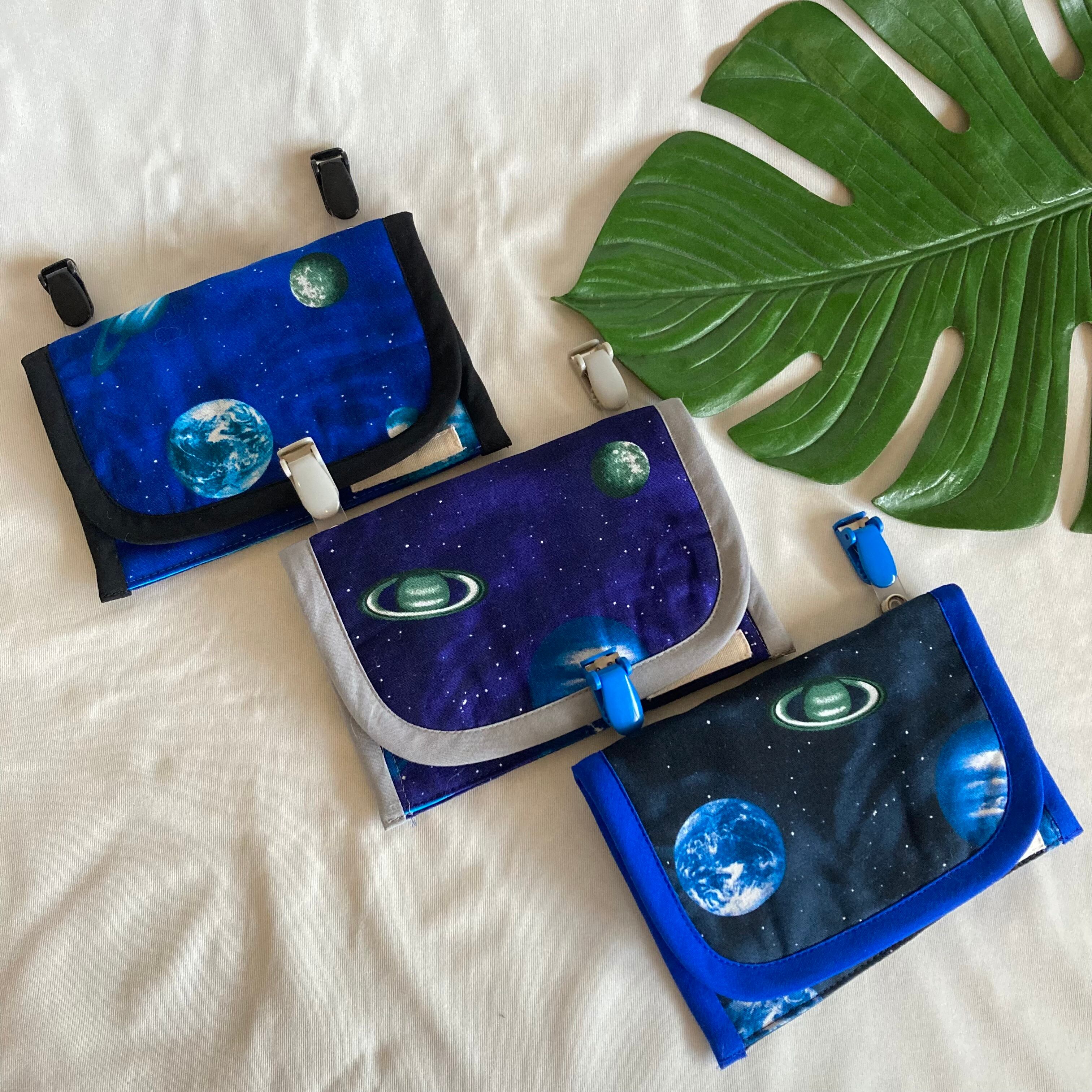 【オーダーOK】裏キルティング移動ポケット25神秘の宇宙銀河惑星★マスクケース入園入学ハンカチティッシュマルチポケット縫い付けお名前小学校お出かけポーチ習い事クリップ安全ピン