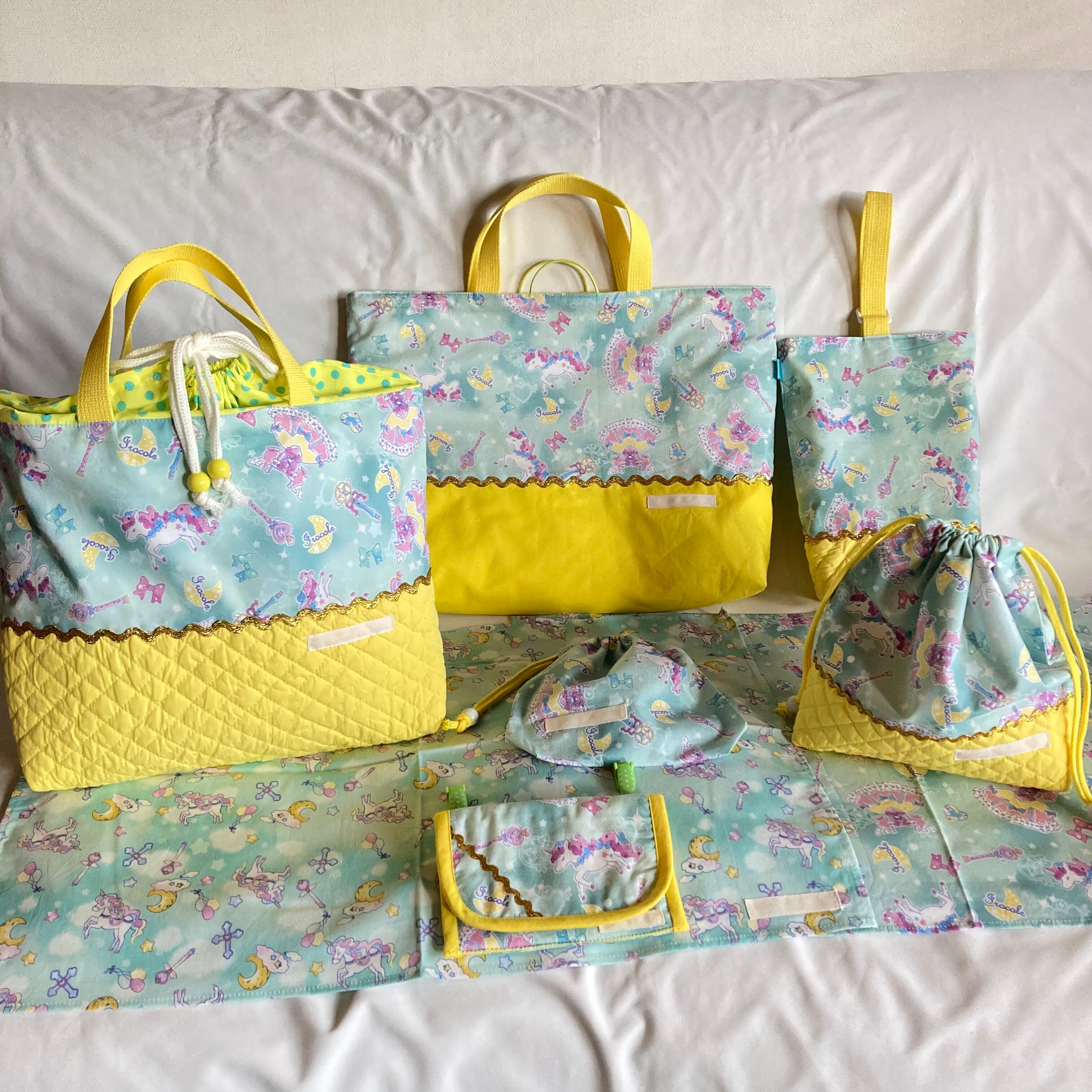 【オーダーOK】ランドセルの上から背負える!ナップサックナップザック持ち手つき巾着★79いろコレマジカルユニコーンMミント★入園入学