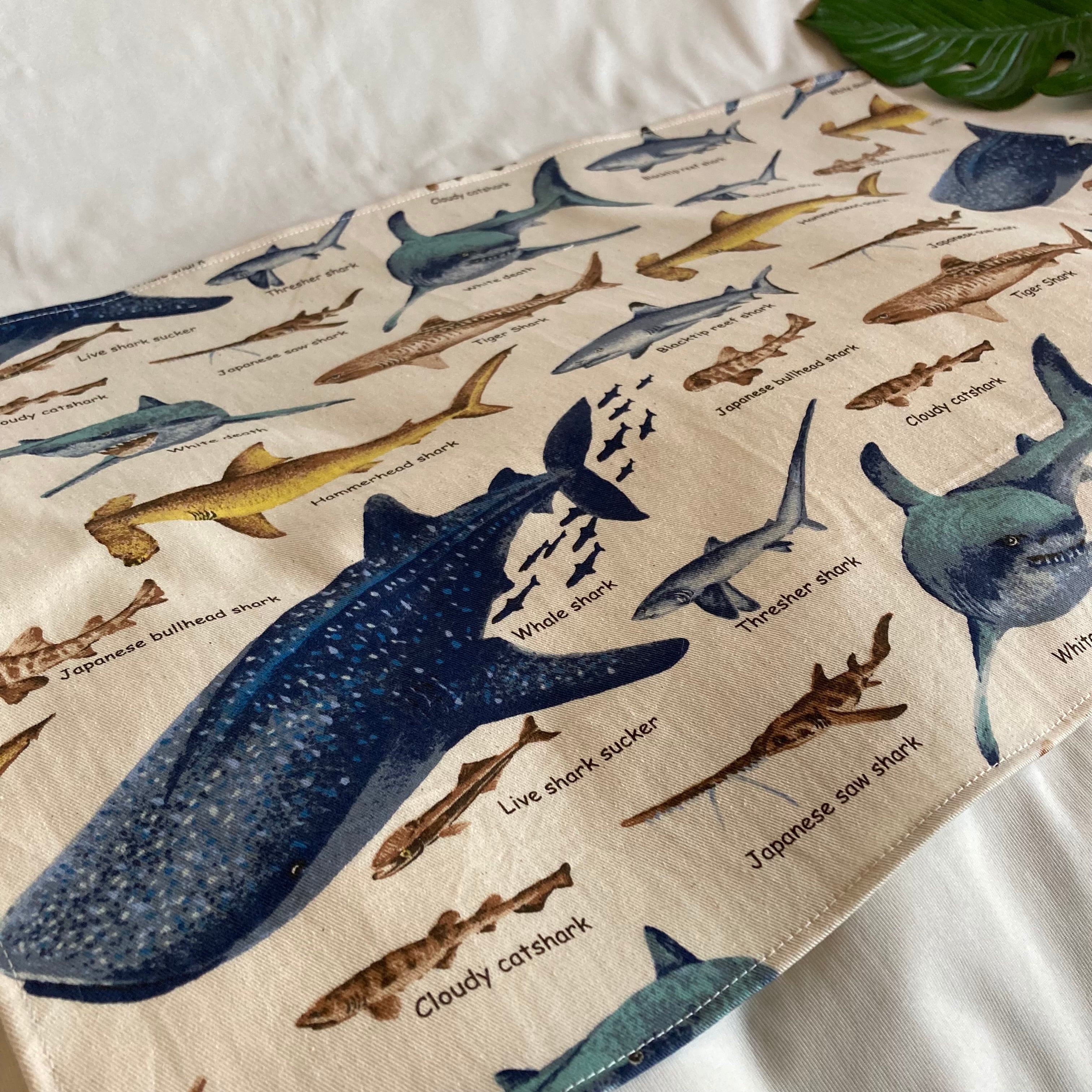 ちなみにこちらの大きいサイズのランチョンマットで、1番大きいジンベイザメはギリギリ1頭丸ごと入りますが、