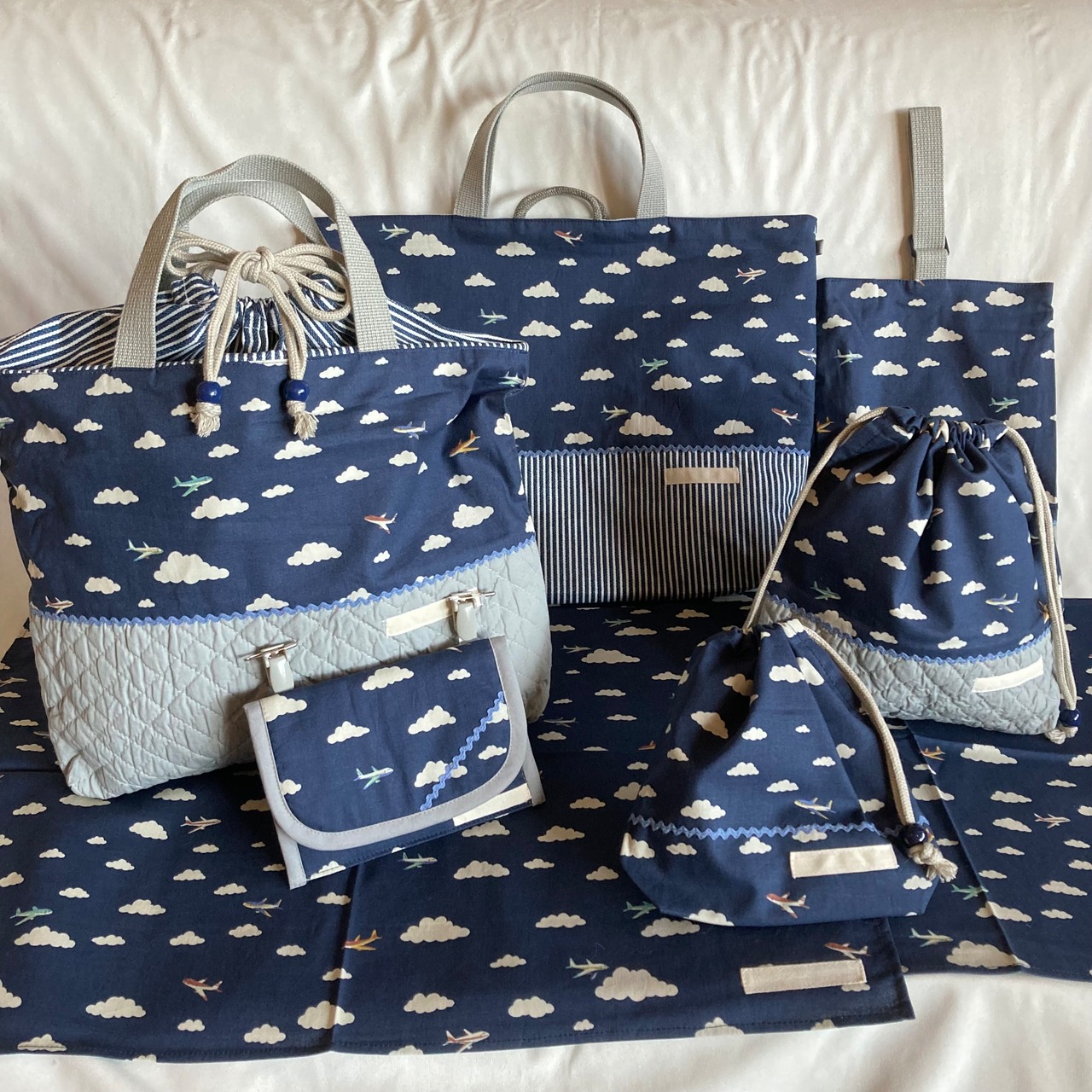 【オーダーOK】入園入学大きいランチョンマット60×40★67飛行機と雲N★給食ナフキンお弁当小学校机40×60㎝くすみニュアンスパステルネイビー