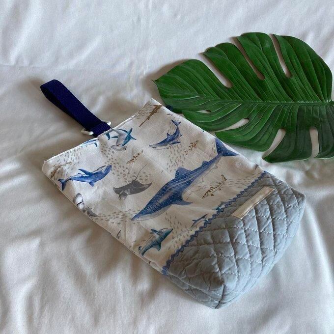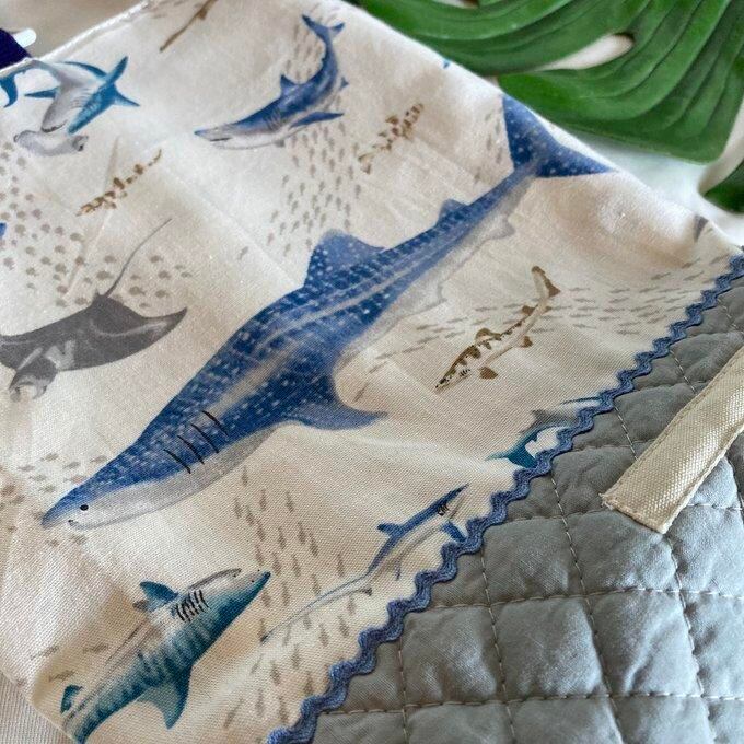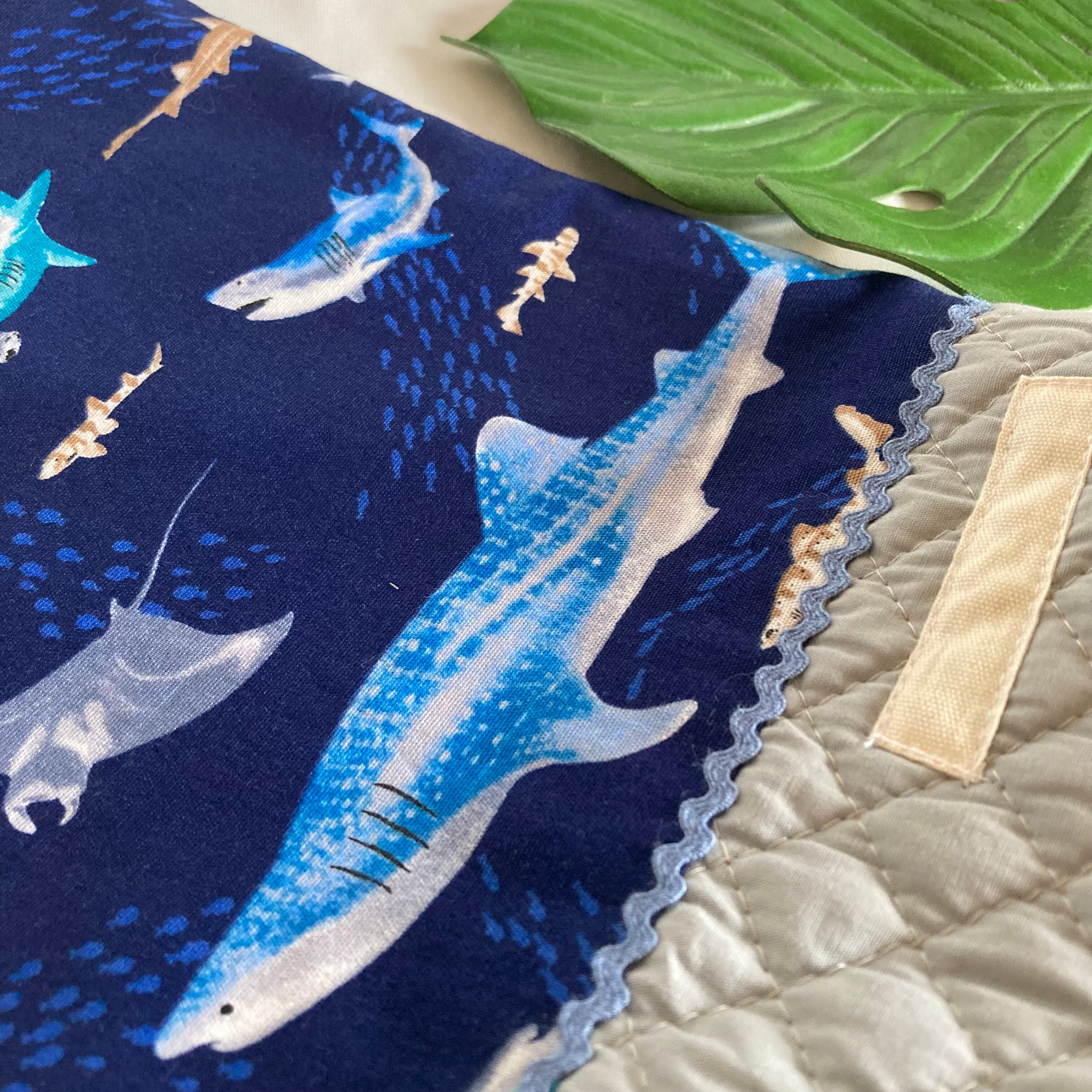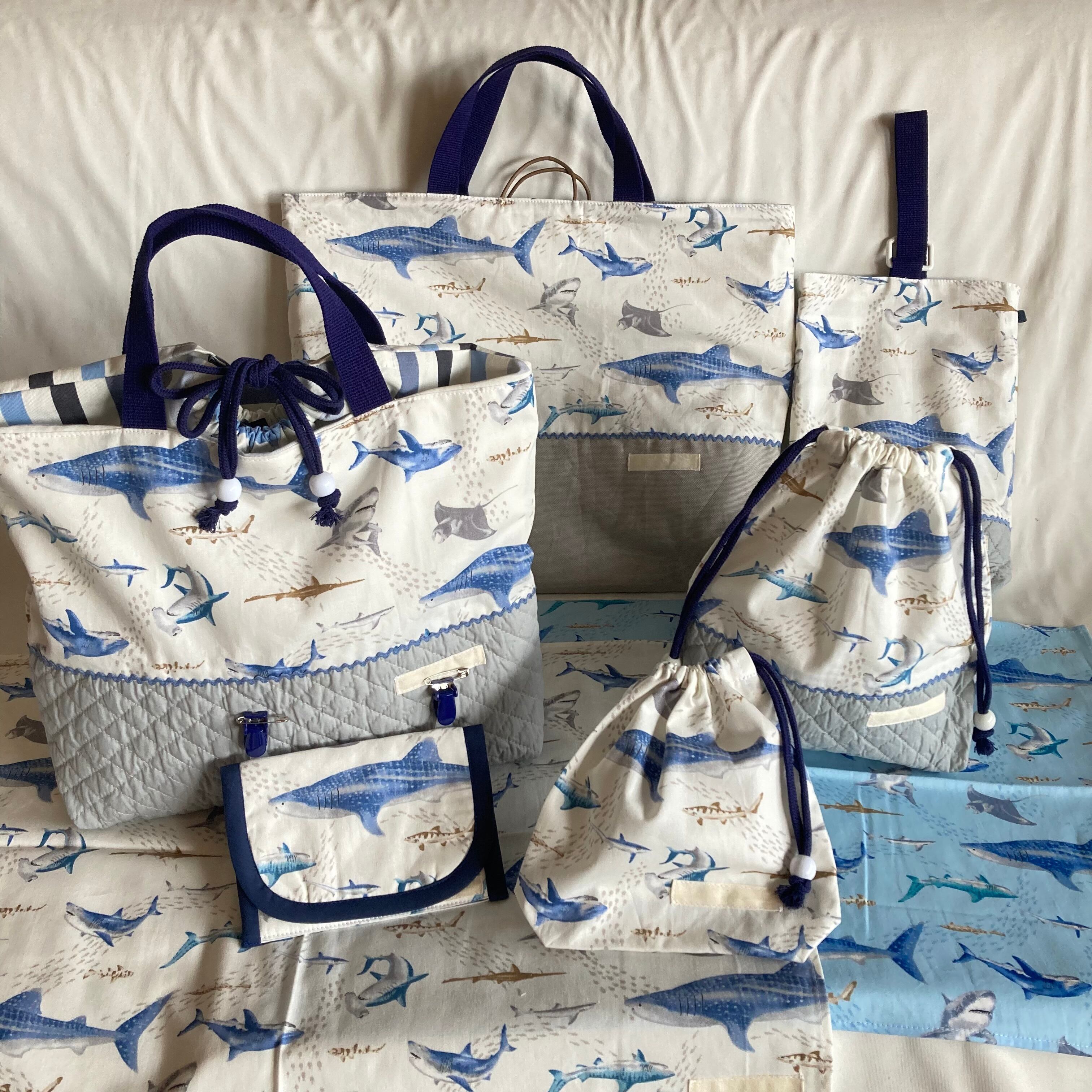 【オーダーOK】入園入学シューズケース上履き袋リバーシブル★68さめサメ大集合シャチエイ縫い付けマチ付きキルティングマチ付き海の生き物水族館
