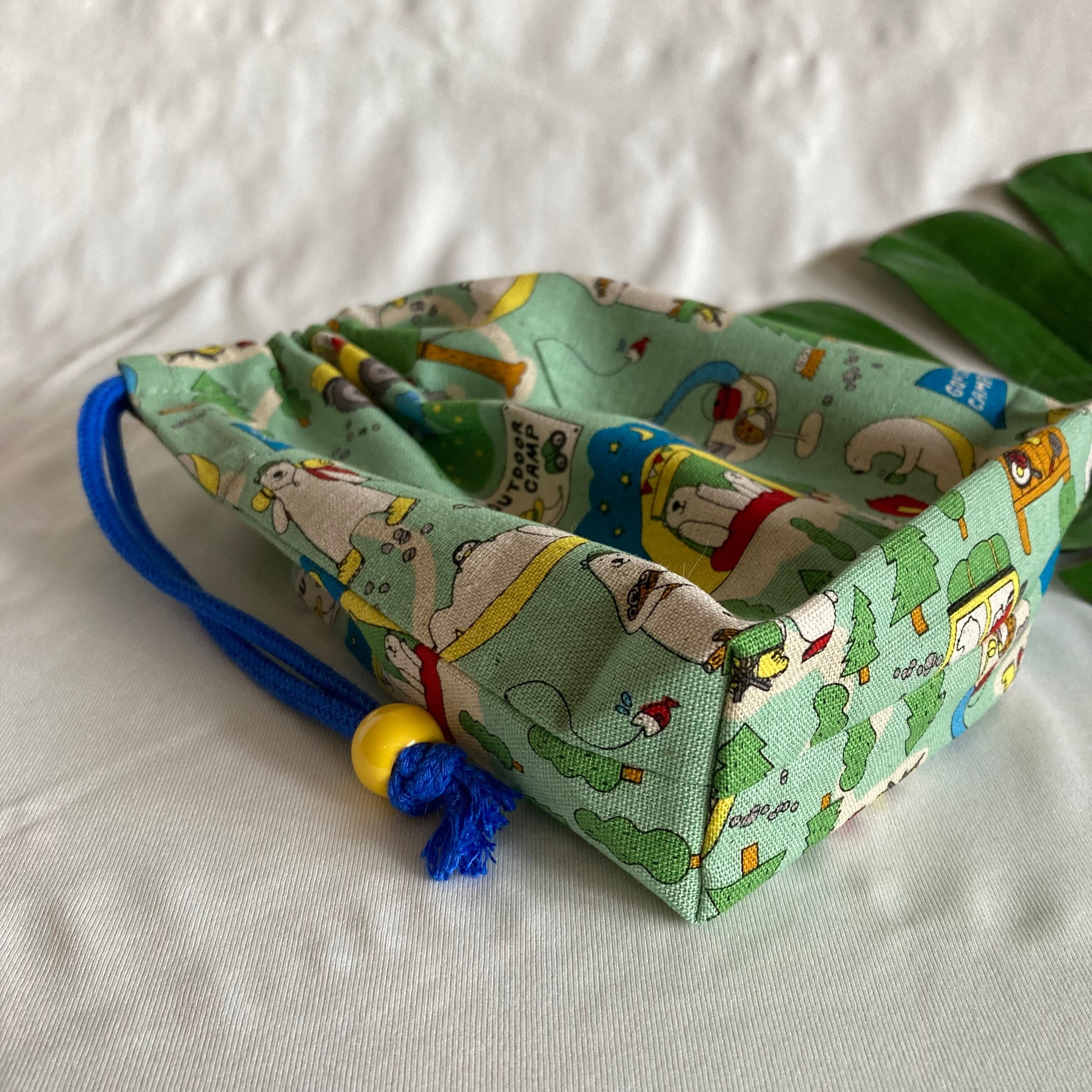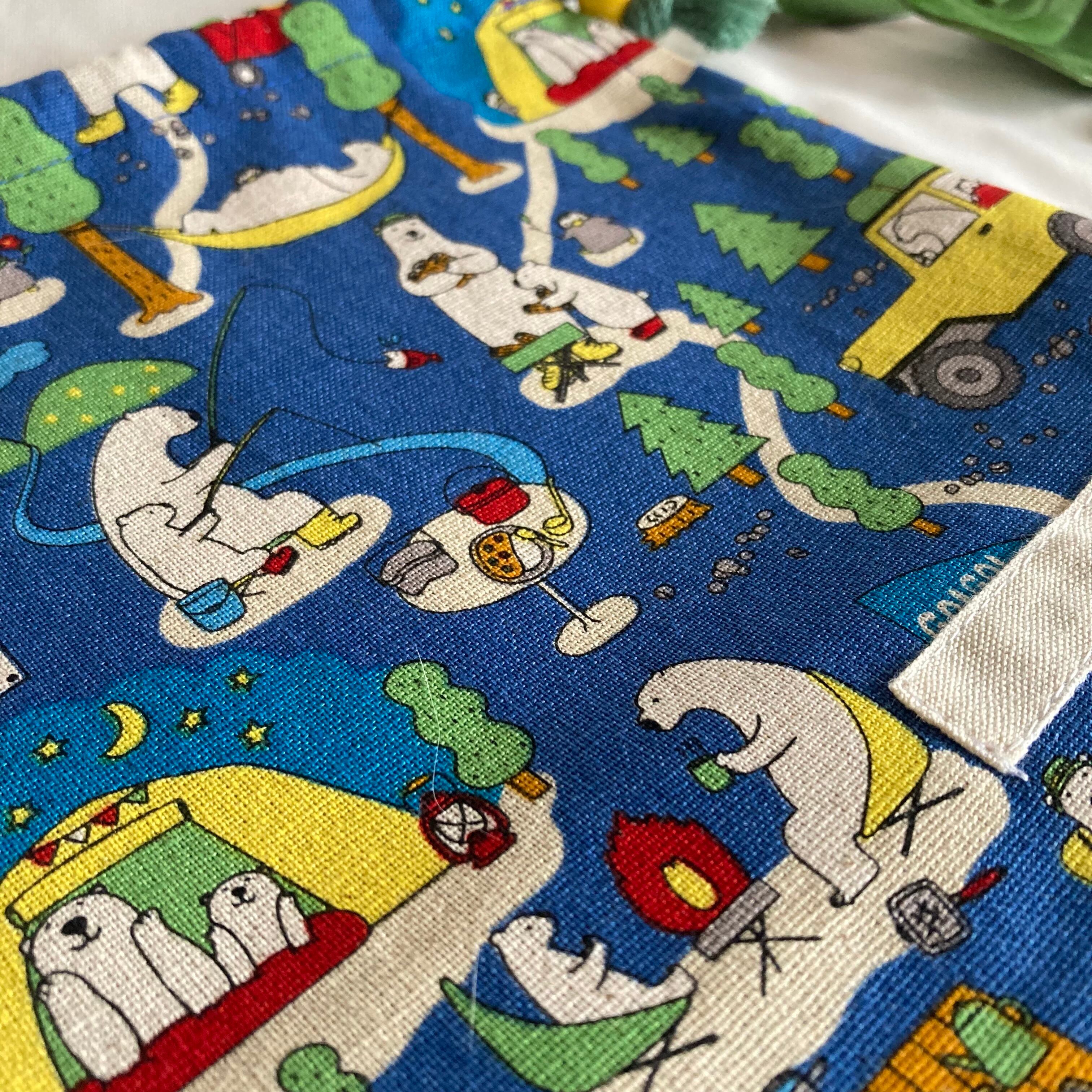 【オーダーOK】入園入学ランチョンマットコップ入れ巾着★白くまキャンプアウトドア★給食袋ナフキンお弁当ランチクロス★リネン綿麻混くすみニュアンスパステル