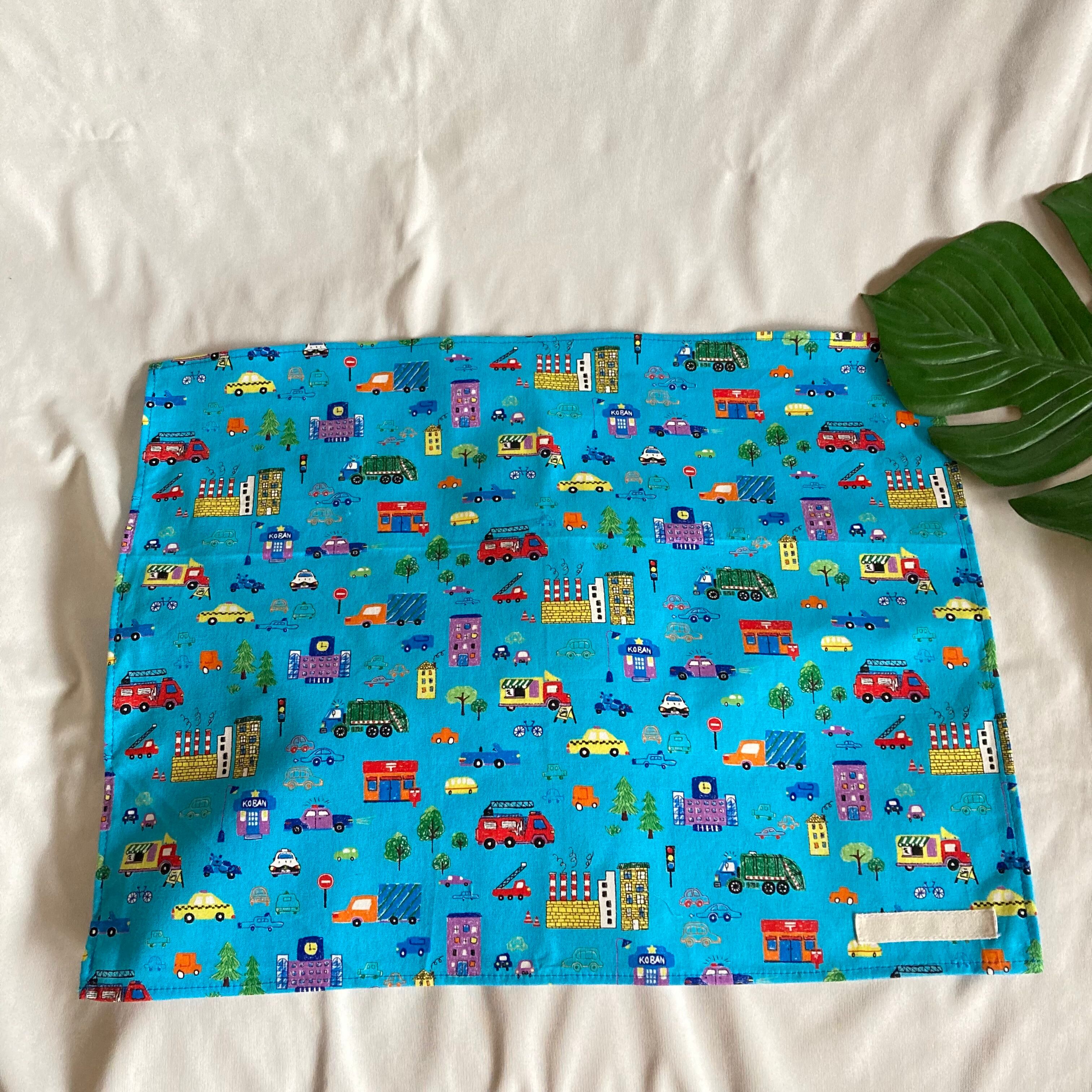 【オーダーOK】ランチョンマット×2枚セット(45×35cm)★道路働く車ダンプ工事車両バス★給食ナフキンお弁当ランチクロス入園入学★縫い付けお名前小学校プレゼントラッピング誕生日クリスマス35×45