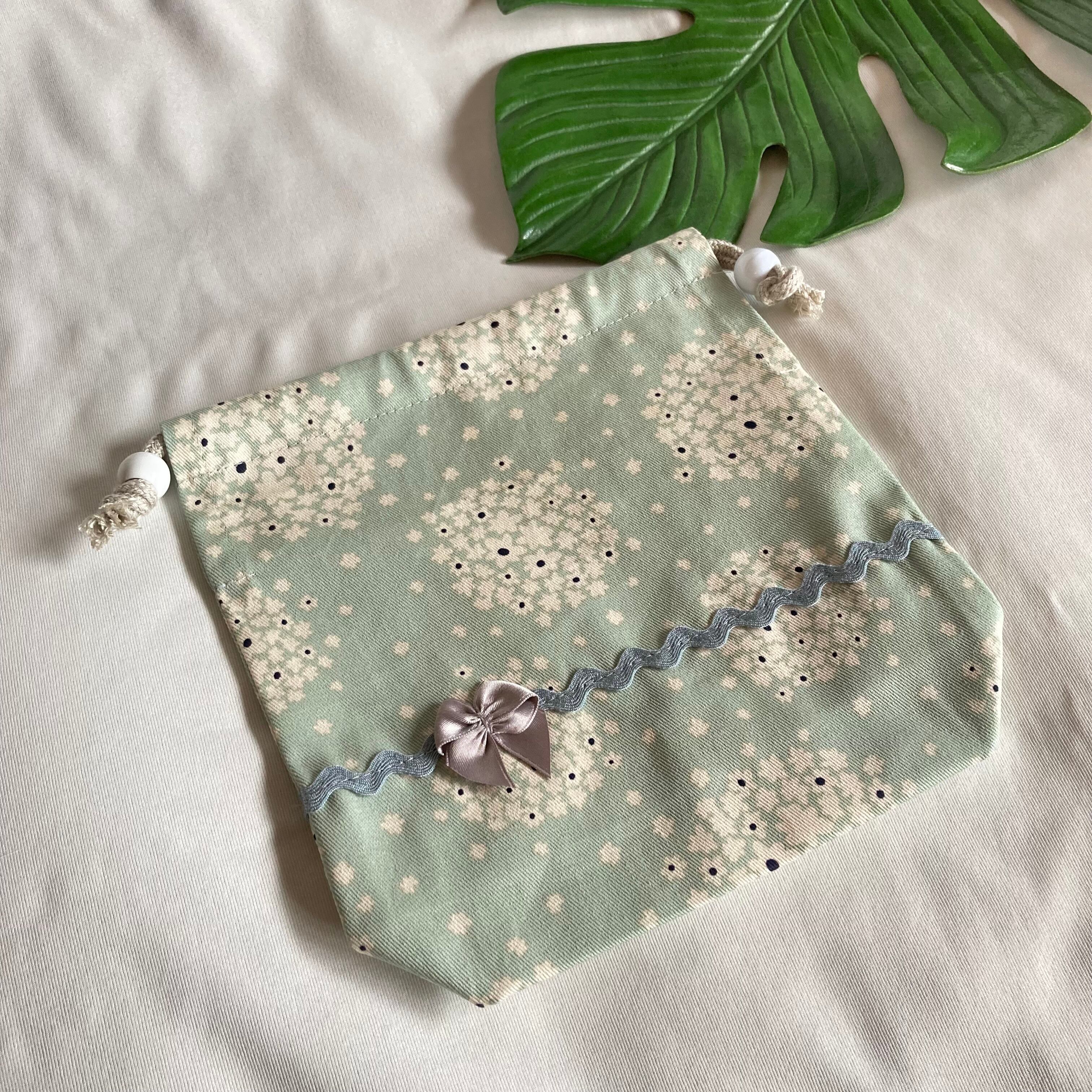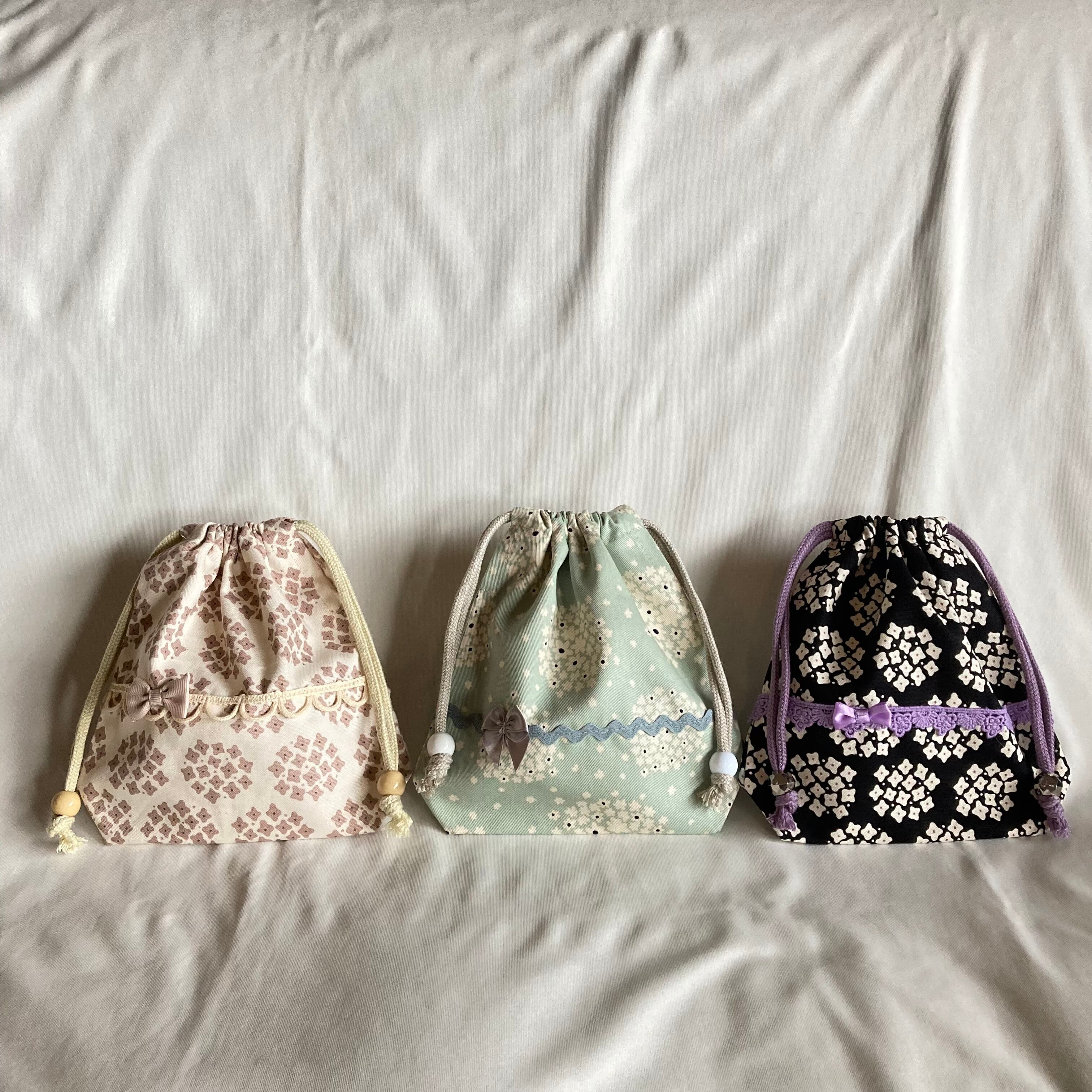 雨の日も華やかに…大人かわいい紫陽花シリーズ★両引き巾着★あじさいアジサイ花キルティングくすみニュアンス★母の日プレゼントクリスマス誕生日ラッピングオーダー料理キッチンお弁当コップ給食袋