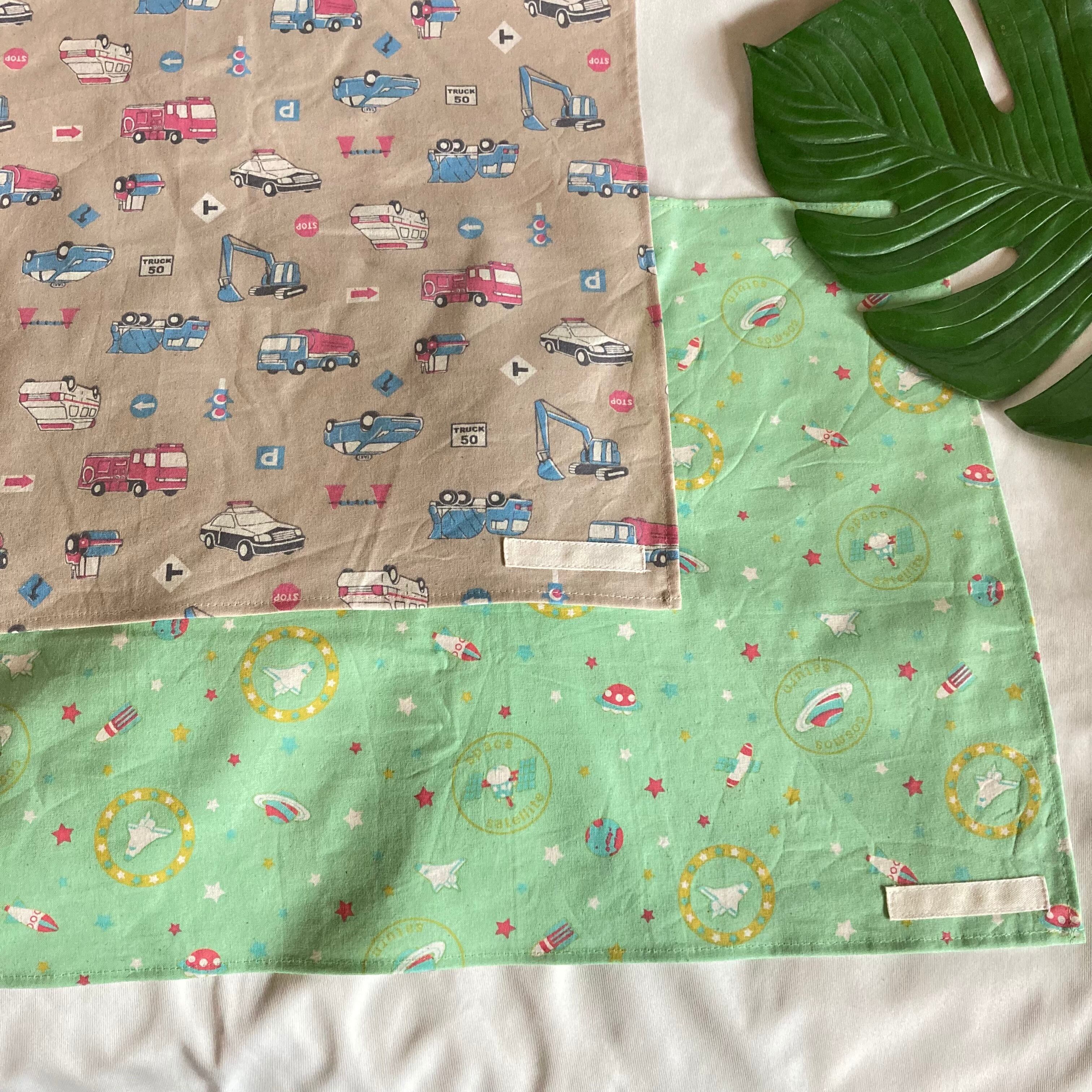 【オーダーOK】ランチョンマット×2枚セット(45×35cm)★くすみニュアンスパステル宇宙働く車★給食ナフキンお弁当ランチクロス入園入学★縫い付けお名前小学校35×45㎝★幼稚園保育園幼児ラッピング