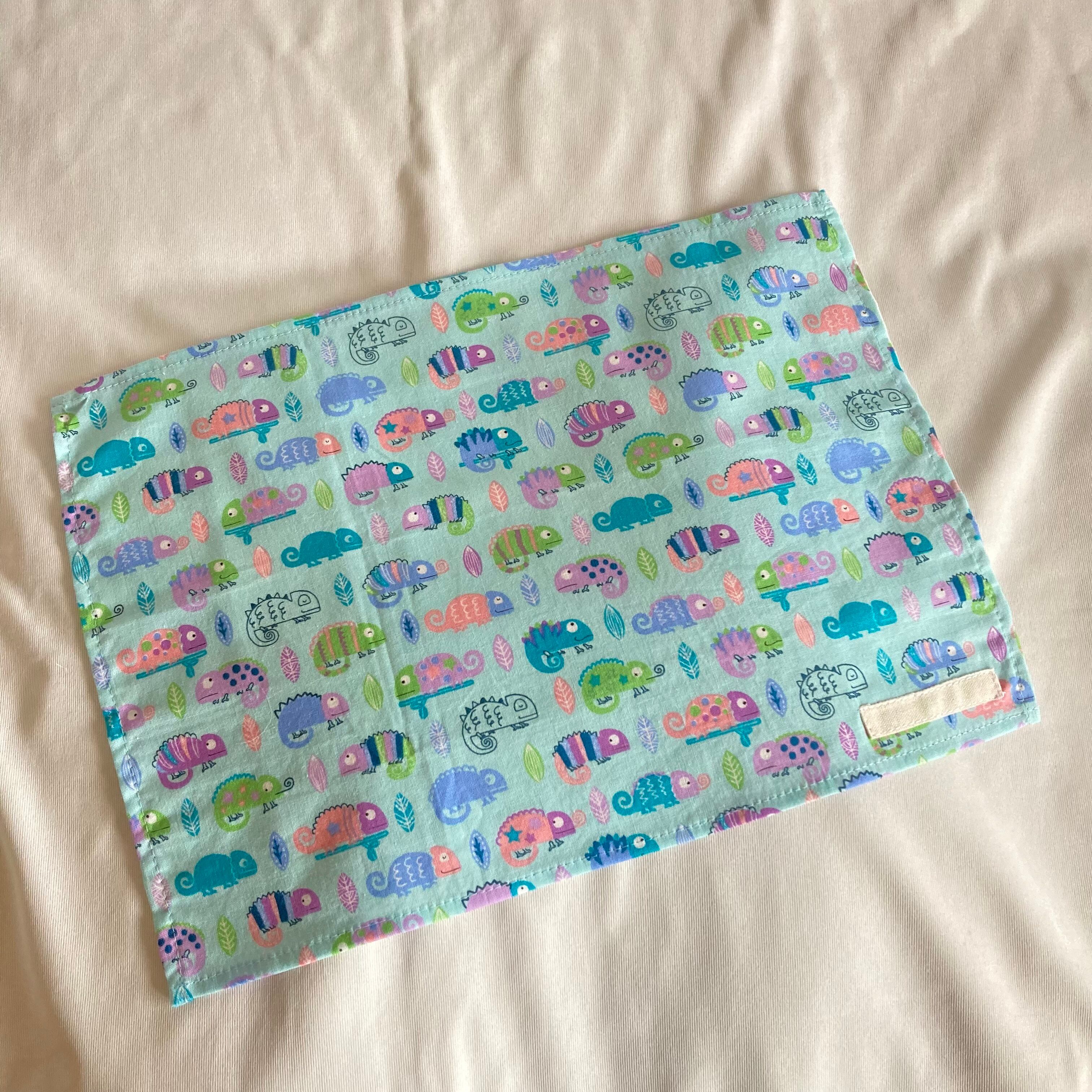 A4ランチョンマット3枚セット入園入学ランチクロスナフキン★カメレオンストライプ爬虫類パステルくすみニュアンス★縫い付けお名前幼稚園保育園幼児★ラッピングプレゼント誕生日クリスマス