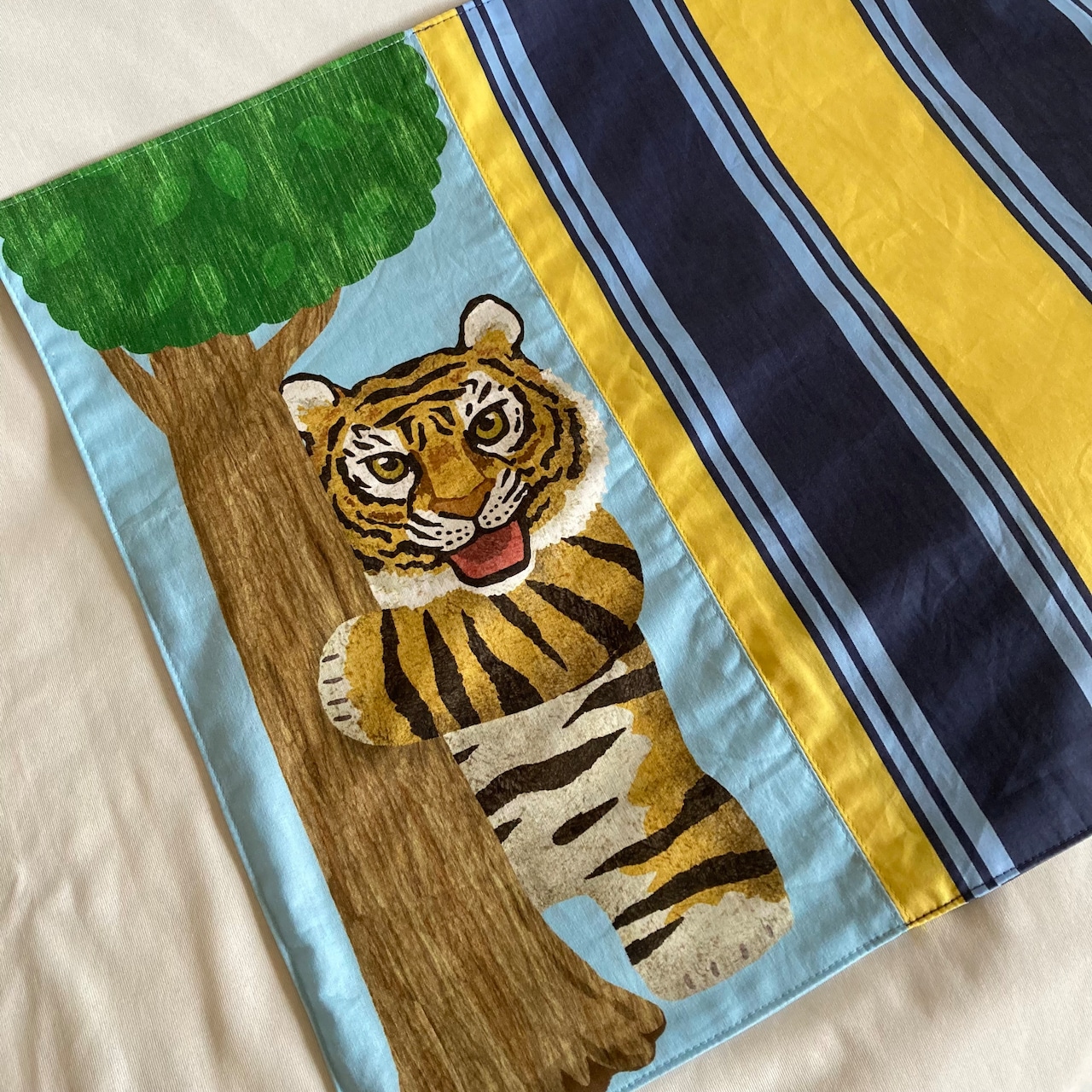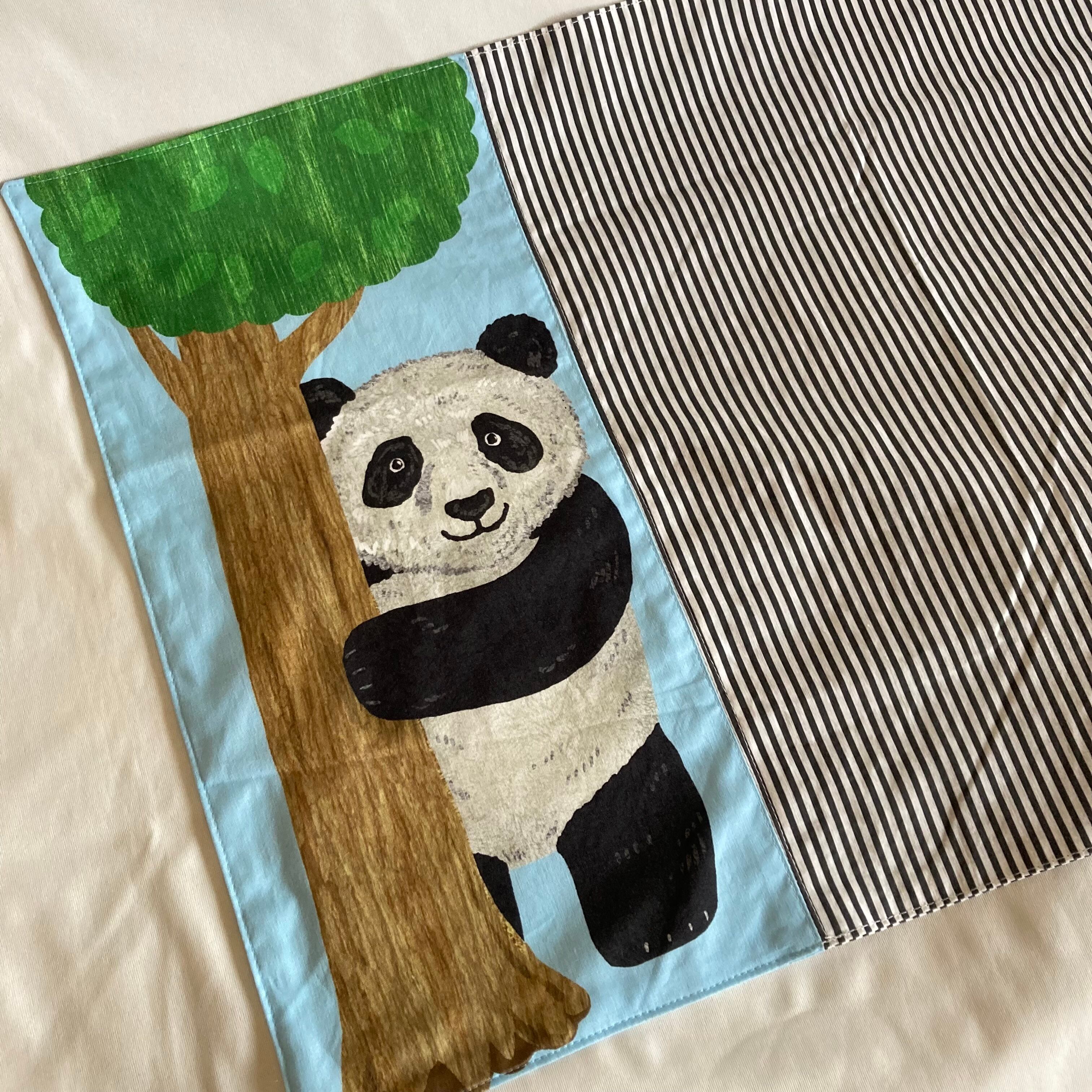 【オーダーOK】リバーシブル2枚仕立て裏地入園入学大きいランチョンマット(60×40㎝)★パンダインコトラ犬うさぎ×ストライプ★給食ナフキンお弁当★お名前小学校机40×60㎝★ラッピングプレゼント