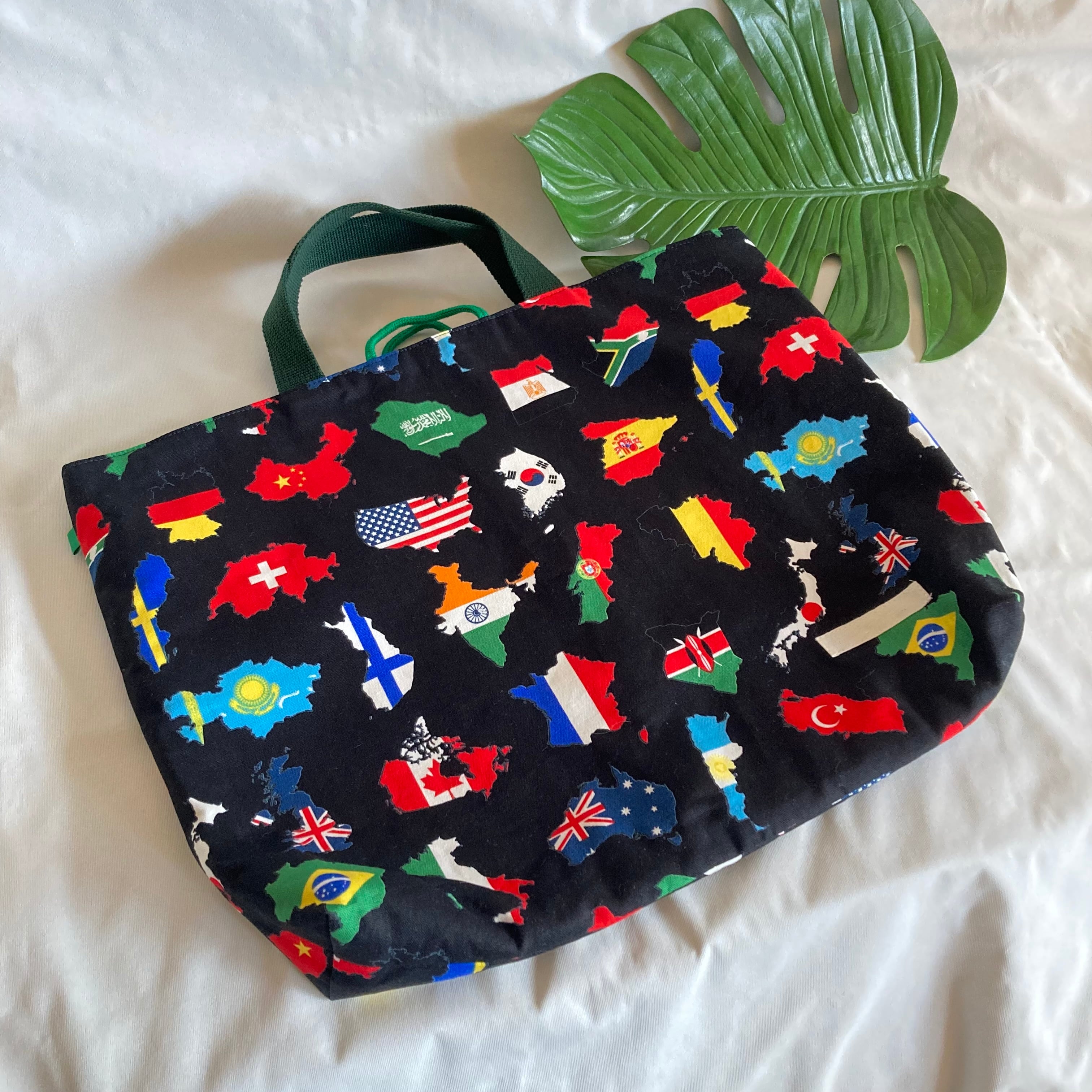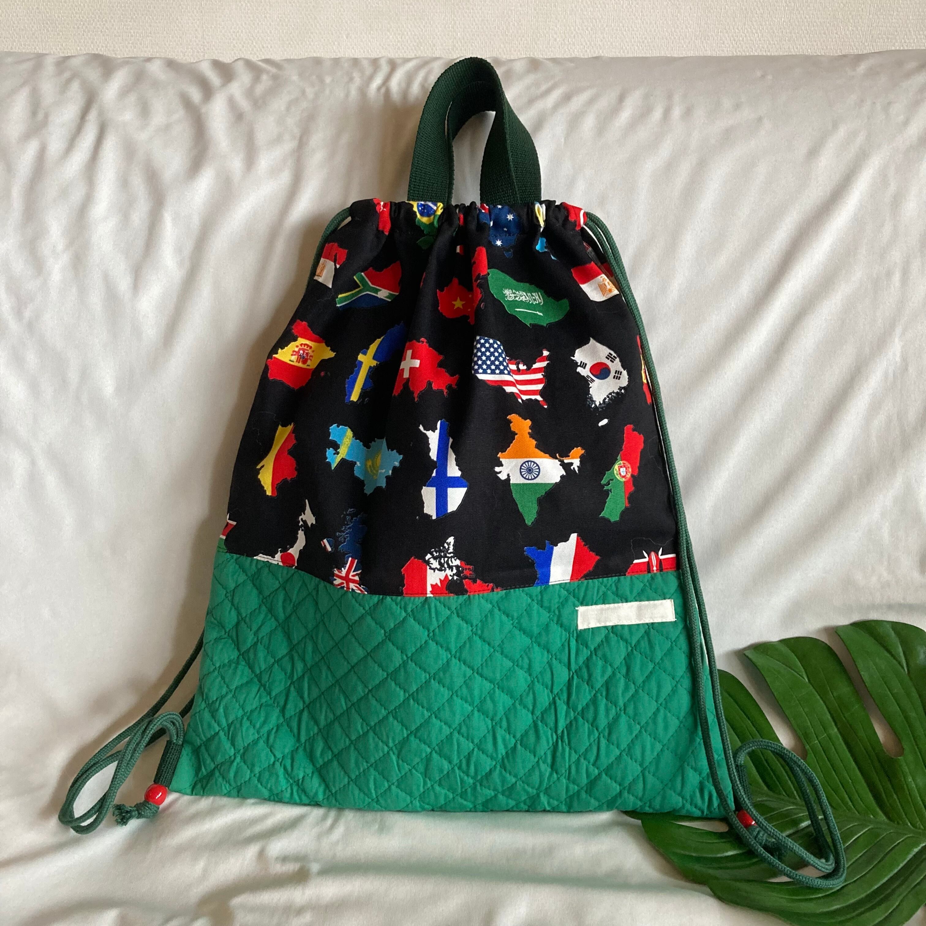 【オーダーOK】入園入学セット71世界地図国旗日本地球ワールド地理黒★手提げレッスンバッグ絵本袋シューズ体操着コップ上履き給食着替え巾着ランチョンマット移動ポケットナップサックキルティングマチポケット