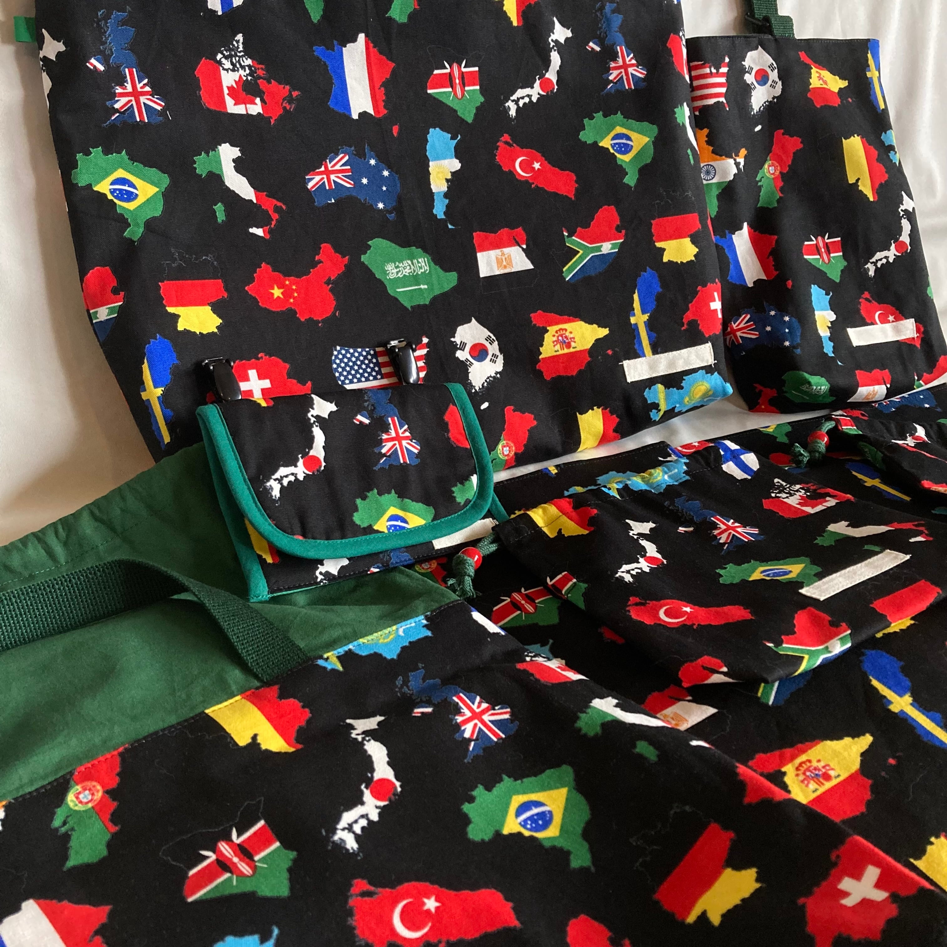 【素材】国旗世界地図PT、キルティンググリーン、無地グリーン、ブレードで飾りました★