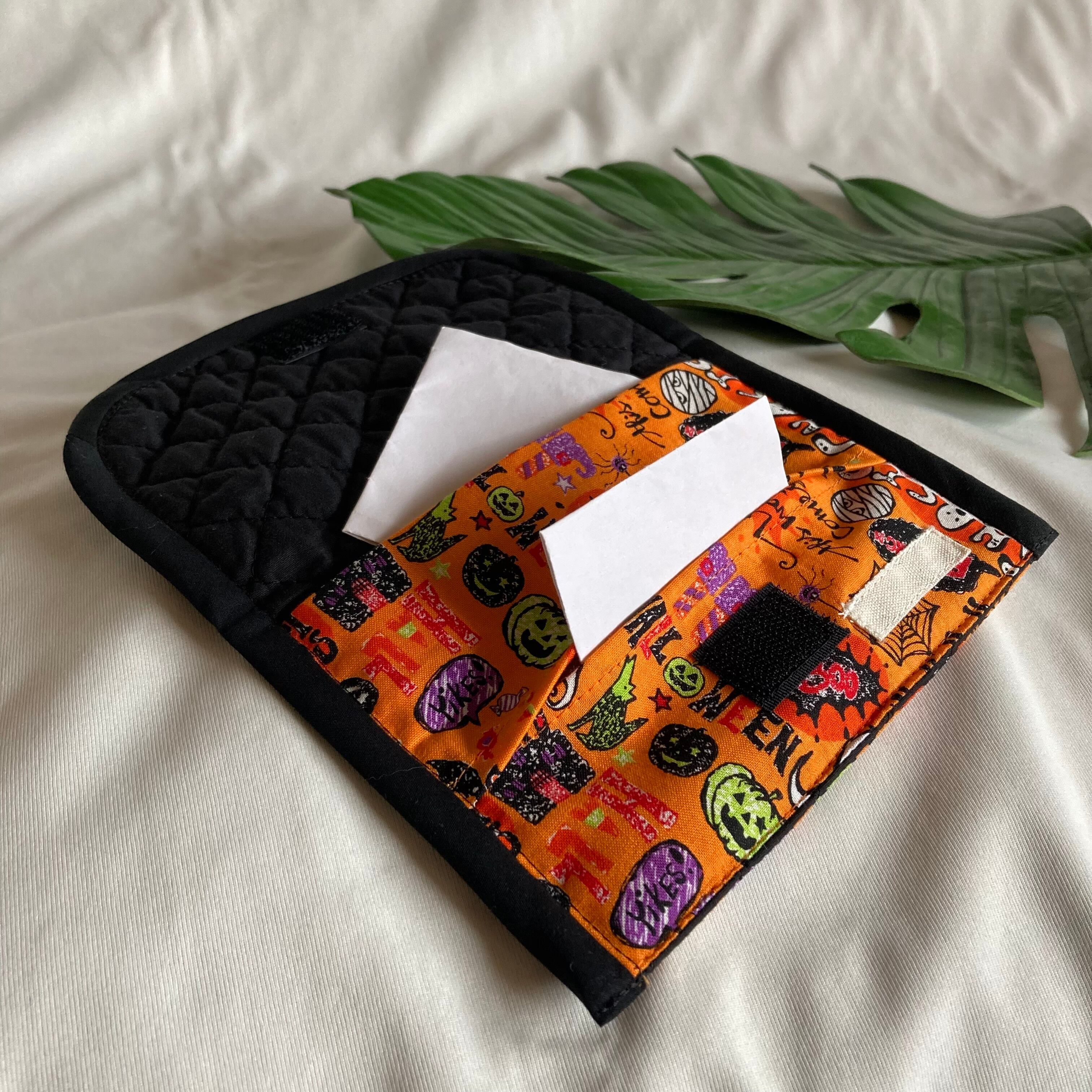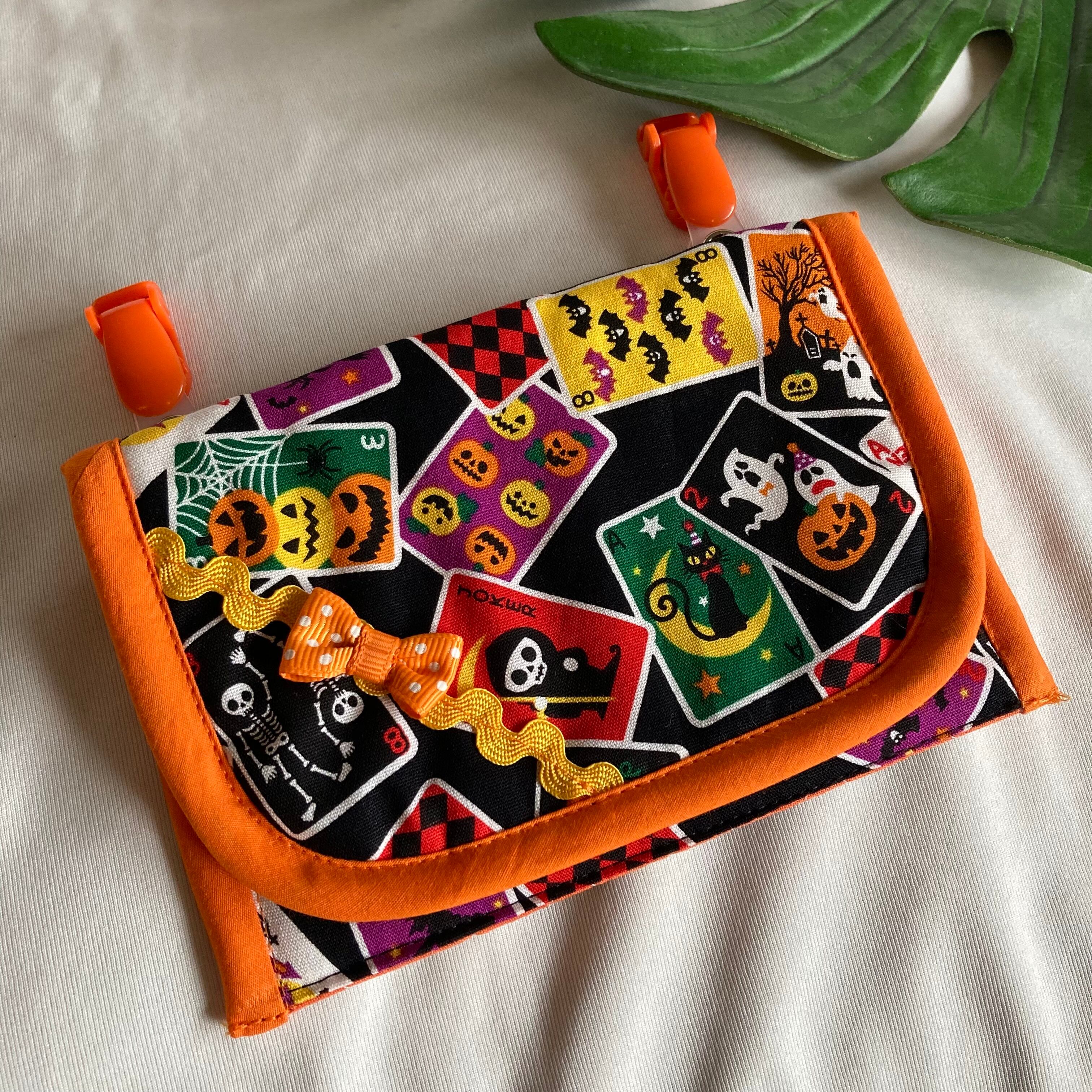 【オーダーOK】裏キルティング移動ポケット★ハロウィンかぼちゃおばけ★マスクケース入園入学ハンカチティッシュ★マルチポケットお出かけポーチ習い事クリップ安全ピン