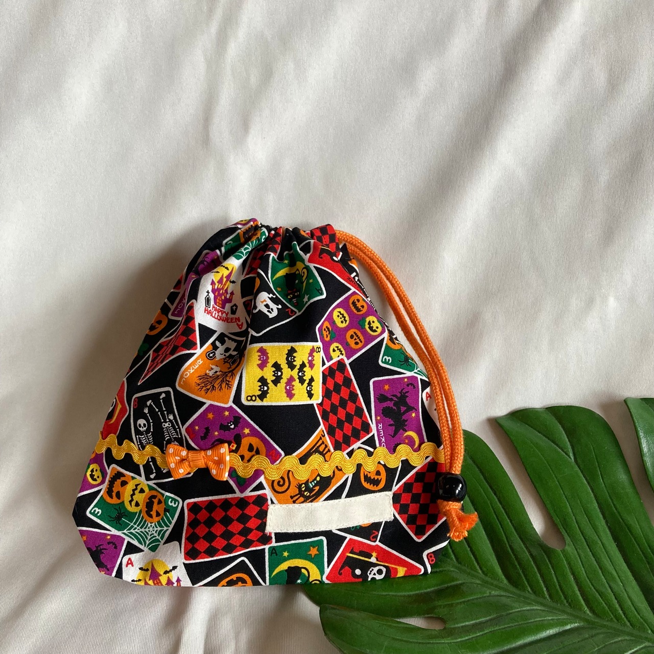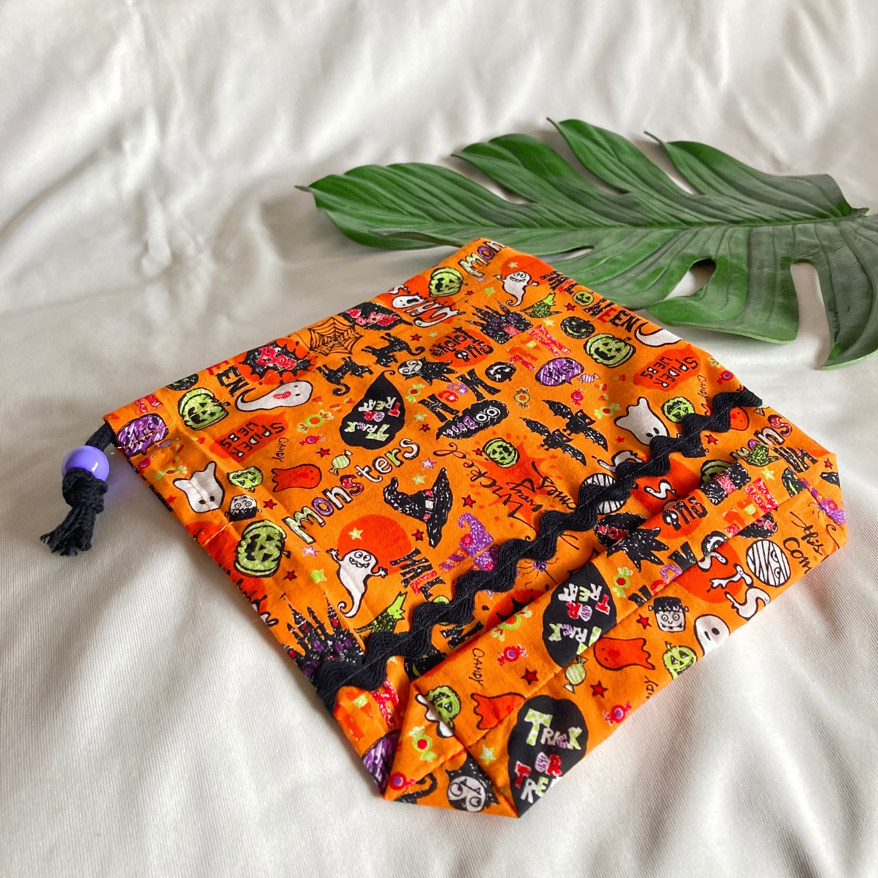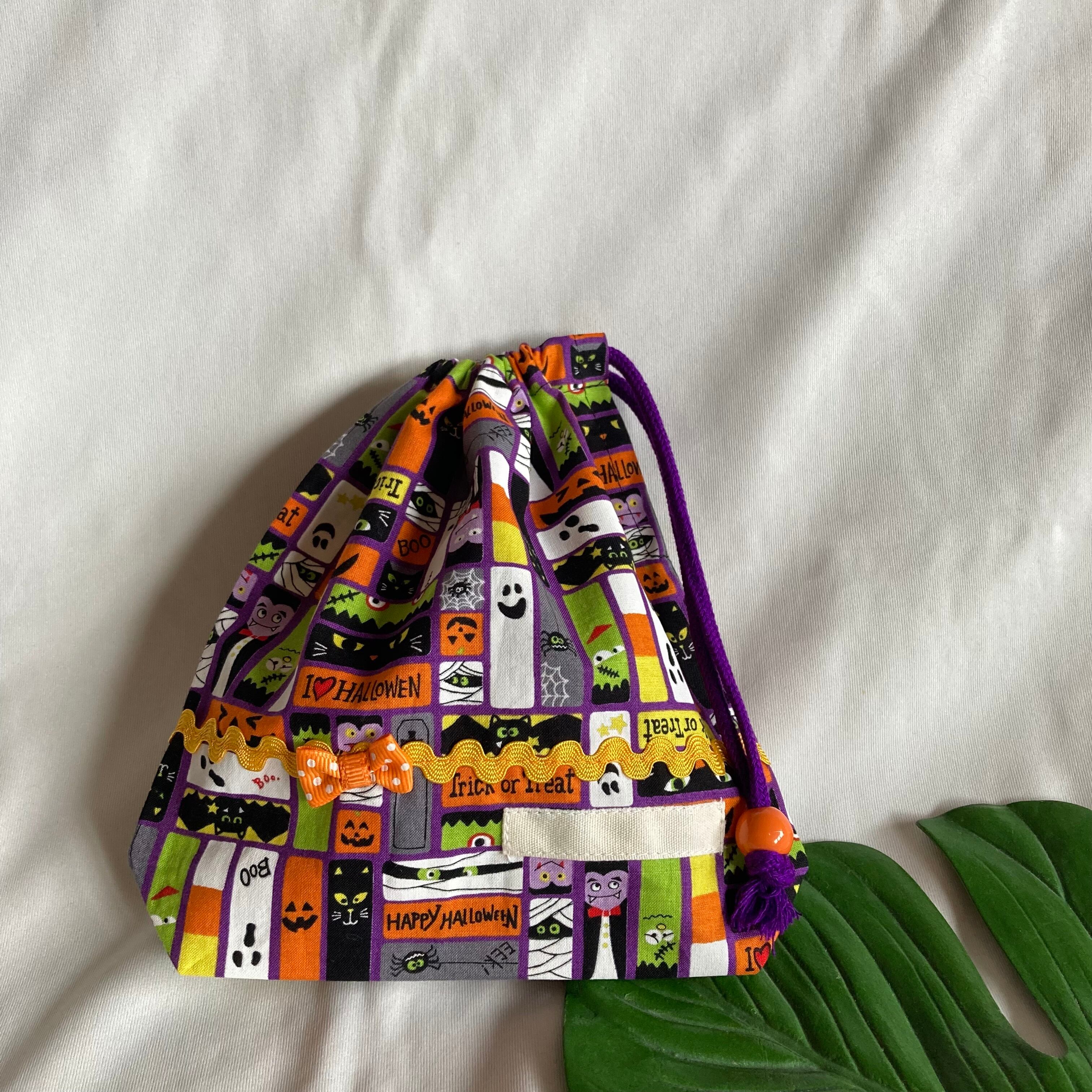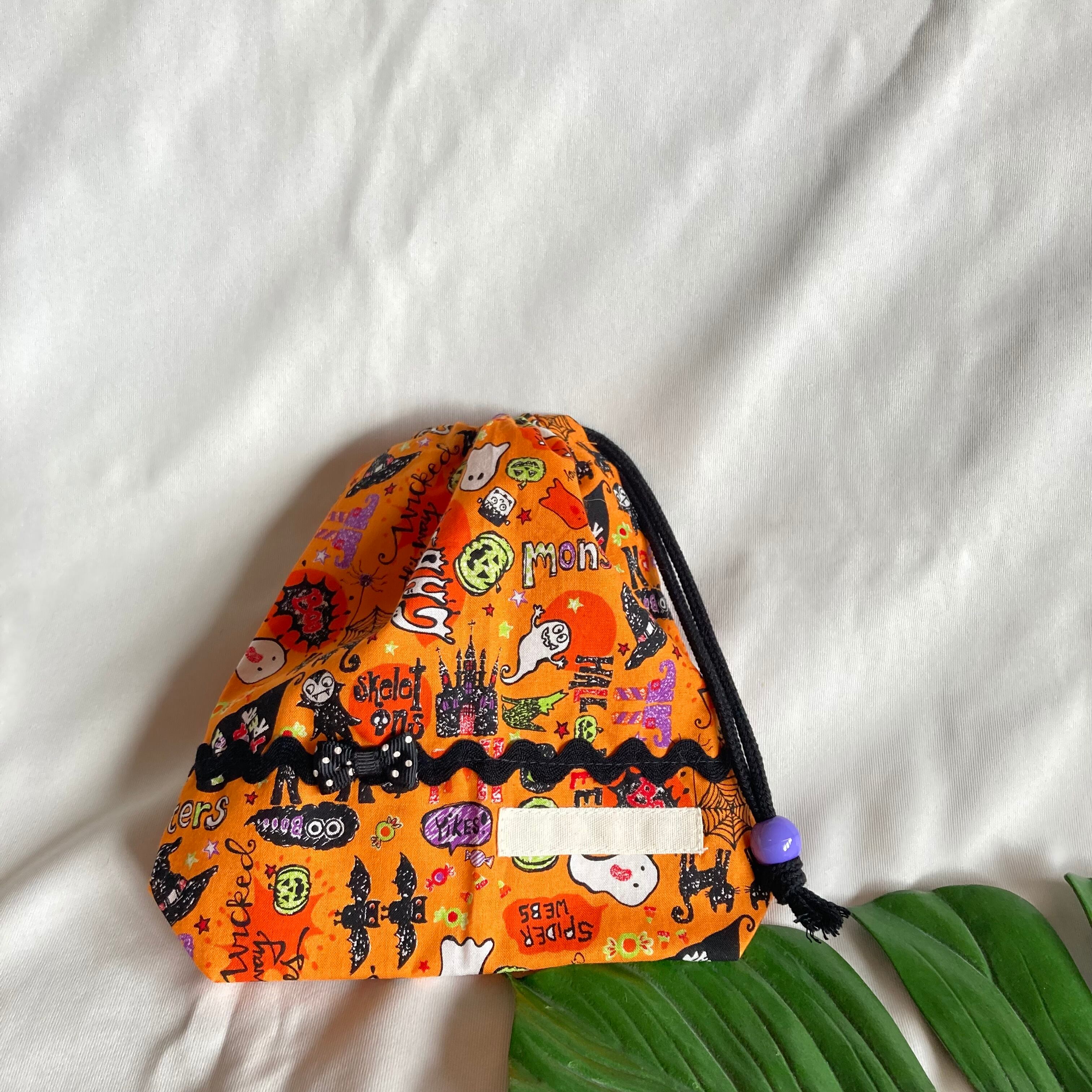 【オーダーOK】入園入学給食袋コップ入れ巾着★ハロウィンかぼちゃ黒猫おばけイベント★お名前小学校マチ★ラッピングプレゼント誕生日