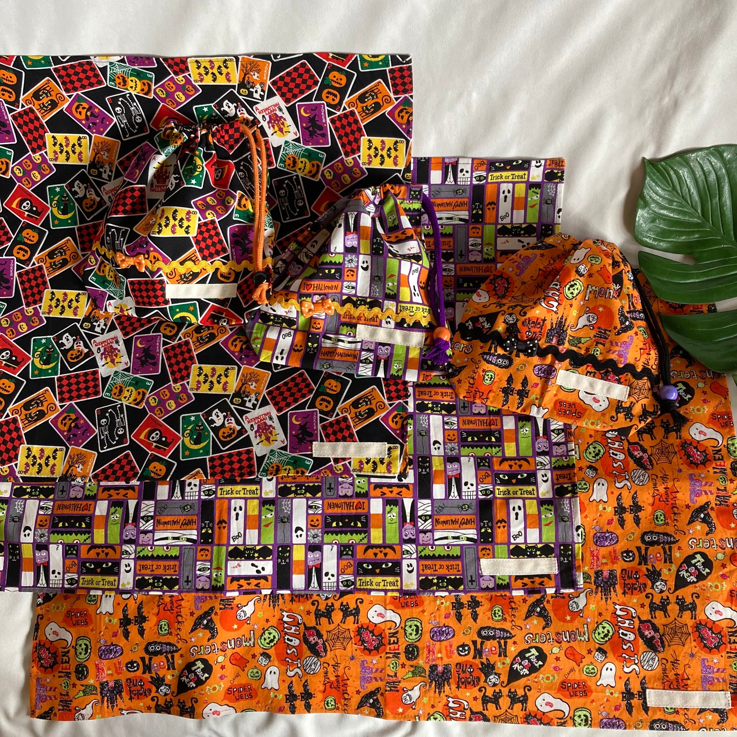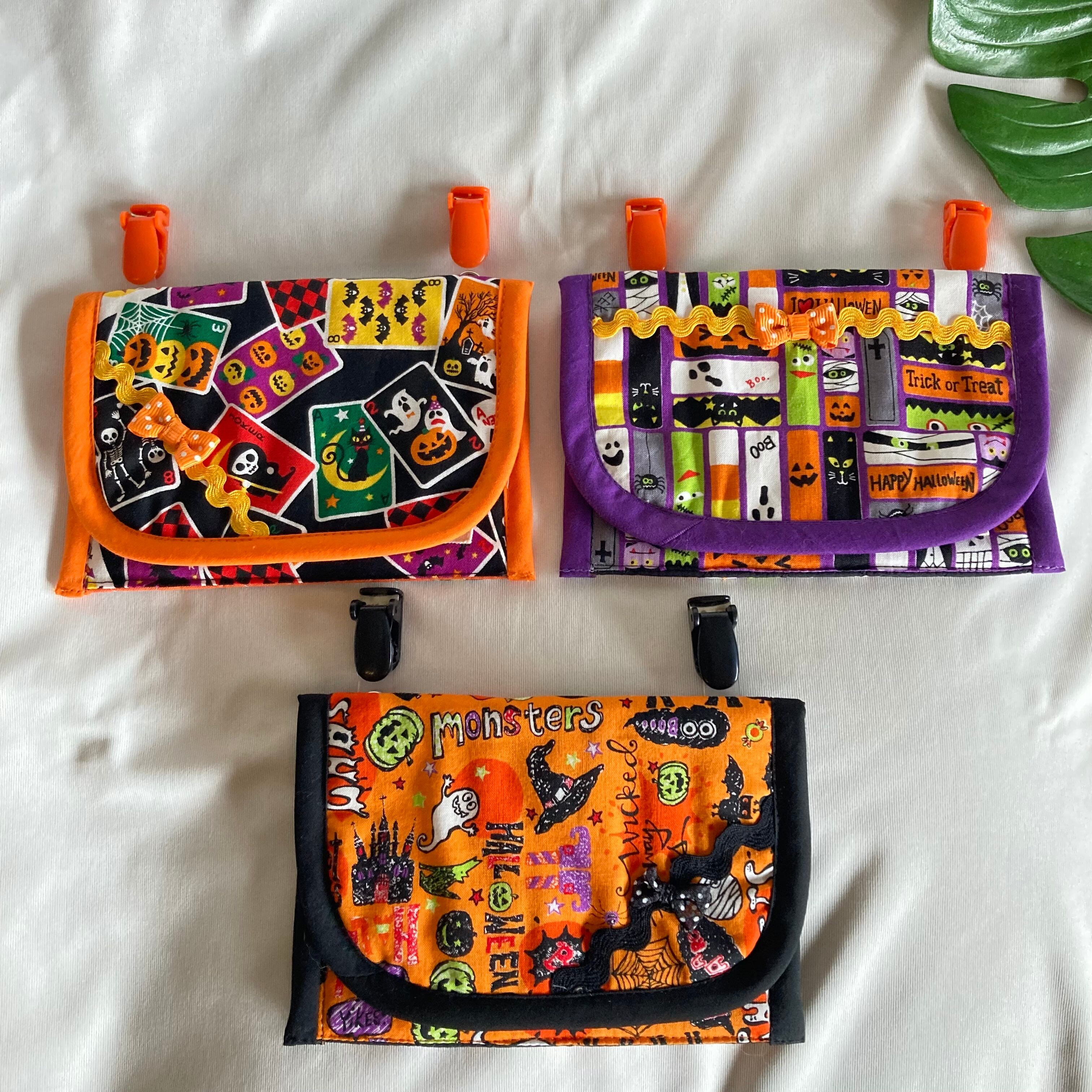左からトランプ柄、中央:四角柄、右:オレンジハロウィン柄