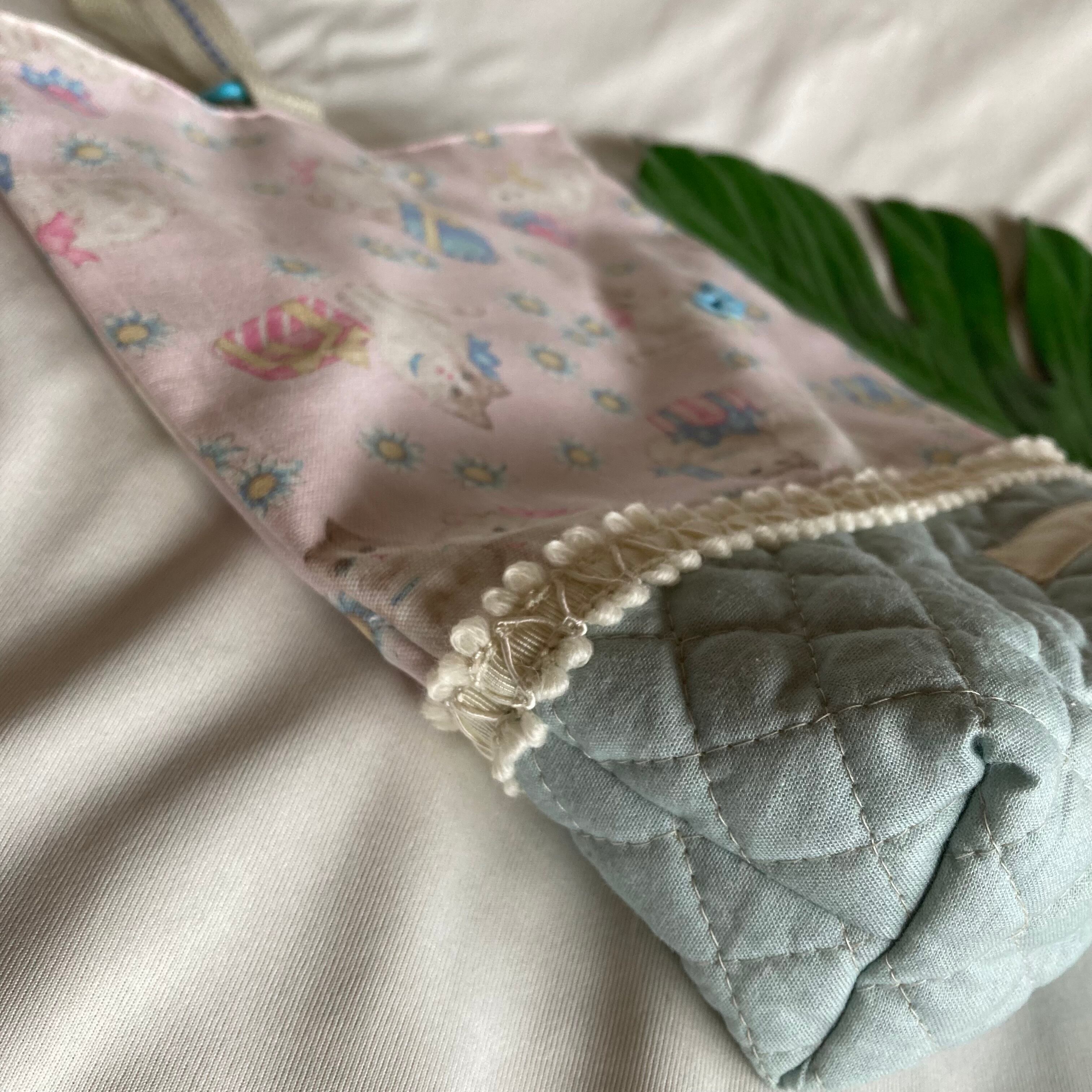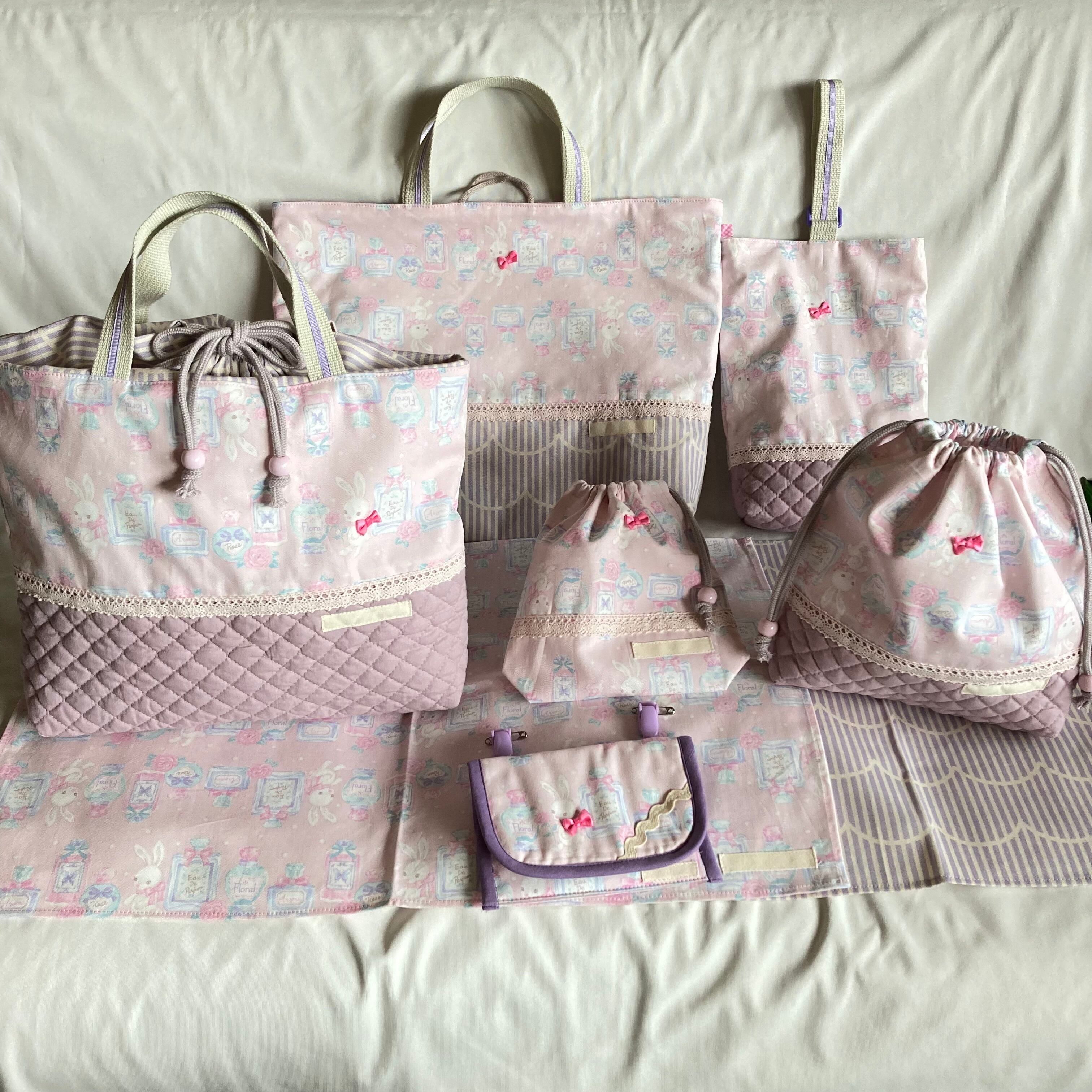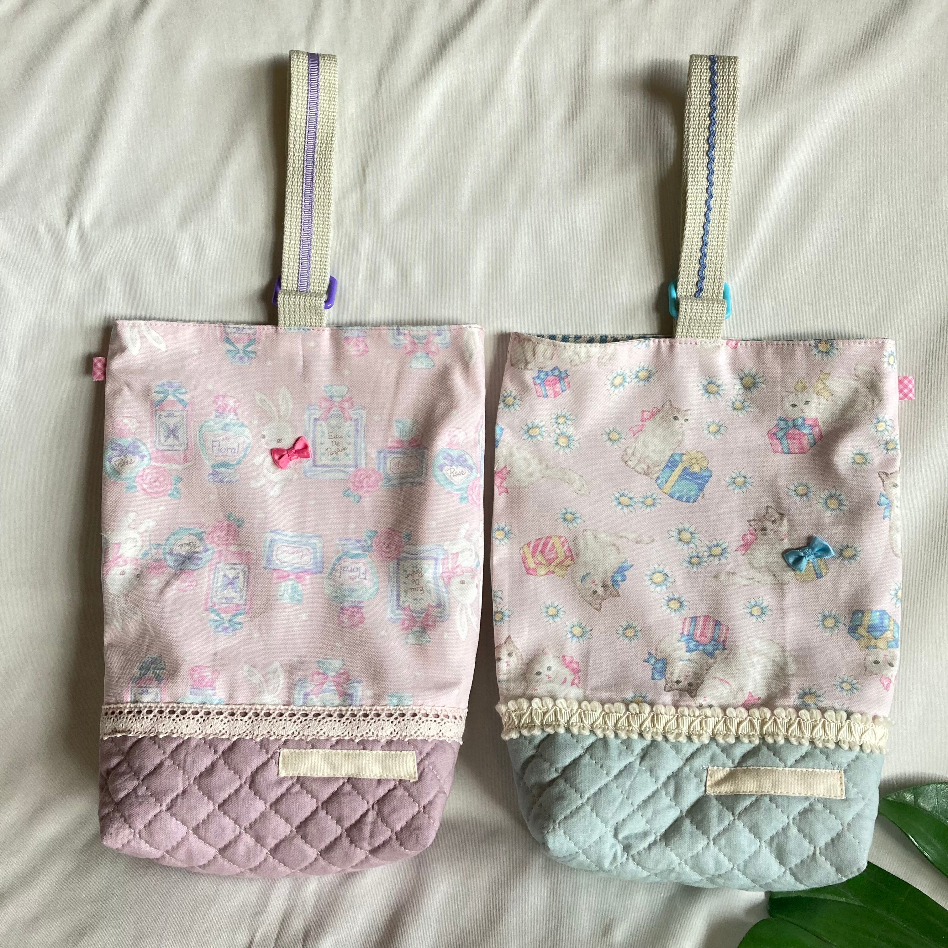 【オーダーOK】入園入学シューズケース上履き袋リバーシブル上靴59クラシカルモダンパヒューム香水うさぎニュアンスくすみ猫ウサギ★お名前小学校マチ★ラッピングDカン持ち手キルティングラベンダーブルーウサギねこ