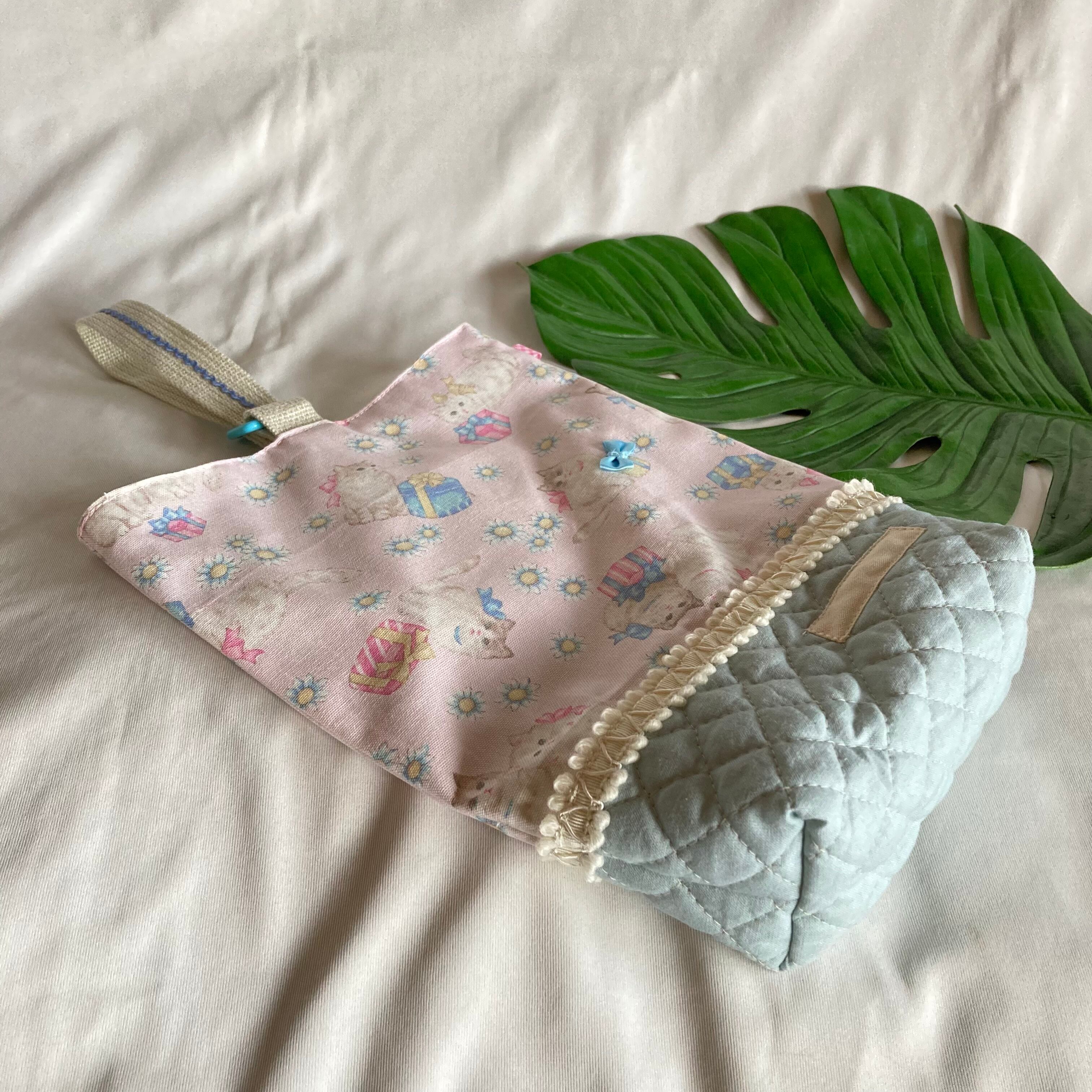 うさぎorねこPT、キルティングくすみラベンダーorブルー、波ストライプくすみラベンダーorブルー、リボン・ブレードで飾りました★