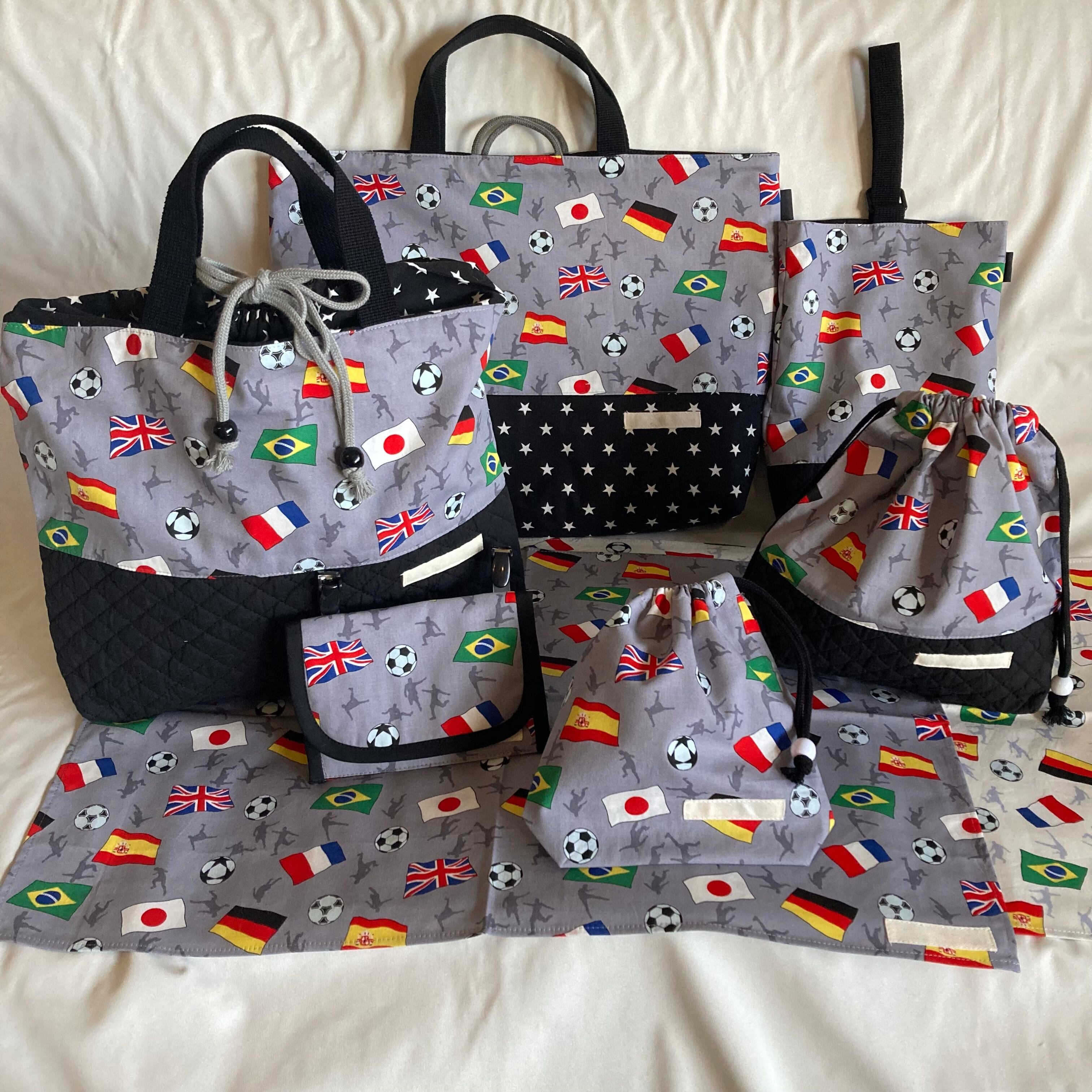 【オーダーOK】入園入学シューズケース上履き袋リバーシブル上靴80サッカー世界国旗スポーツ★お名前小学校マチ★ラッピングDカン持ち手アメリカ台湾韓国フランスインドネシアアフリカブラジル