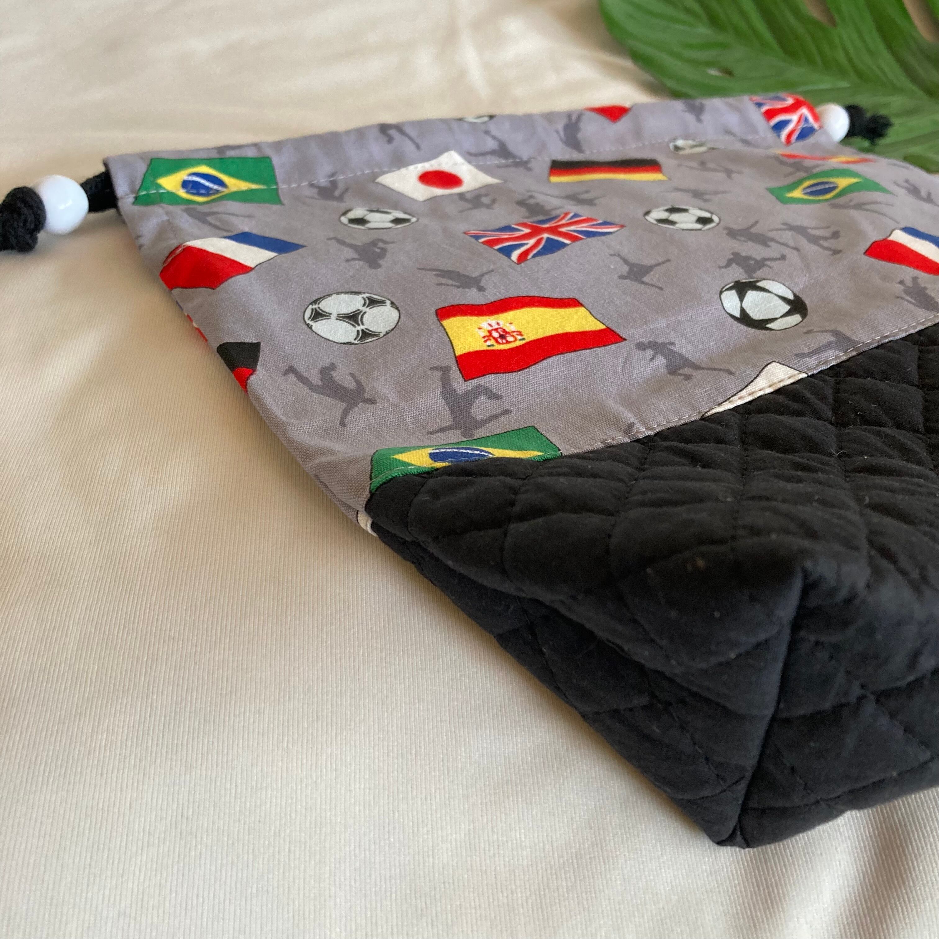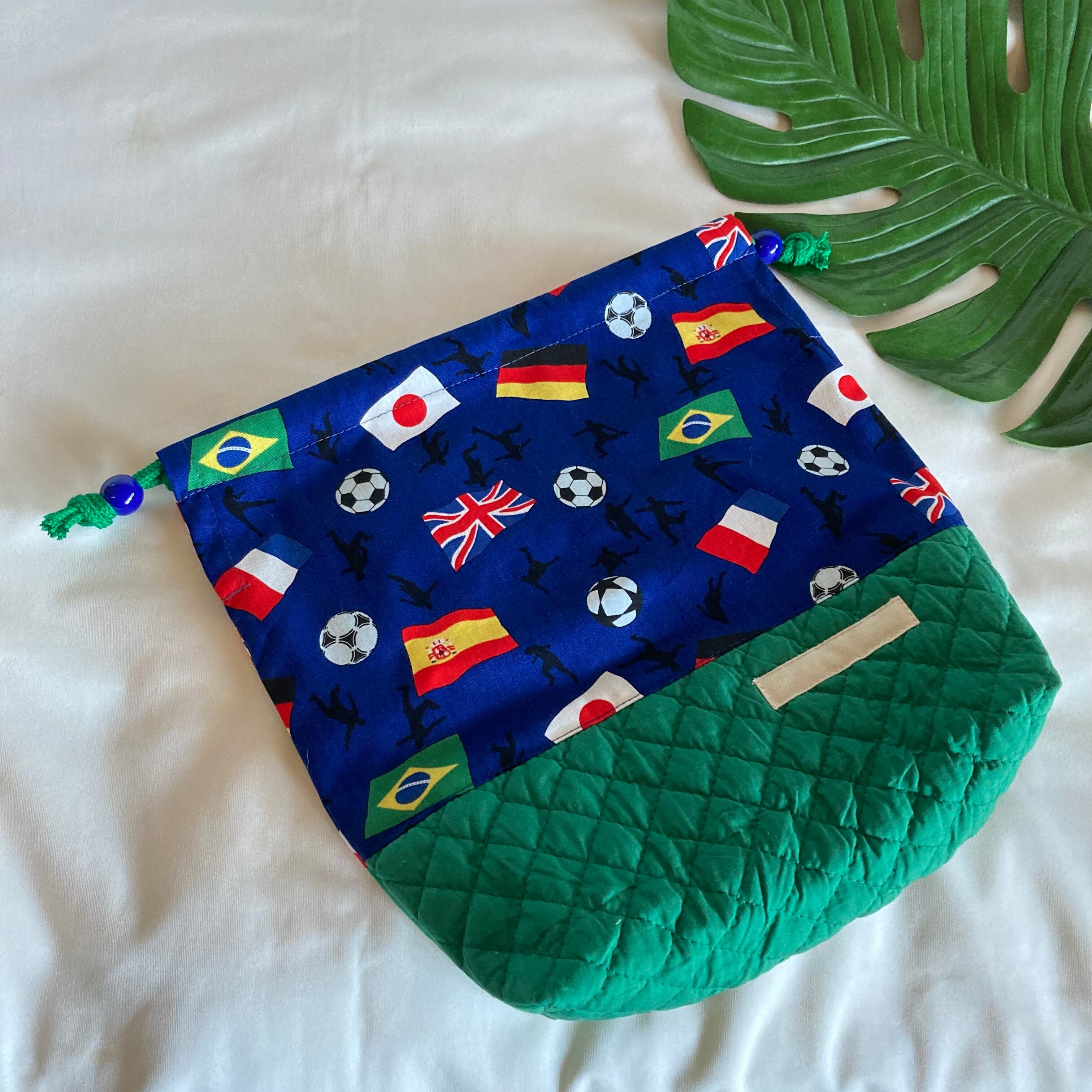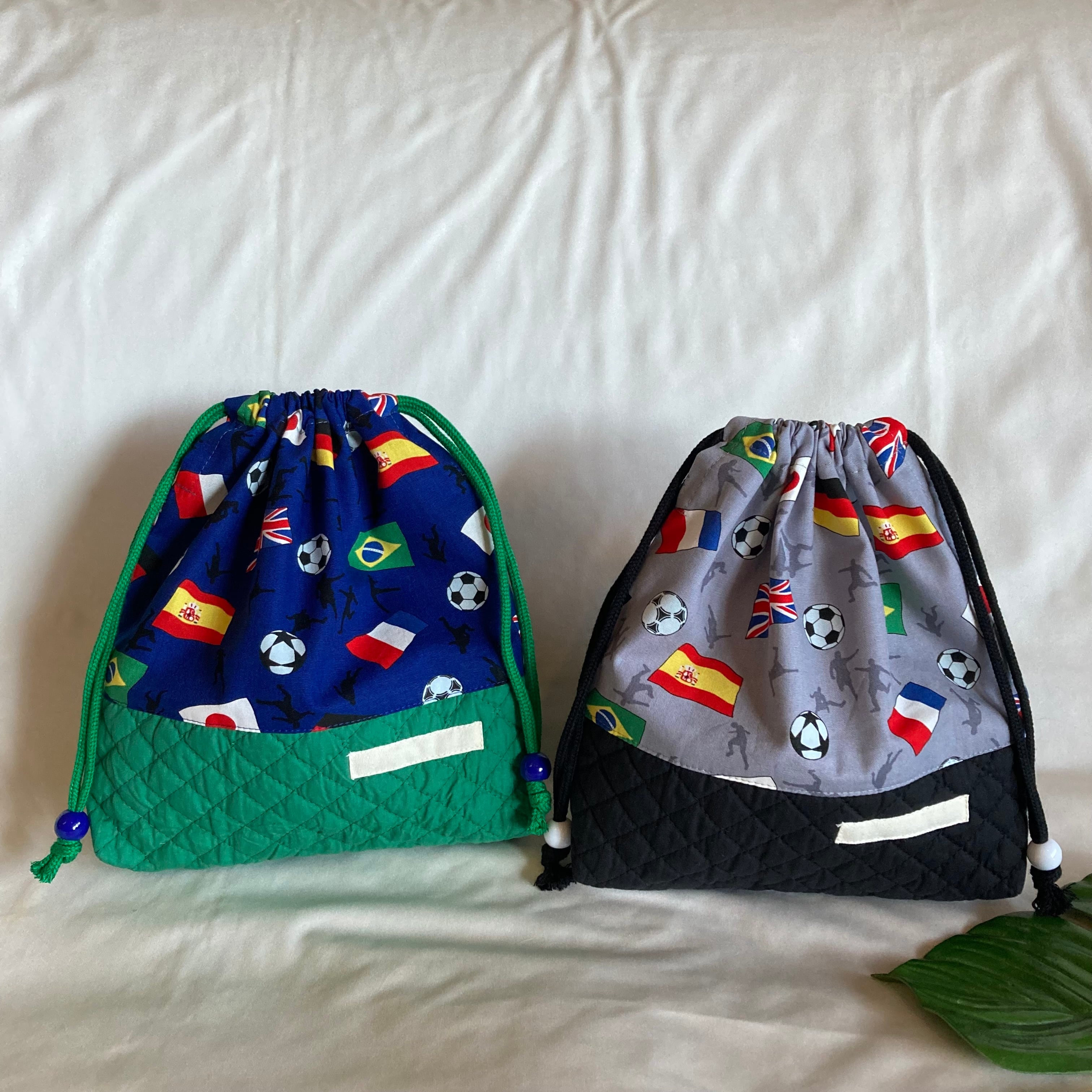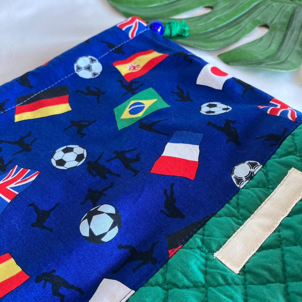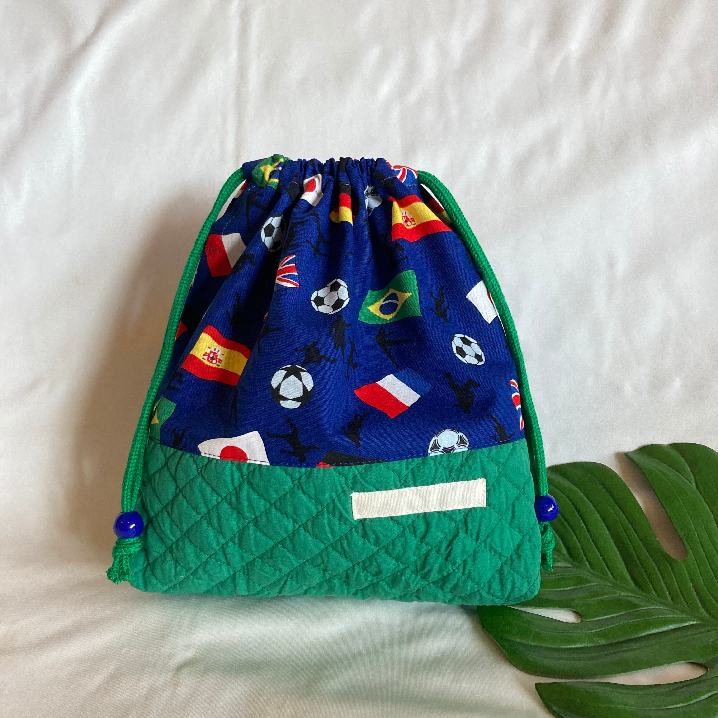 【オーダーOK】入園入学ランチバッグお弁当入れ巾着80サッカー世界国旗スポーツ★縫い付けお名前小学校キルティングマチ★ラッピングプレゼントアメリカドイツフランスイタリアブラジルアルゼンチン