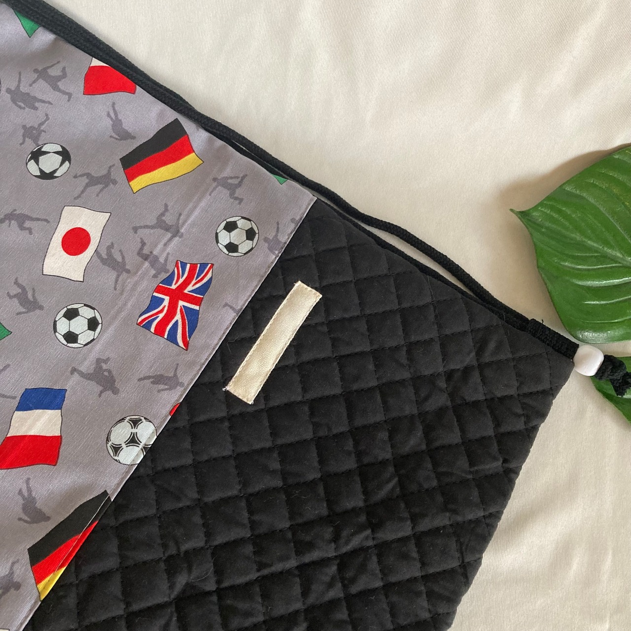 ランドセルの上から背負える!ナップサックナップザック持ち手つき巾着★80サッカー世界国旗スポーツ日本★入園入学お名前小学校習い事オーダーキルティング韓国フランスアフリカスペインブラジルアルゼンチン