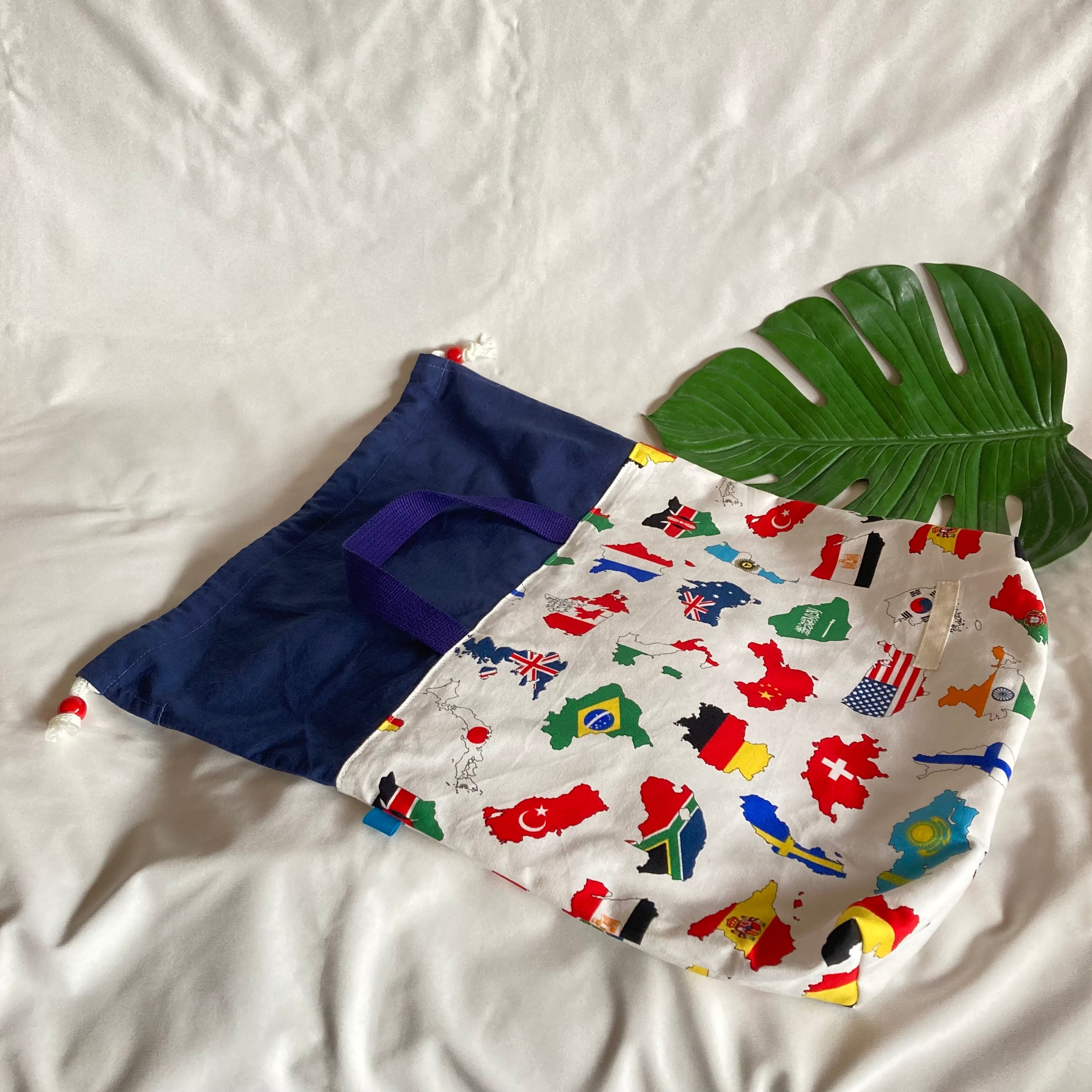 【オーダーOK】入園入学体操着お着替え袋持ち手内袋裏地巾着71世界地図国旗日本地球3★縫い付けお名前小学校マチ★ラッピングプレゼントアメリカ台湾イギリスフランスイタリアブラジルインドネシアアフリカ