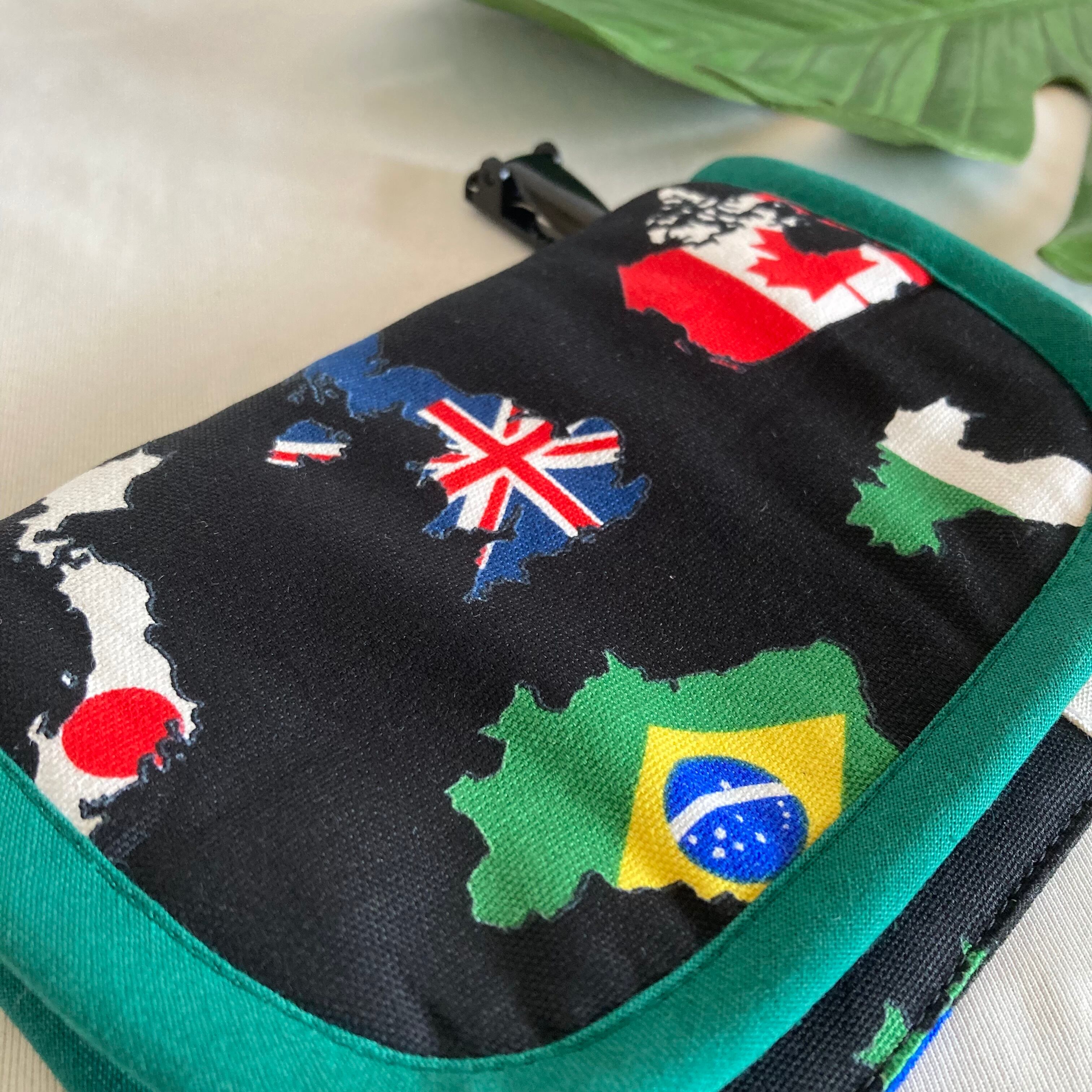 【オーダーOK】裏キルティング移動ポケット71世界地図国旗日本地球ワールド地理3★マスクケース入園入学ハンカチティッシュ★マルチポケットお出かけポーチ習い事クリップ安全ピン韓国アメリカイギリスフランス