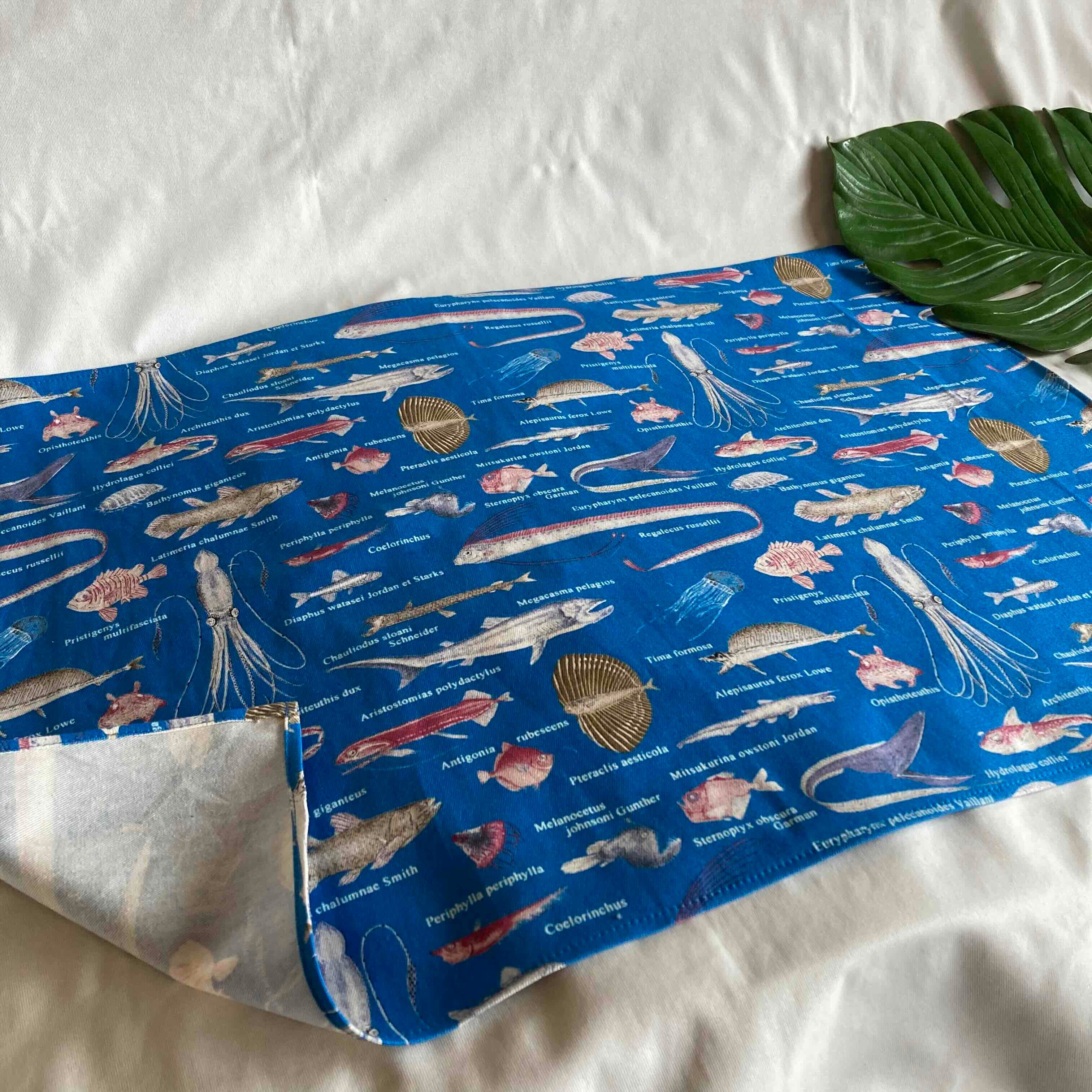 【オーダーOK】入園入学大きいランチョンマット60×40★82深海生物深海魚海の生き物水族館★縫い付けお名前小学校机40×60㎝★ダイオウイカリュウグウノツカイメンダコオウムガイ