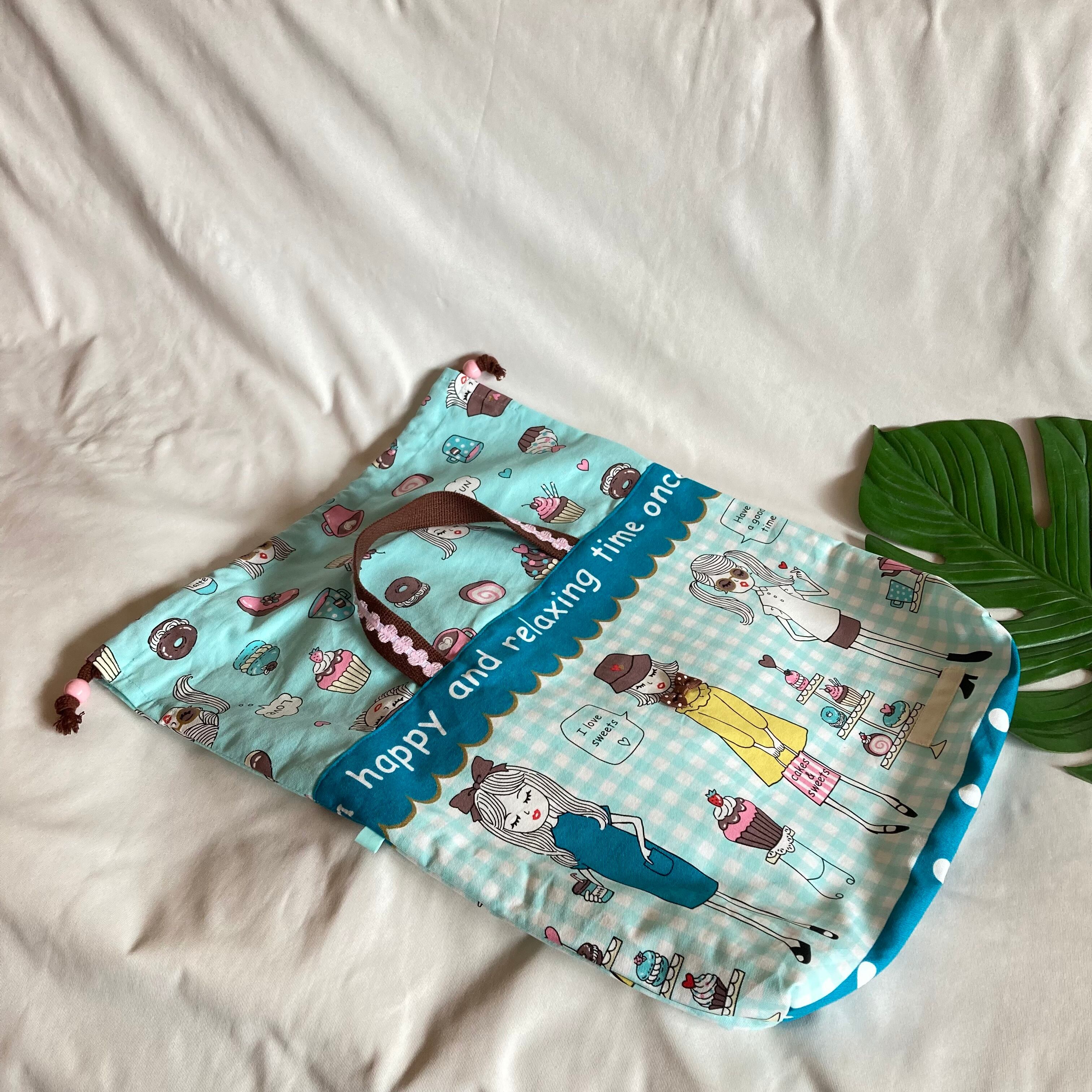 【サイズ】ヨコ37cm×タテ27cm (マチ、上部の巾着部分含まず) 底ヨコ31cm×マチ6cm