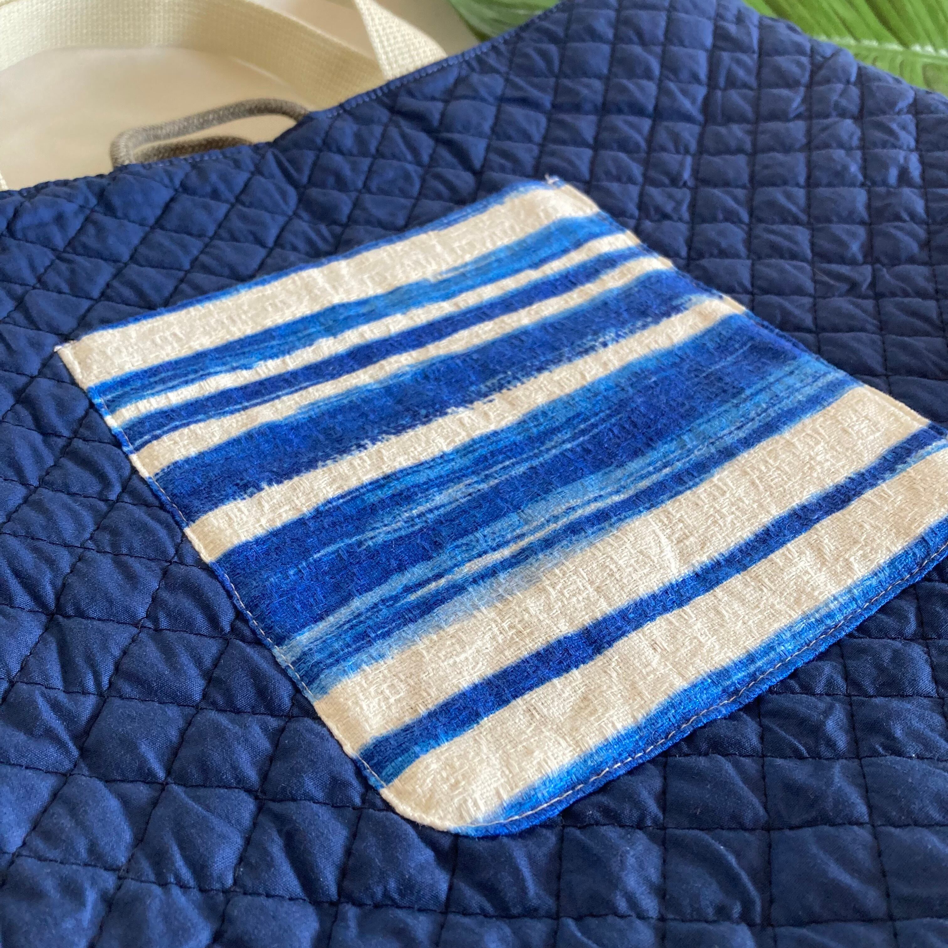 深海生物PT、キルティングネイビー、波ボーダーネイビー系、ブレードで飾りました★