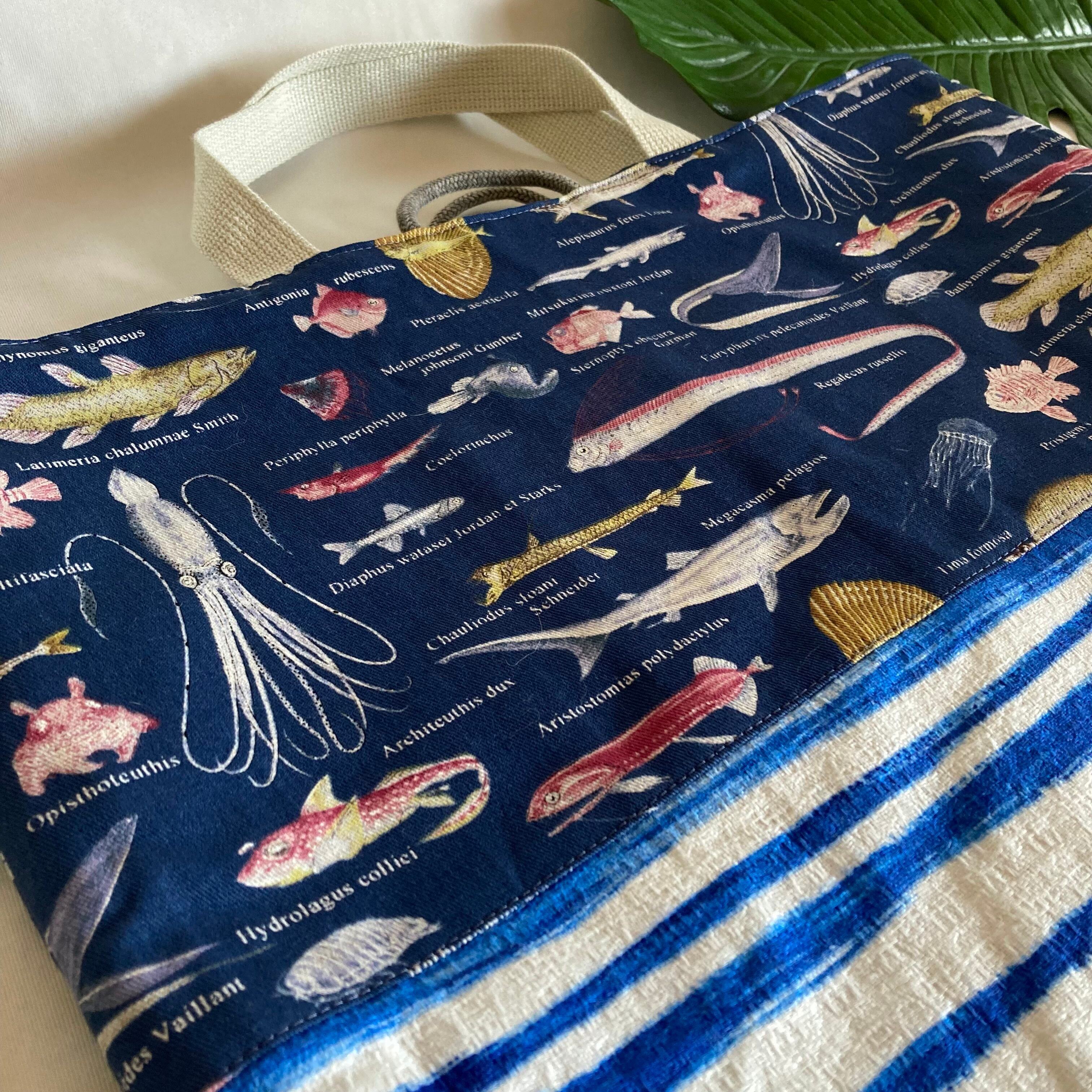 【床につかない!!】入園入学レッスンバッグ手提げ絵本袋リバーシブル82深海生物深海魚海の生き物水族館★縫い付けお名前小学校キルティングマチポケットダイオウイカリュウグウノツカイメンダコダイオウグソクム