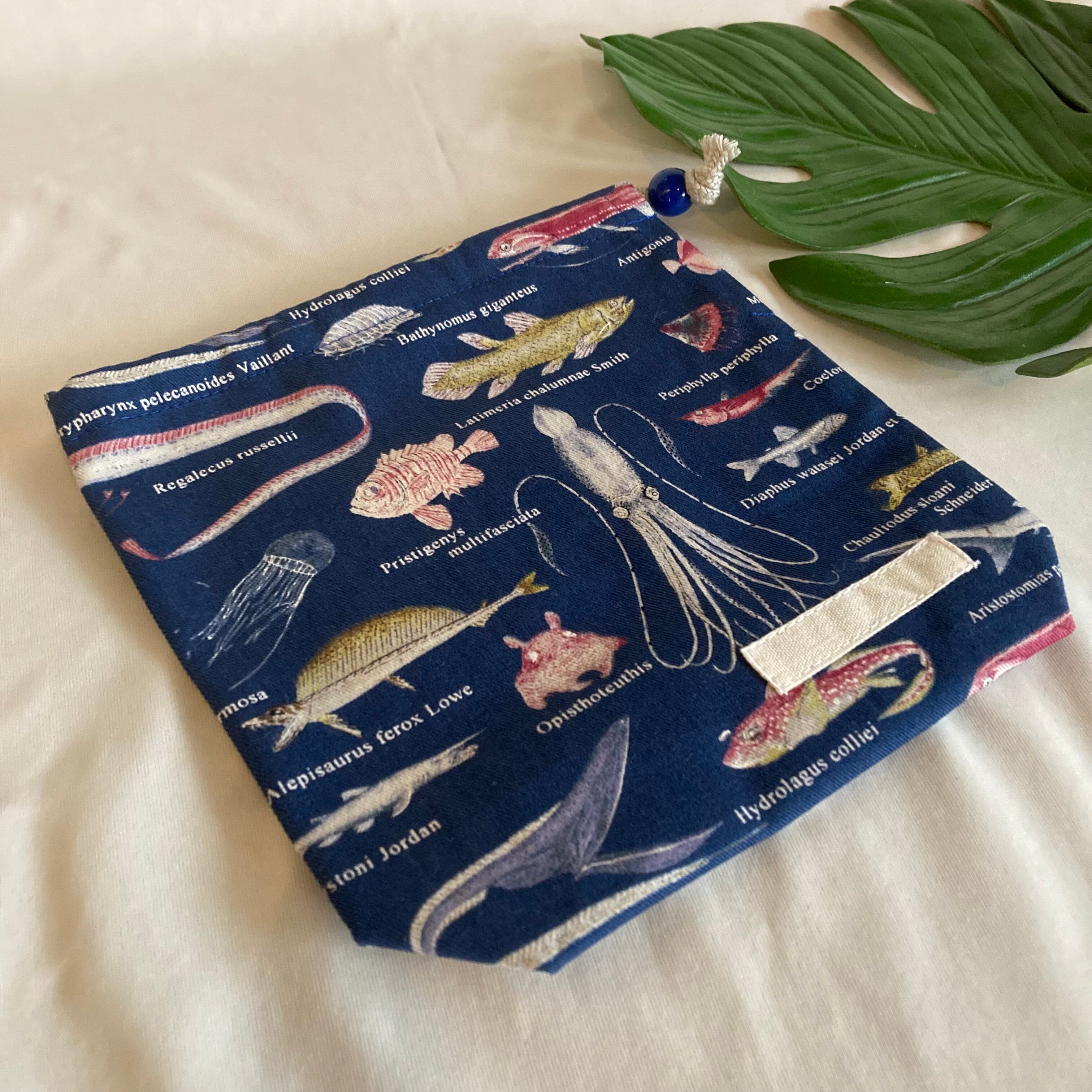 【オーダーOK】入園入学給食袋コップ入れ巾着82深海生物深海魚海の生き物水族館★マチ名前お弁当ダイオウイカリュウグウノツカイメンダコダイオウグソクムシ