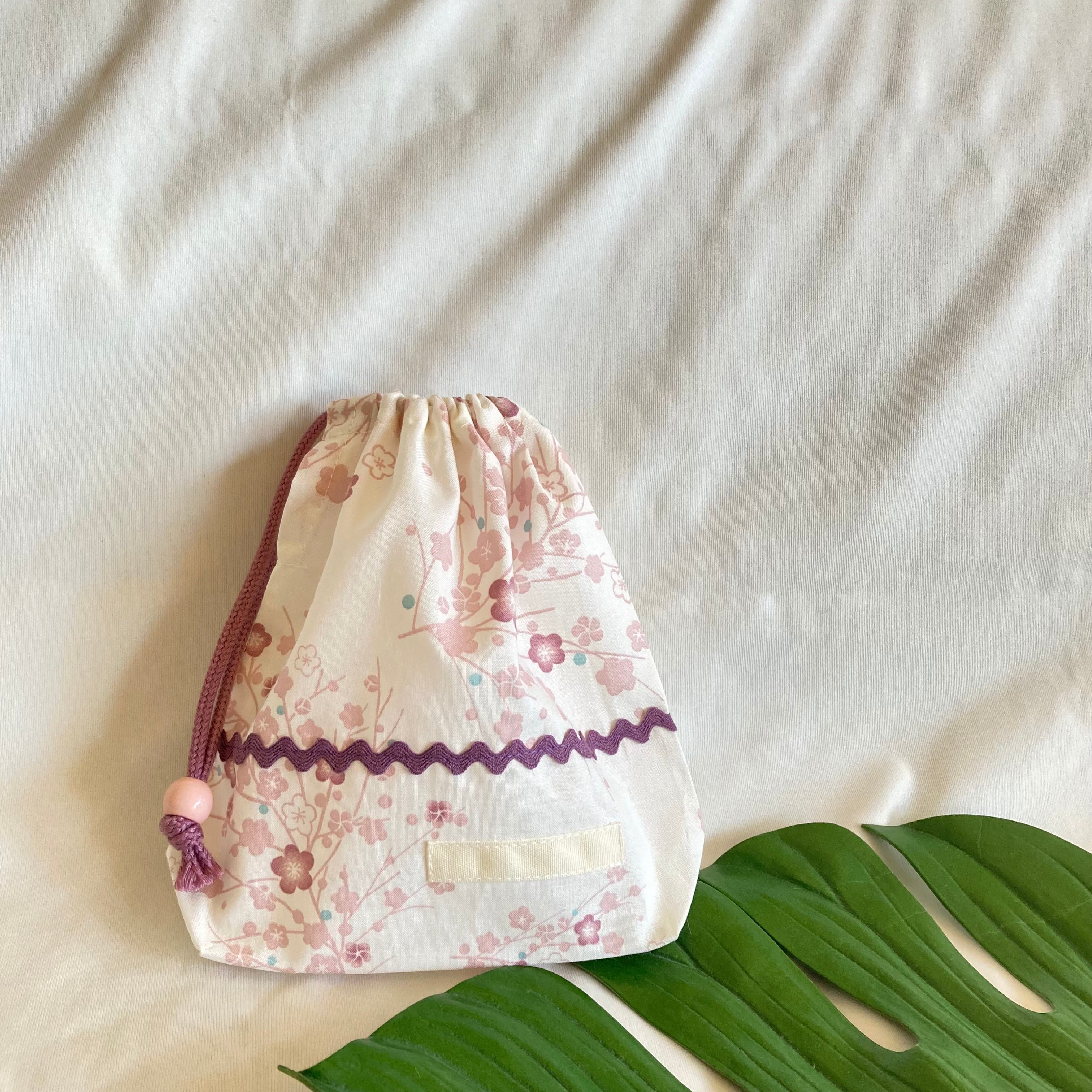 ●コップ入れ 給食袋 片方から紐を引く巾着(小)