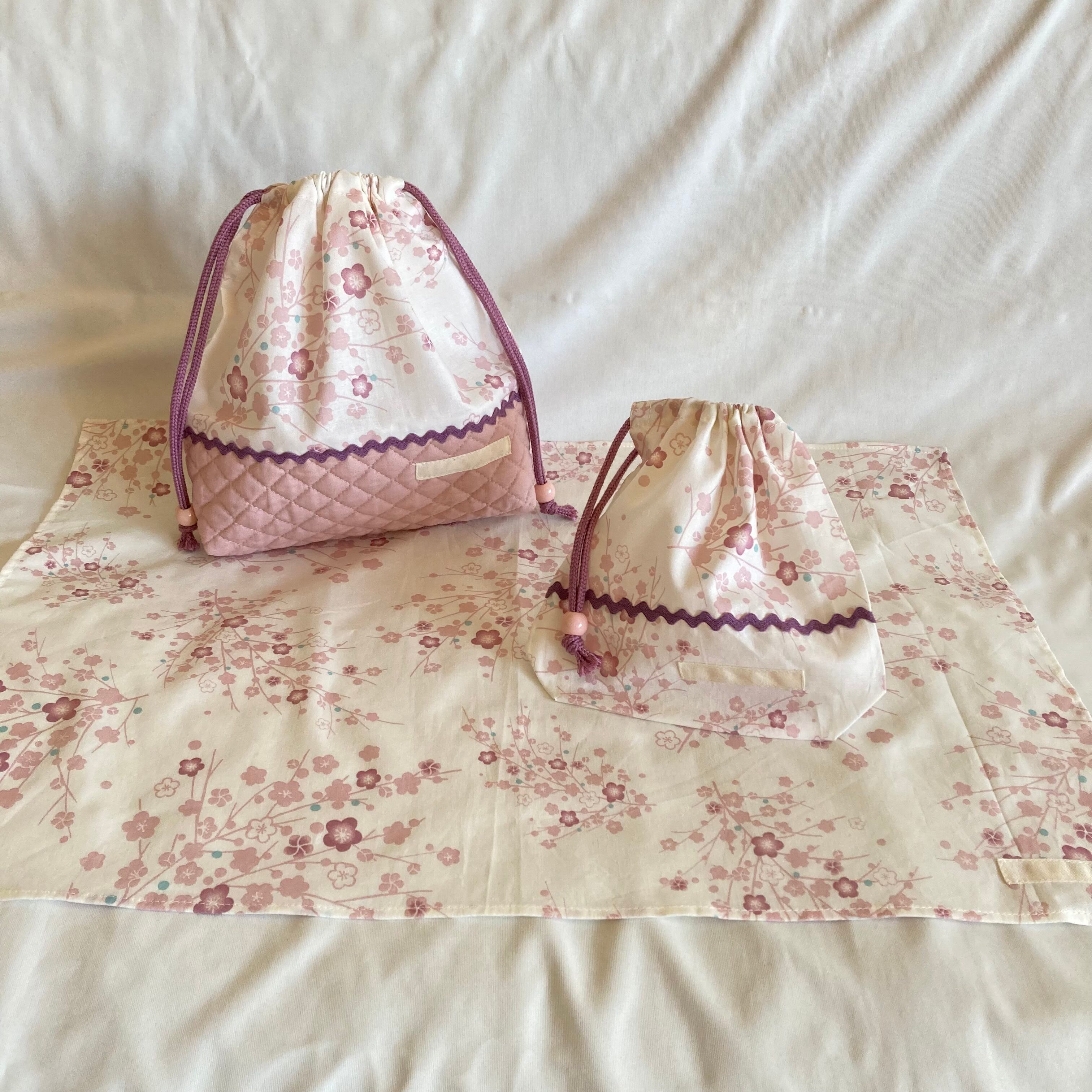 【オーダーOK】入園入学お食事セット★梅花Wくすみニュアンスパステル★コップ給食ナフキンお弁当巾着ランチクロスランチョンマット★