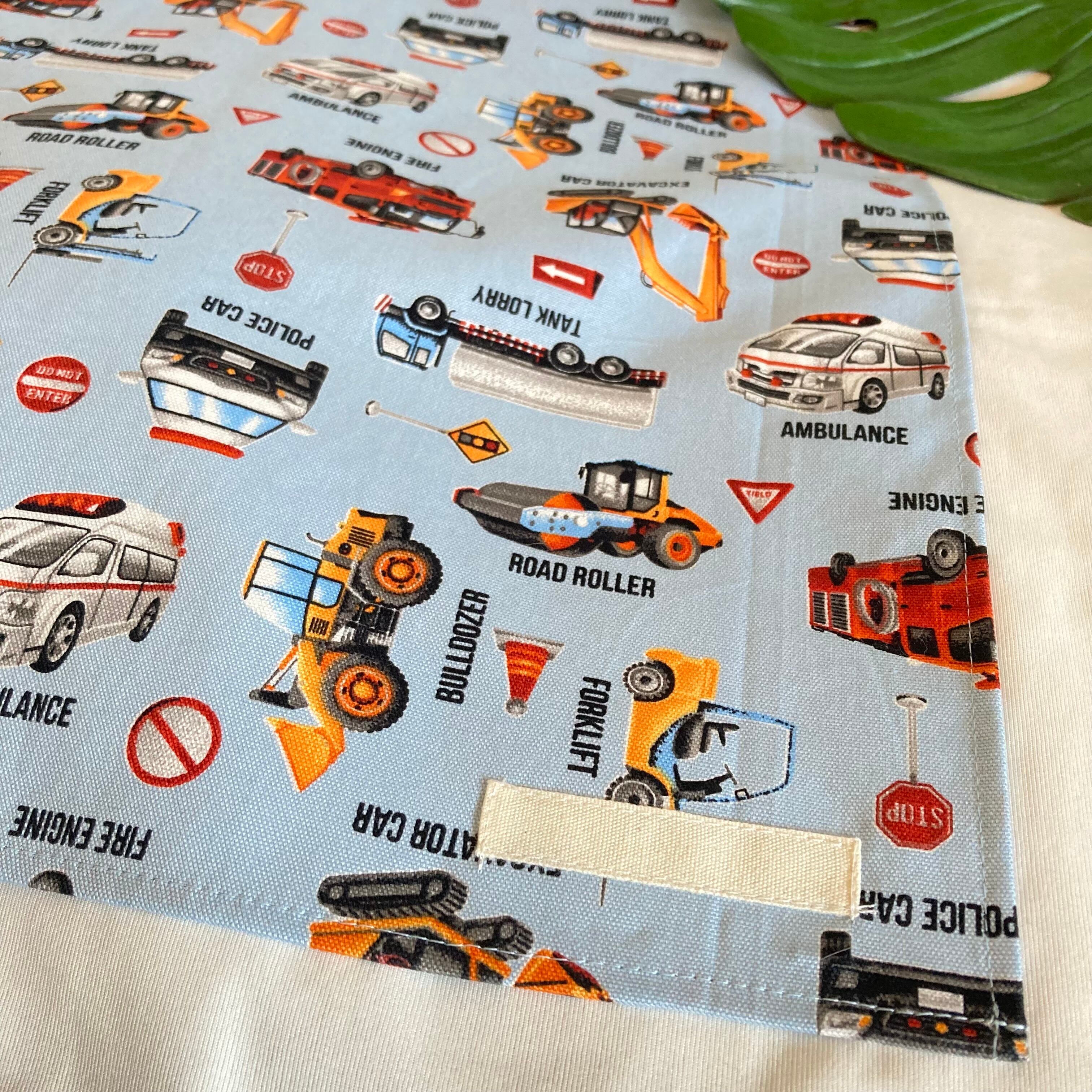 【オーダーOK】入園入学大きいランチョンマット60×40★働く車工事車両現場パトカー救急車ショベルカー消防★給食ナフキンお弁当★縫い付けお名前小学校机40×60㎝★ラッピングプレゼント誕生日クリスマス