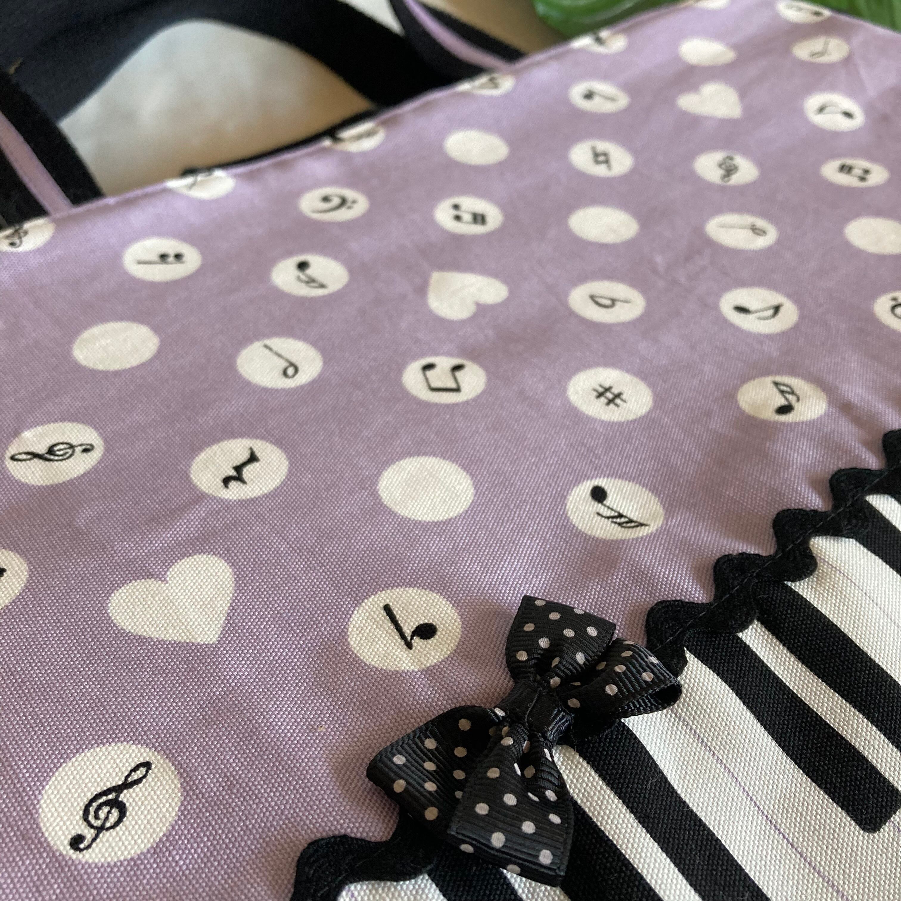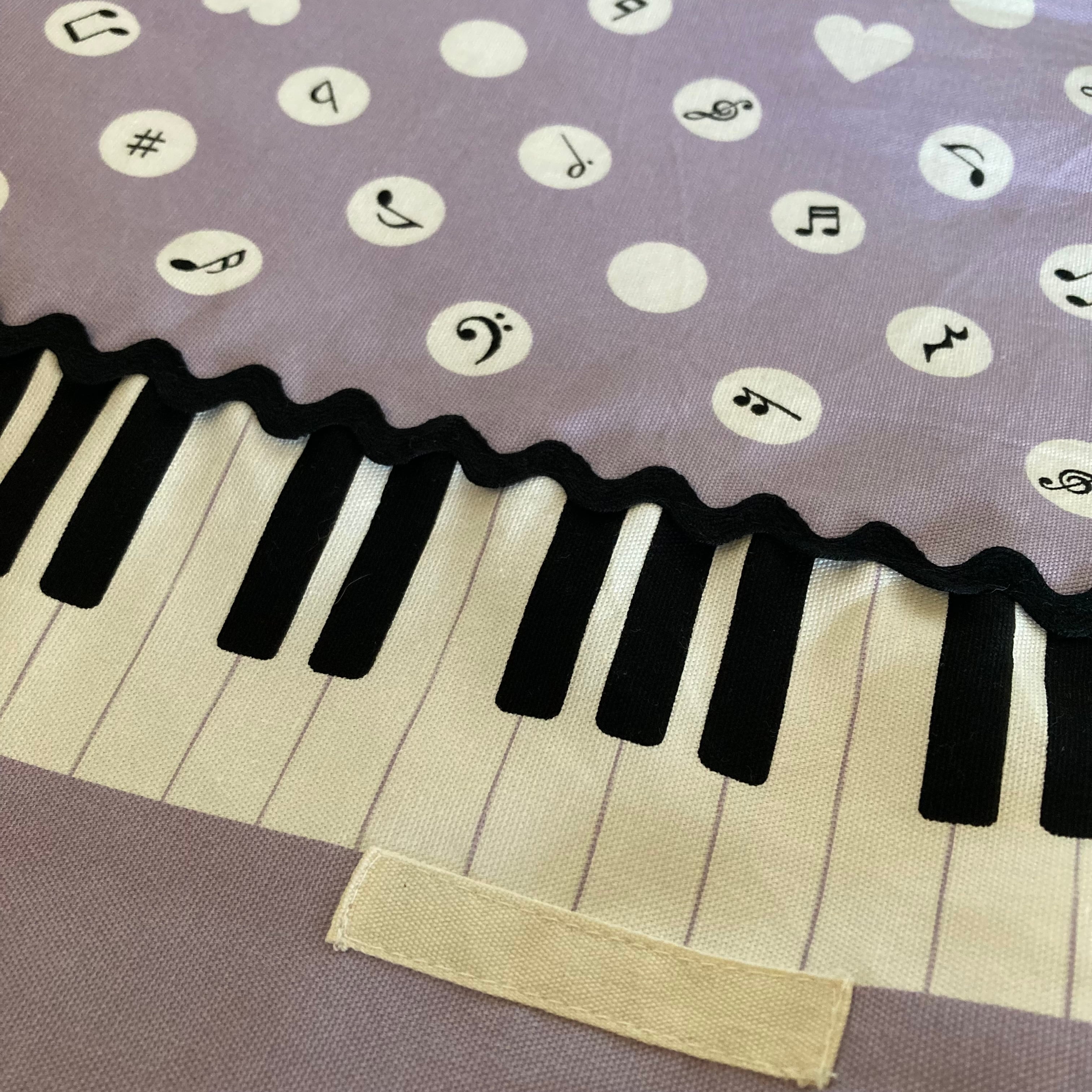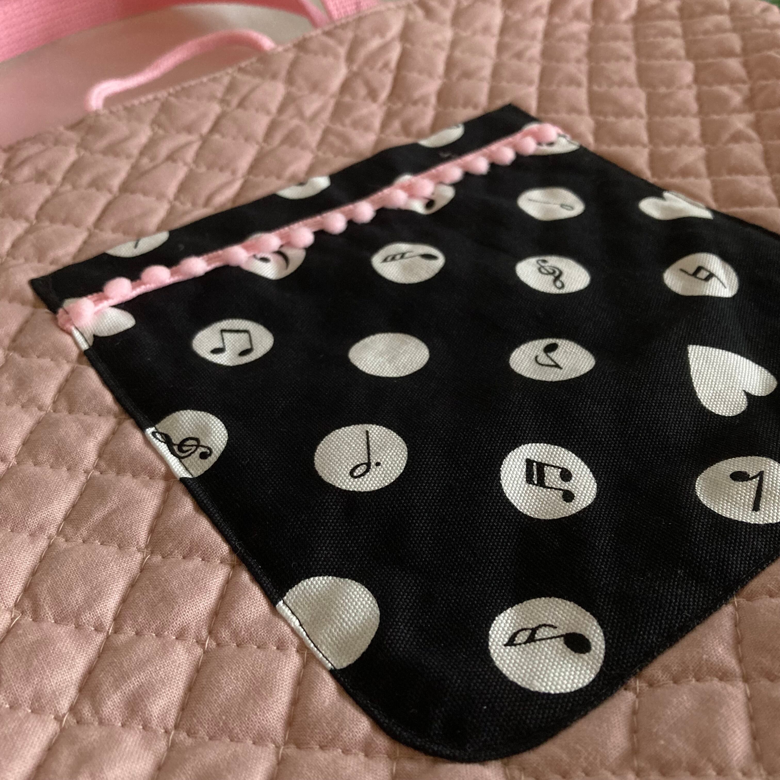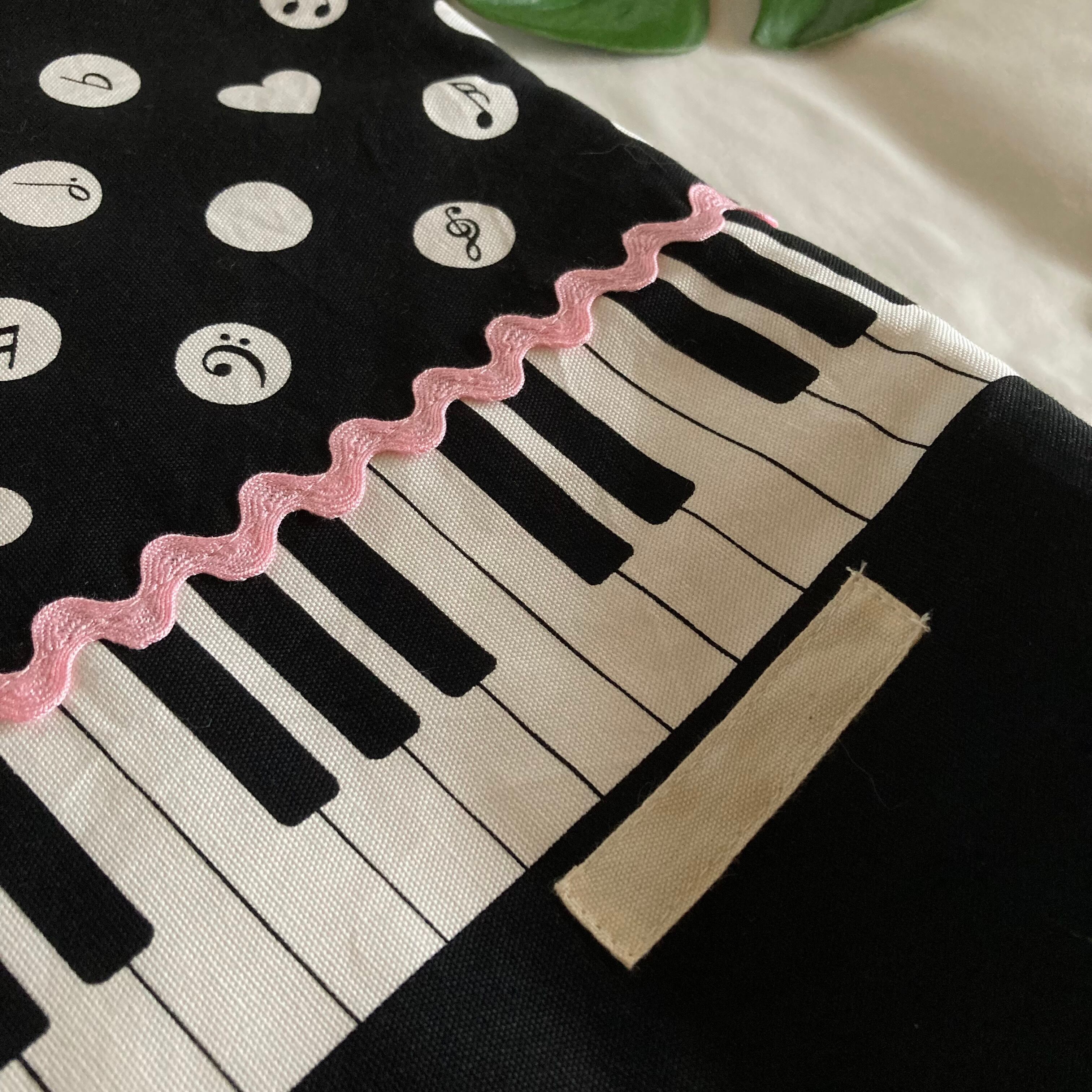 【床につかない!!】入園入学レッスンバッグ手提げ絵本袋リバーシブル★ピアノ鍵盤音楽楽器音符くすみピンク★縫い付けお名前キルティングマチポケットデニムくすみニュアンスパステル