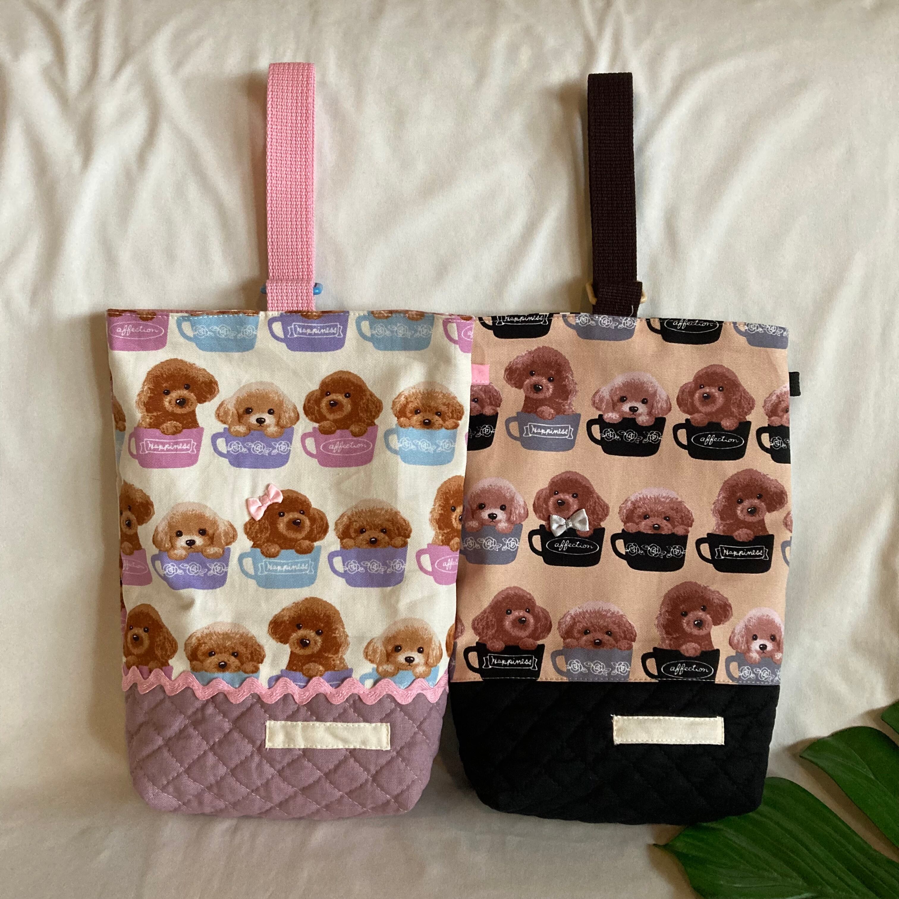 【オーダーOK】入園入学シューズケース上履き袋リバーシブル上靴★83ティーカッププードルトイプードル★縫い付けお名前小学校マチ★ラッピングプレゼント誕生日クリスマスDカン持ち手くすみニュアンスパステル