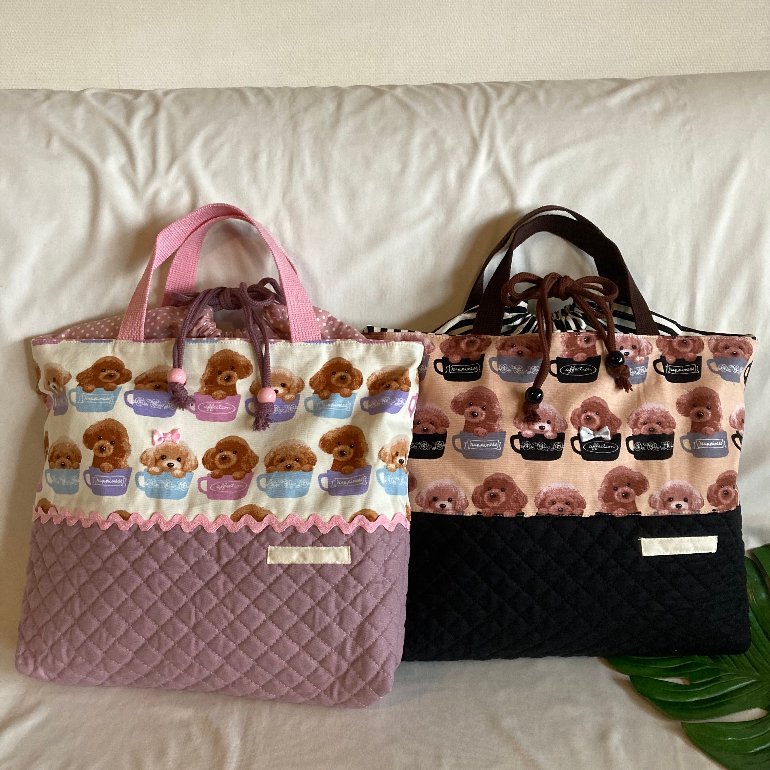 【オーダーOK】入園入学体操着お着替え袋内袋持ち手裏地巾着★83ティーカッププードルトイプードル犬★縫い付けお名前小学校マチ★ラッピングプレゼント誕生日クリスマスくすみニュアンスパステル
