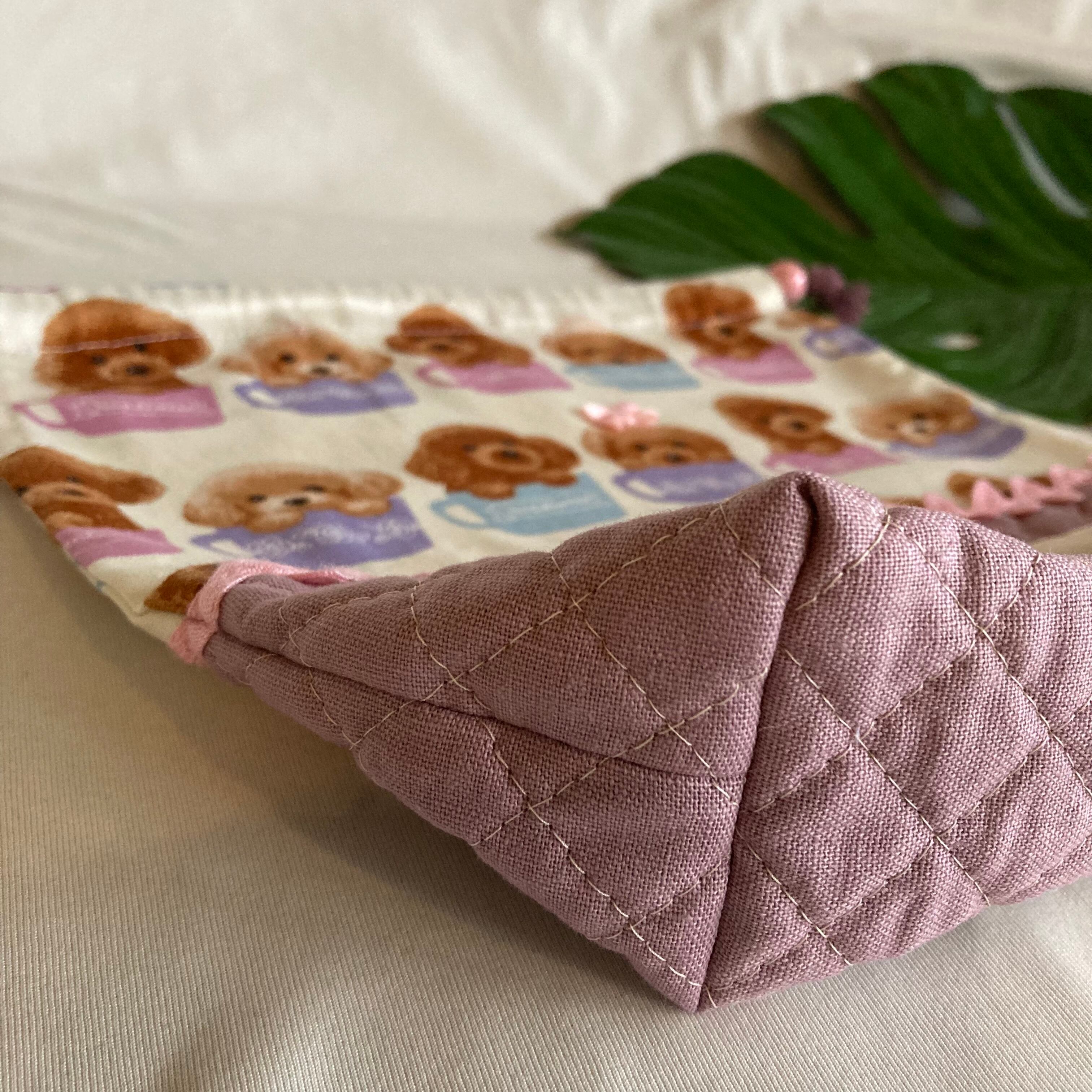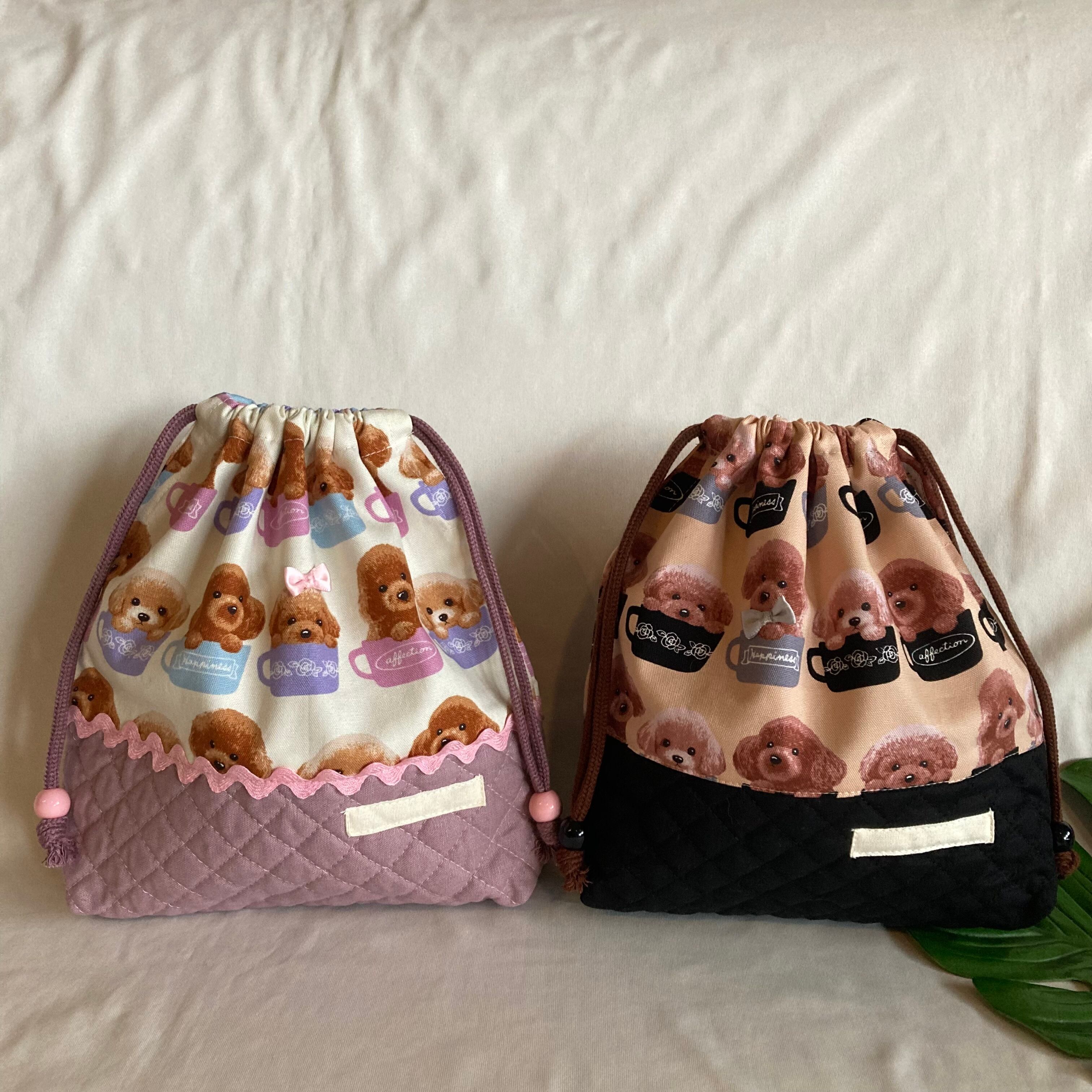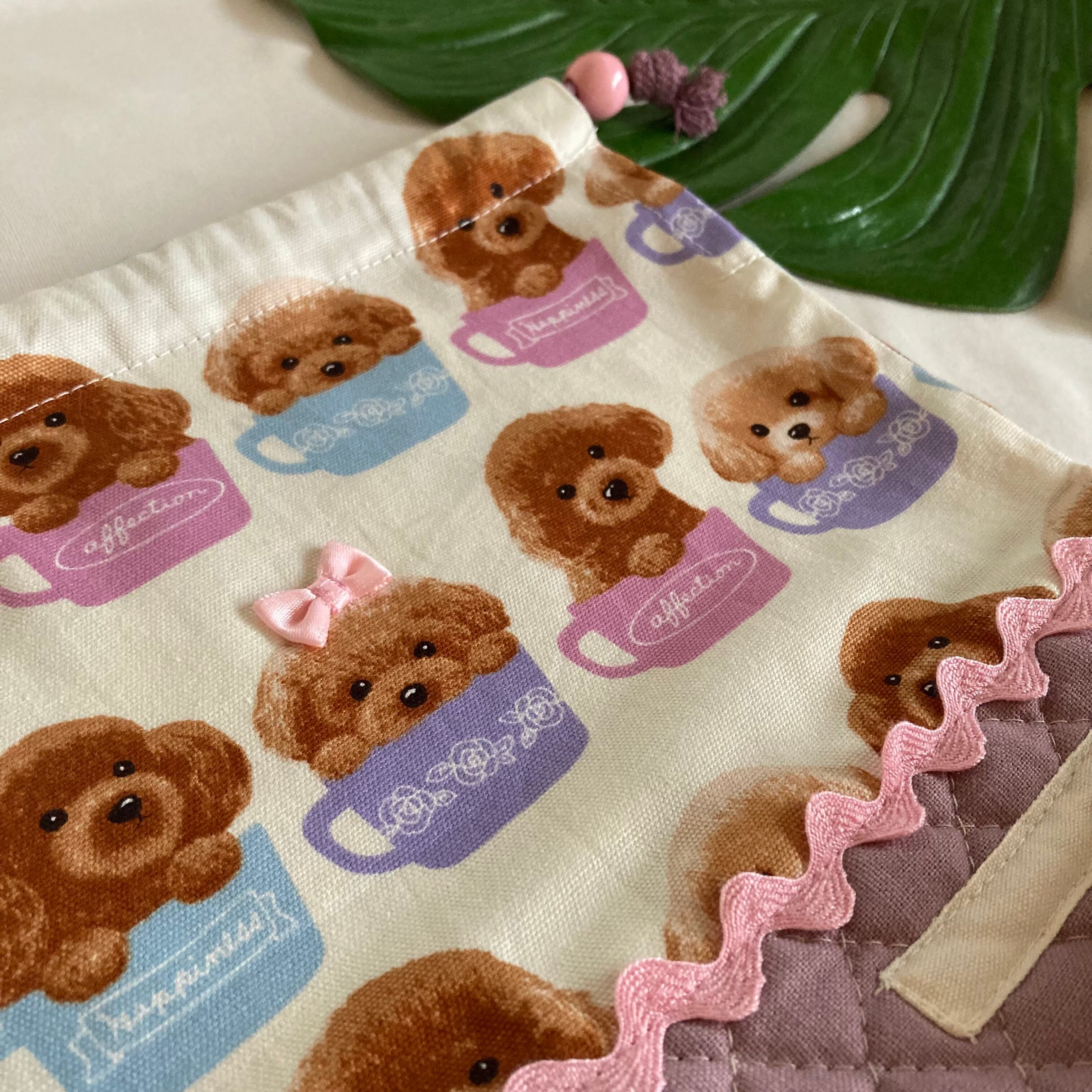 【オーダーOK】入園入学ランチバッグお弁当入れマチつき巾着83ティーカッププードルトイプードル犬★縫い付けお名前小学校マチキルティング★ラッピングプレゼント誕生日クリスマスくすみニュアンスパステル